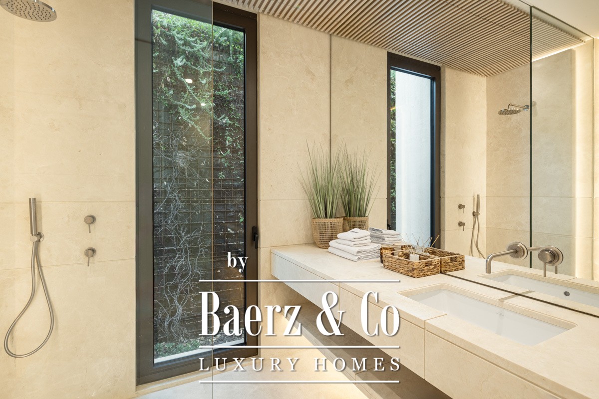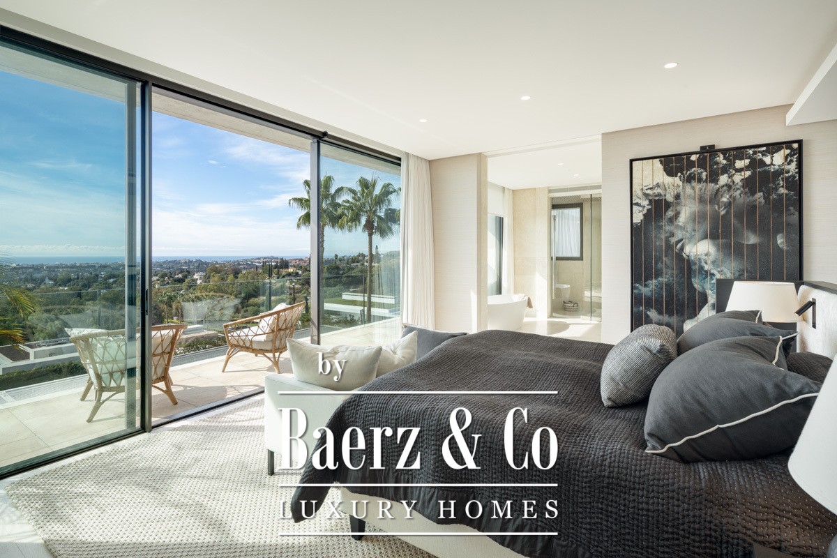 تتربع فيلا ماربيا ذات الإطلالات البانورامية على البحر والجبال في موقع استثنائي ضمن مجمع لا كوينتا الحصري، حيث يكشف كل عنصر من عناصرها عن ضياء ماربيا الخاص وخصوصيتها الفريدة. توفر هذه الفيلا مساحة معيشة تبلغ 630 م²، وتضم ست غرف نوم وسبعة حمامات، موزعة على مساحات داخلية مصممة بعناية تامة، حيث تم انتقاء كل تفصيل لتعزيز الإحساس بالهدوء والعصرية والرقي. تجتاح الإضاءة الغرف الفسيحة لتتوج بإطلالات بانورامية تصل حتى سواحل إفريقيا وجبل طارق في الأيام الصافية.