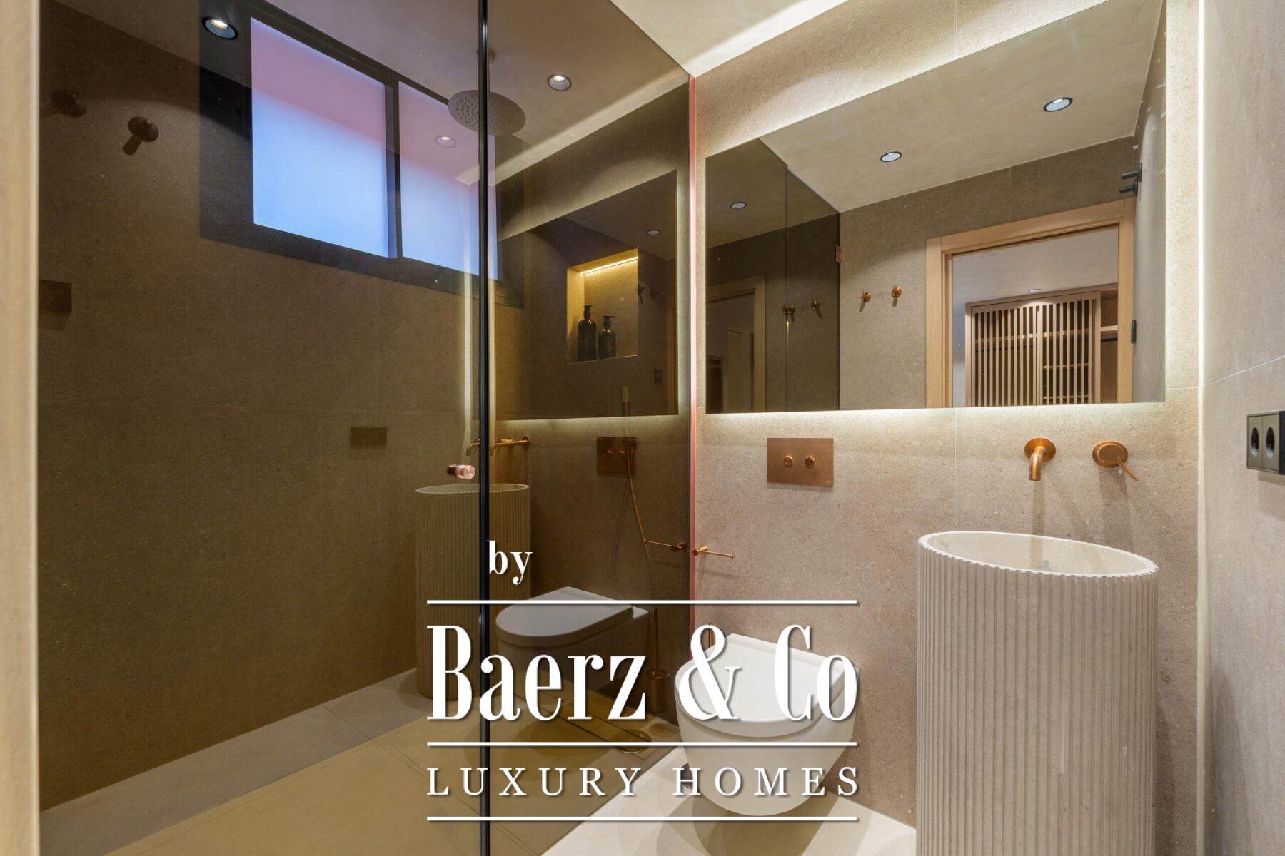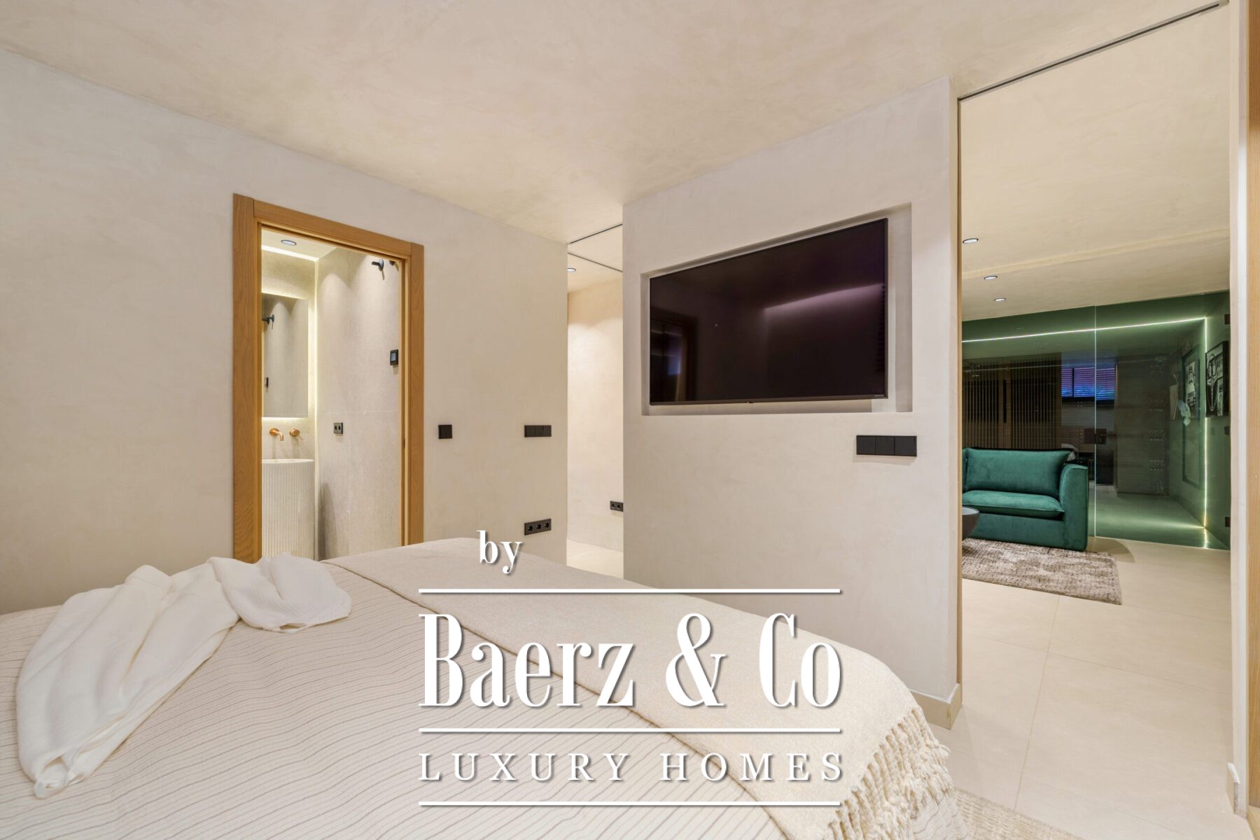 تضم الطوابق العليا غرف نوم فسيحة، بما في ذلك جناح رئيسي مع غرفة ملابس وحمام داخلي صُمم بعناية فائقة. تمنحك الشرفات المتعددة عبر المستويات خيارات لبدء يوم هادئ أو قضاء أمسيات غنية بالحيوية، وصولاً إلى سولاريوم السطح المزود بشواء مدمج وجاكوزي وإطلالات بانورامية على المناظر الجبلية والحدائق. كما يوفر الجراج الخاص، ونظام الأمن على مدار الساعة، ووسائل الراحة المتقدمة مثل التكييف والتدفئة الأرضية، مستويات عالية من الراحة والسهولة.