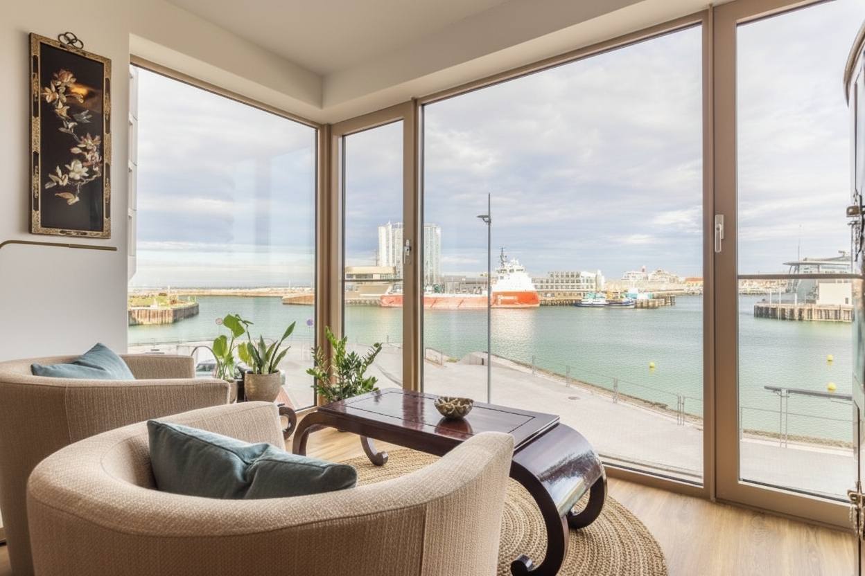 Das Apartment in 's-Gravenhage bietet auf 123 m² eine anspruchsvolle Wohnatmosphäre, in der sich Panoramablicke auf Hafen und Meer mit ruhiger, küstennaher Umgebung verbinden. Dies ist eine seltene Lage, die Harmonie zwischen Natur, maritimem Flair und Privatsphäre schafft – und zugleich die historische Innenstadt von Den Haag schnell erreichbar macht.