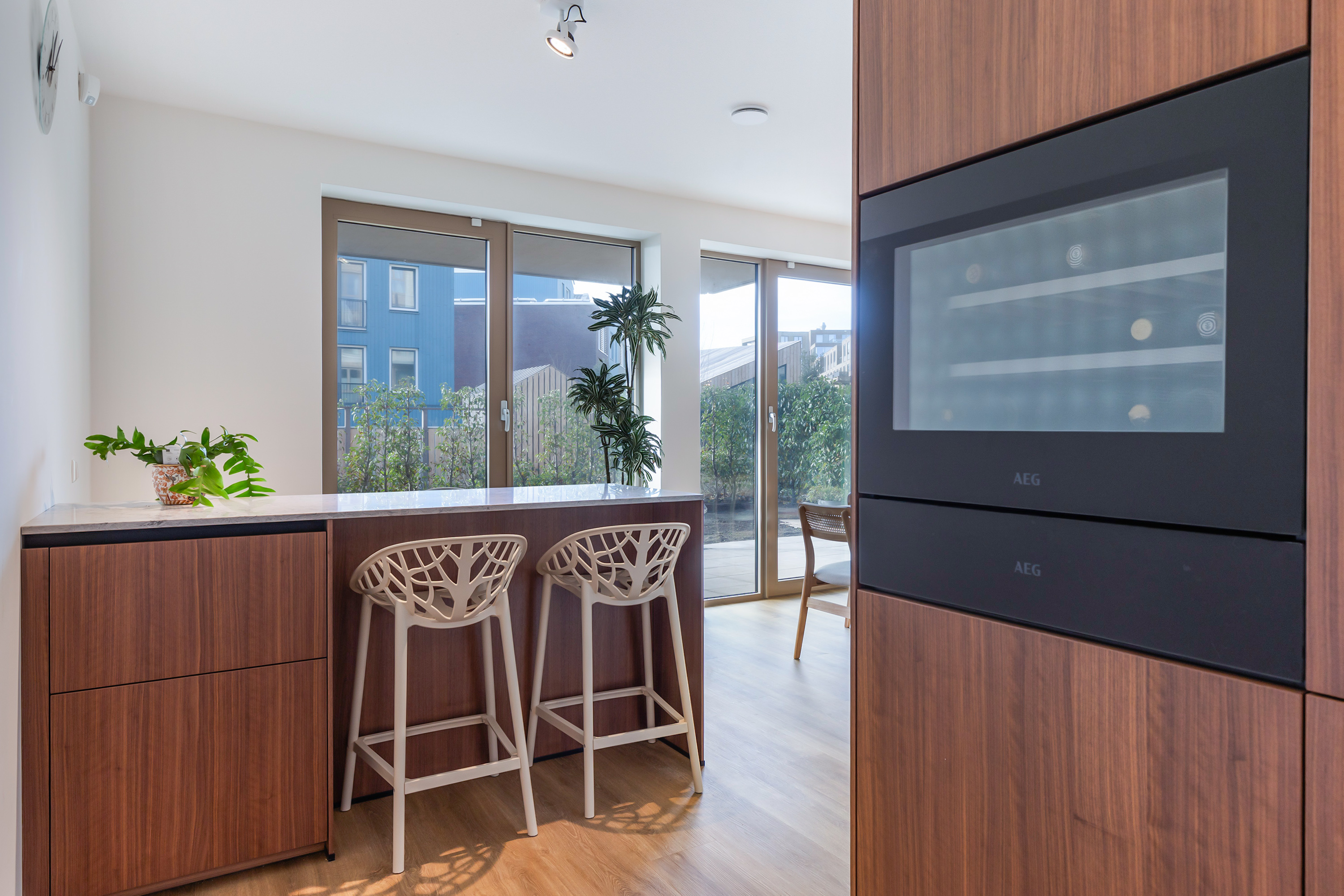 Die Wohnung verfügt über zwei Schlafzimmer, ein großzügiges Bad, durchgängige energieeffiziente Dämmung und intelligente Annehmlichkeiten wie Alarmanlage und Glasfaseranschluss. Eine private Tiefgarage mit Ladestation, separatem Abstellraum und gemeinschaftlichem Fahrradabstellbereich gewährleistet Komfort und Sicherheit. Das Wohnumfeld im neuen Quartier De Zuid verbindet schnellen Zugang zu Stadt, Strand und internationalen Angeboten und schafft ein Gleichgewicht zwischen urbanem Flair und Küstenambiente.
