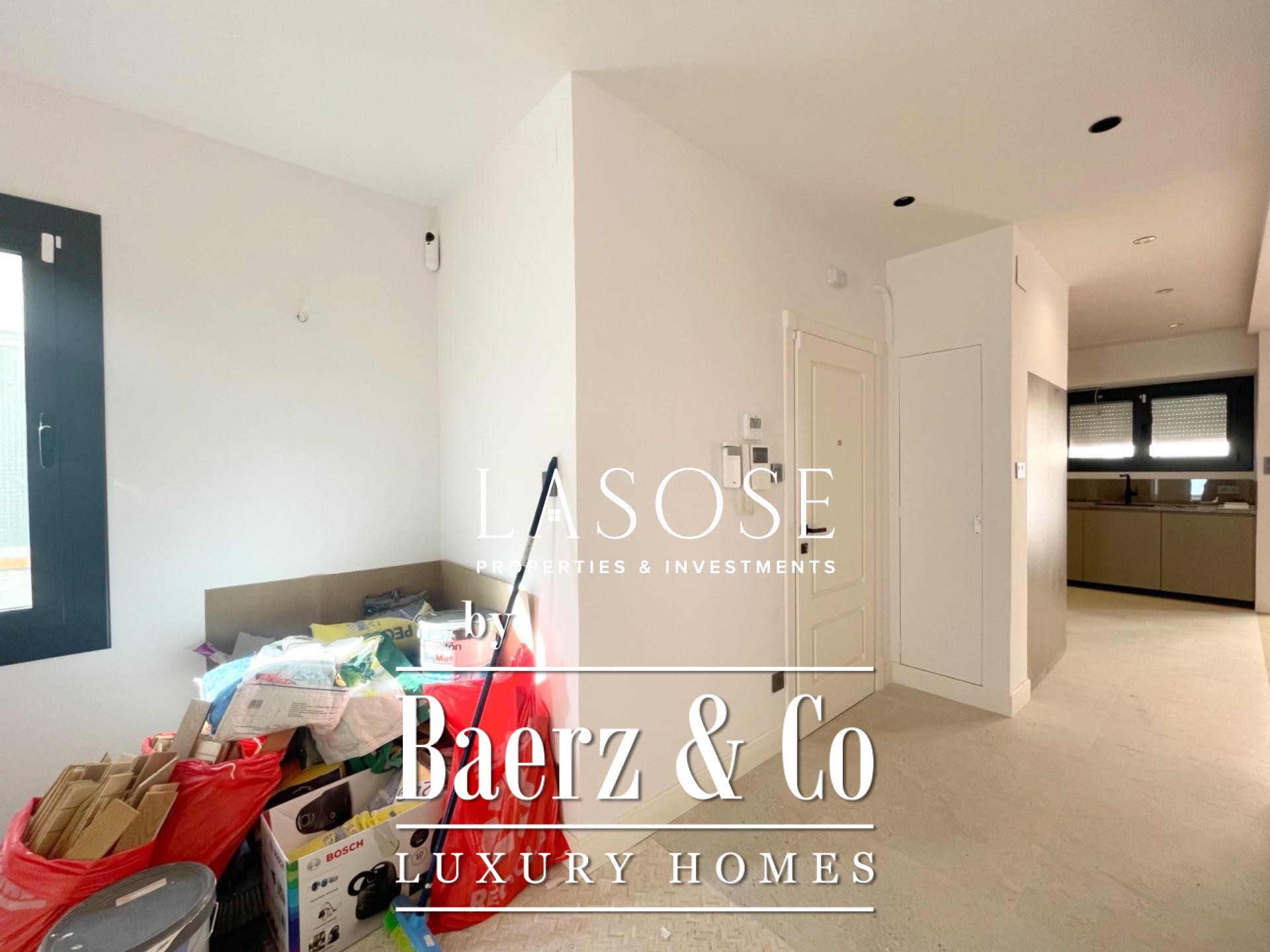 Ein Aufzug bedient das Gebäude. Ausstattungsmerkmale wie Klimaanlage, Video-Gegensprechanlage und eine beleuchtete Pergola unterstreichen den funktionalen Komfort. Die Bewohner genießen eine harmonische Balance aus urbaner Energie und ruhigem Rückzugsort, wobei jedes Detail sorgfältig ausgewählt wurde, um den Alltag an dieser besonderen Adresse zu bereichern.