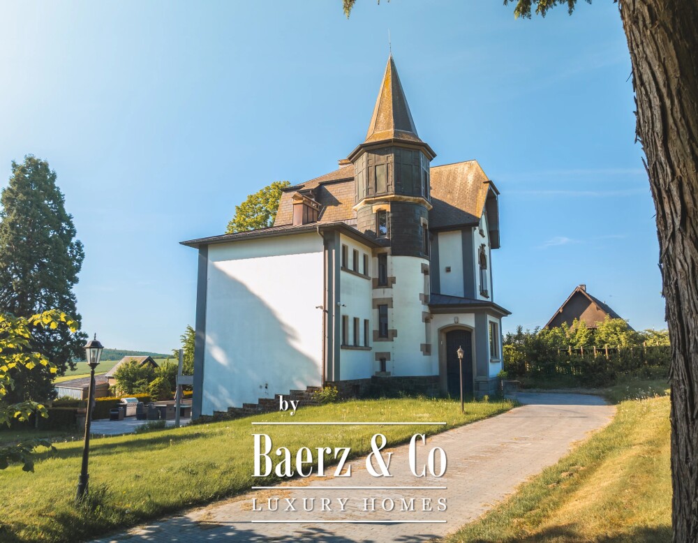 Dieses Herrenhaus in Boevange bietet ein distinguiertes Ambiente, in dem Kulturerbe und Moderne in ruhigem Einklang stehen. Ursprünglich 1909 erbaut und 2022 sorgfältig renoviert, befindet sich das Anwesen auf einem 12.180 m² großen, angelegten Grundstück und bietet 375 m² Wohnfläche mit Deckenhöhen von vier Metern über dezentem Parkettboden.