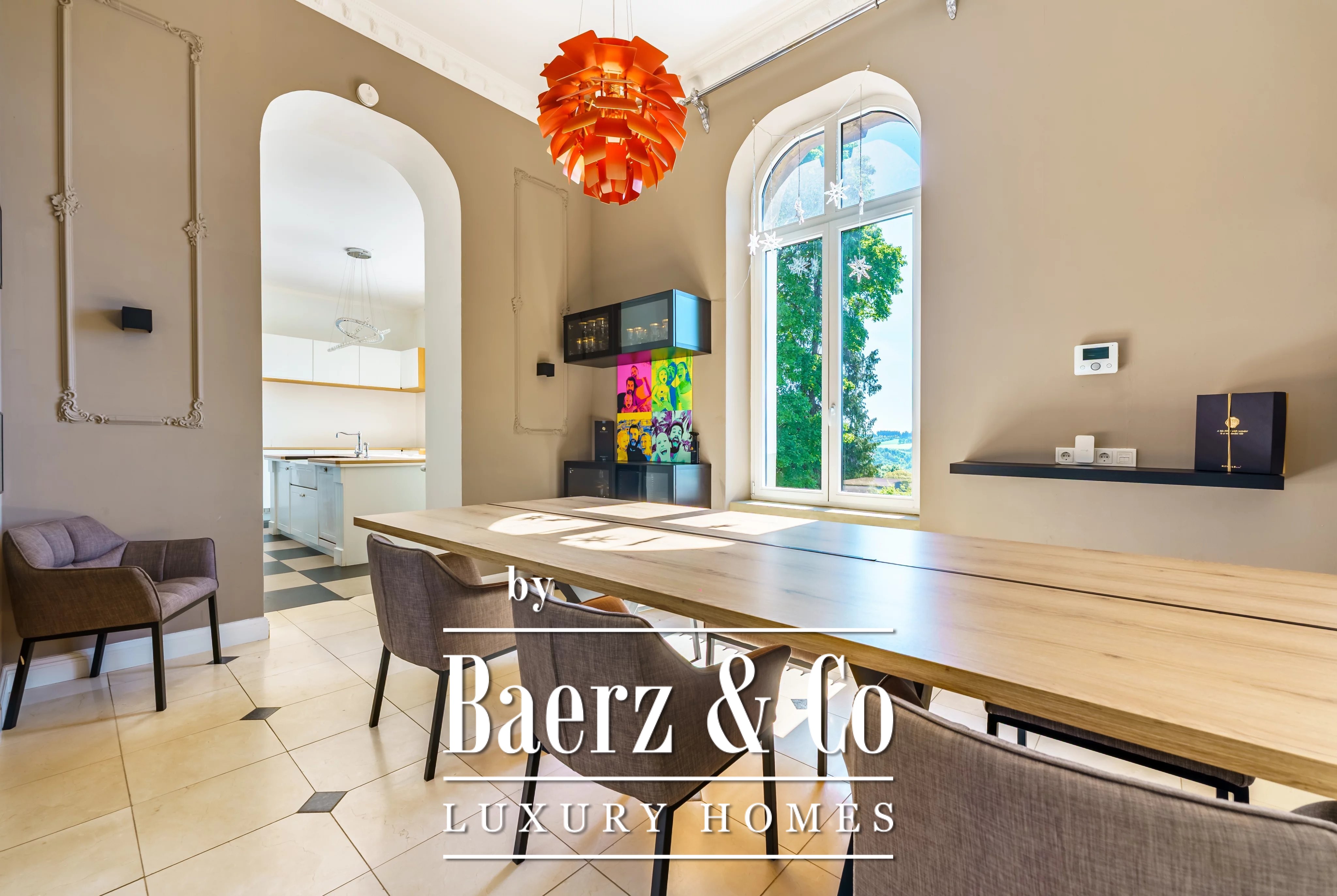 Das Untergeschoss bietet Funktionalität und Geborgenheit mit Waschküche, Werkstatt, Weinkeller, Einzelgarage und separatem Holzlager. Moderne Technik ist dezent integriert: 150 Solarpaneele mit 30 kW, ein intelligent steuerbares Heizsystem und ein BRUNNER-Kamin mit Ofen sorgen für Nachhaltigkeit und Komfort. Zu den Details zählen Doppelverglasung, Alarm- und Brandschutzsysteme, Tresor sowie zurückhaltende Beleuchtung. Das Herrenhaus Boevange richtet sich an Menschen, die Herkunft und zeitgenössische Ruhe gleichermaßen schätzen.