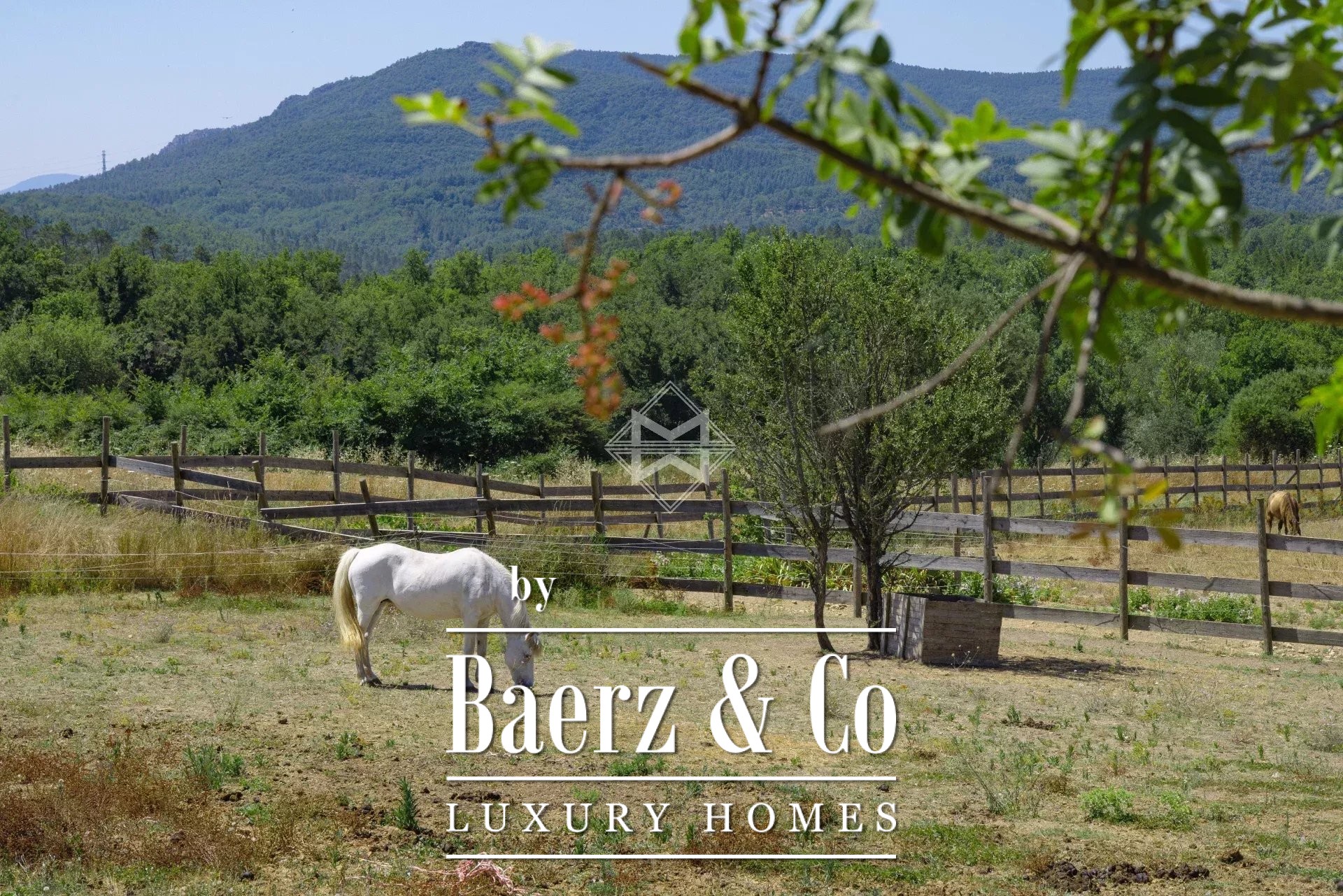 Das Anwesen ist eingebettet in 16.450 m² bewahrter Landschaft und eröffnet weite Ausblicke auf die umliegende Natur, die Ruhe und Inspiration schenken. Licht durchflutet das Innere, akzentuiert durch originale Kamine und die spürbare Wärme traditioneller Baumaterialien. Der Außenbereich umfasst einen Swimmingpool, Grillplatz, Brunnen und atmosphärische Beleuchtung für stille Momente oder gesellige Zusammenkünfte. Als luxuriöses Haus zum Verkauf in Fayence spricht dieses Angebot auch Interessenten an, die den Traum von Pferdehaltung, Gästezimmern oder einem privaten Familienrückzugsort verwirklichen möchten.