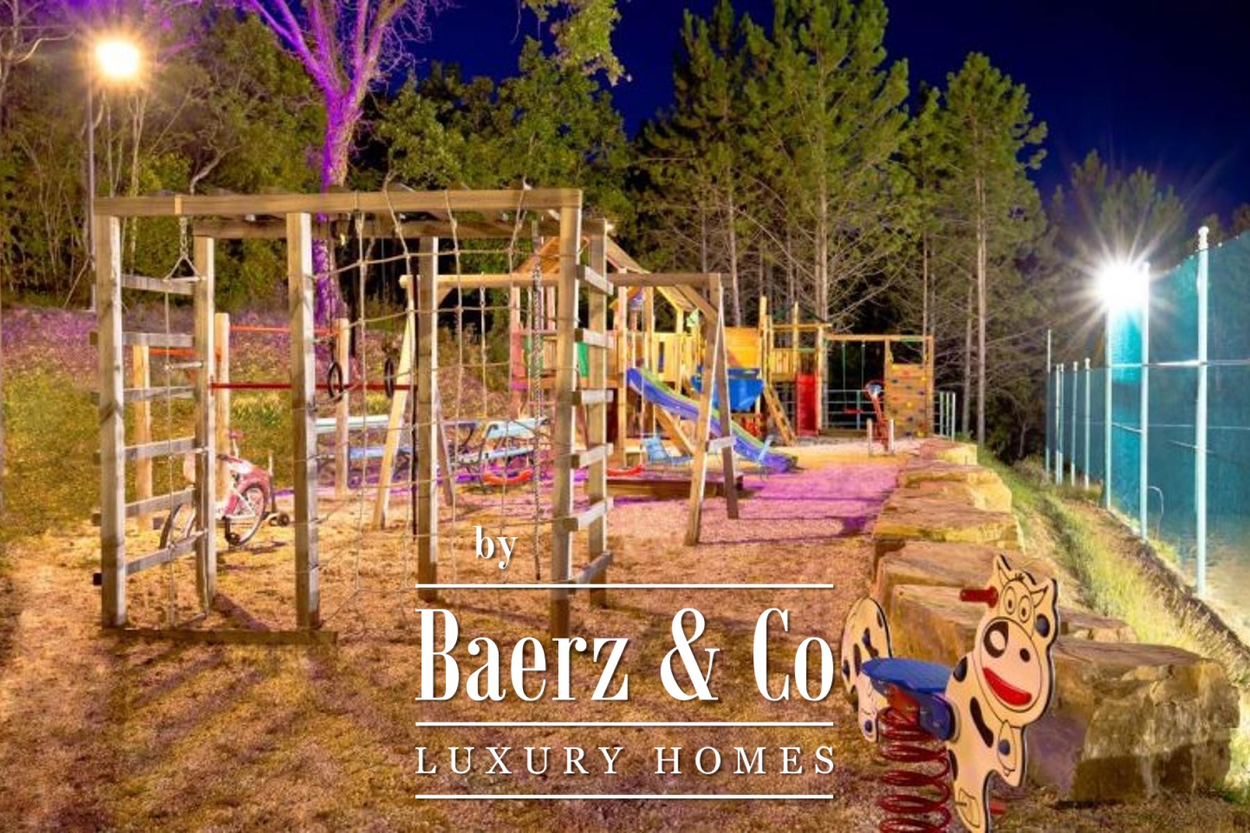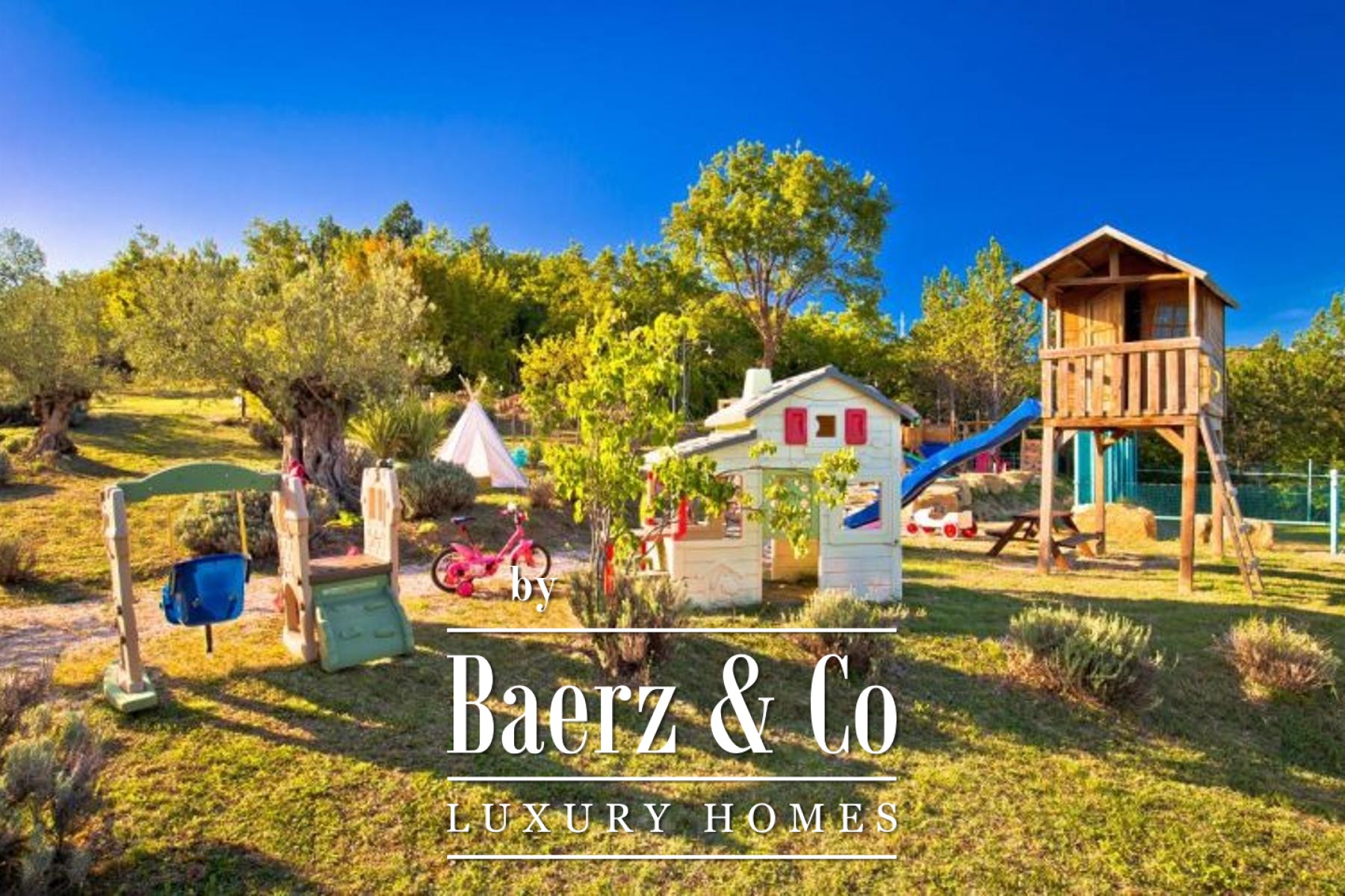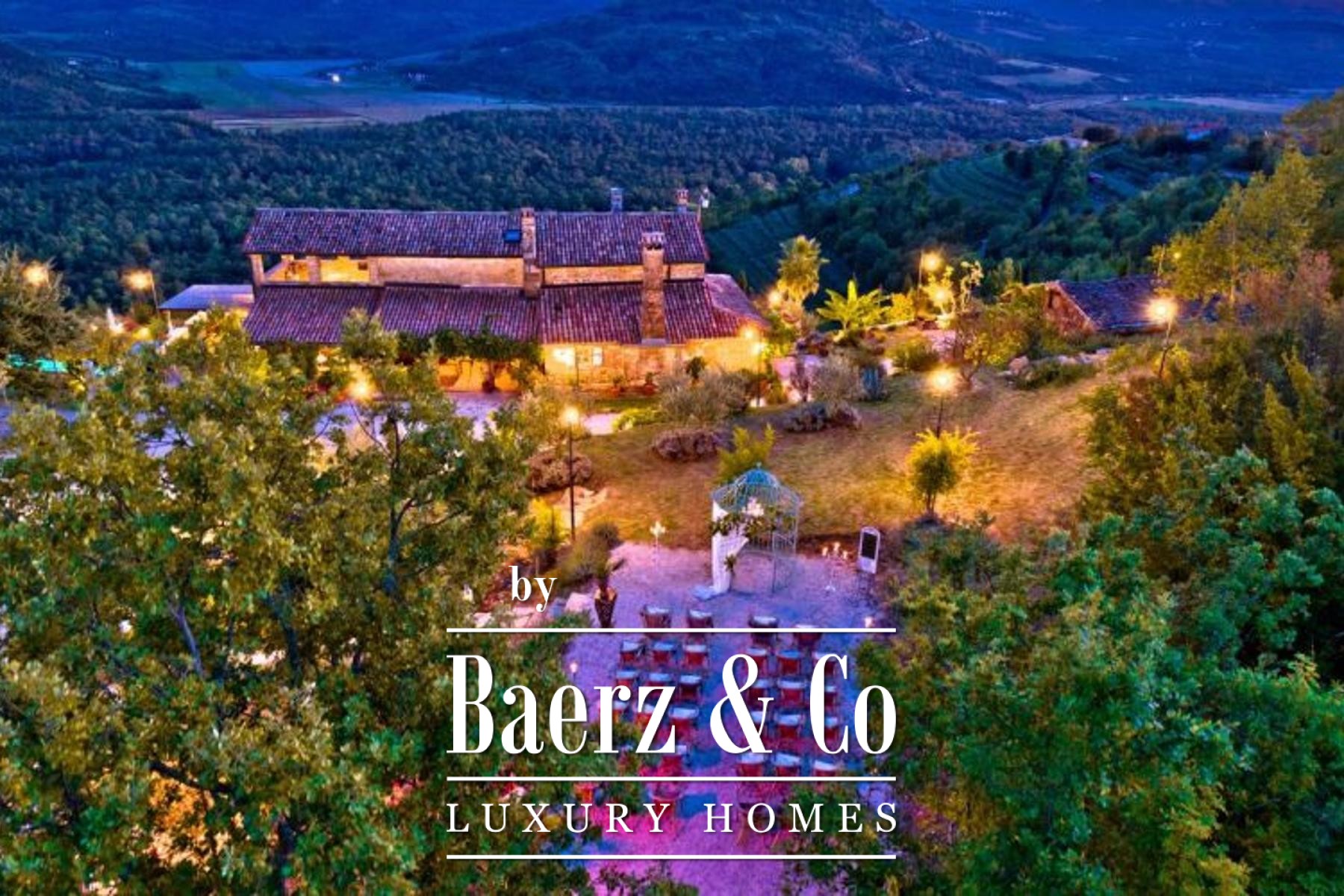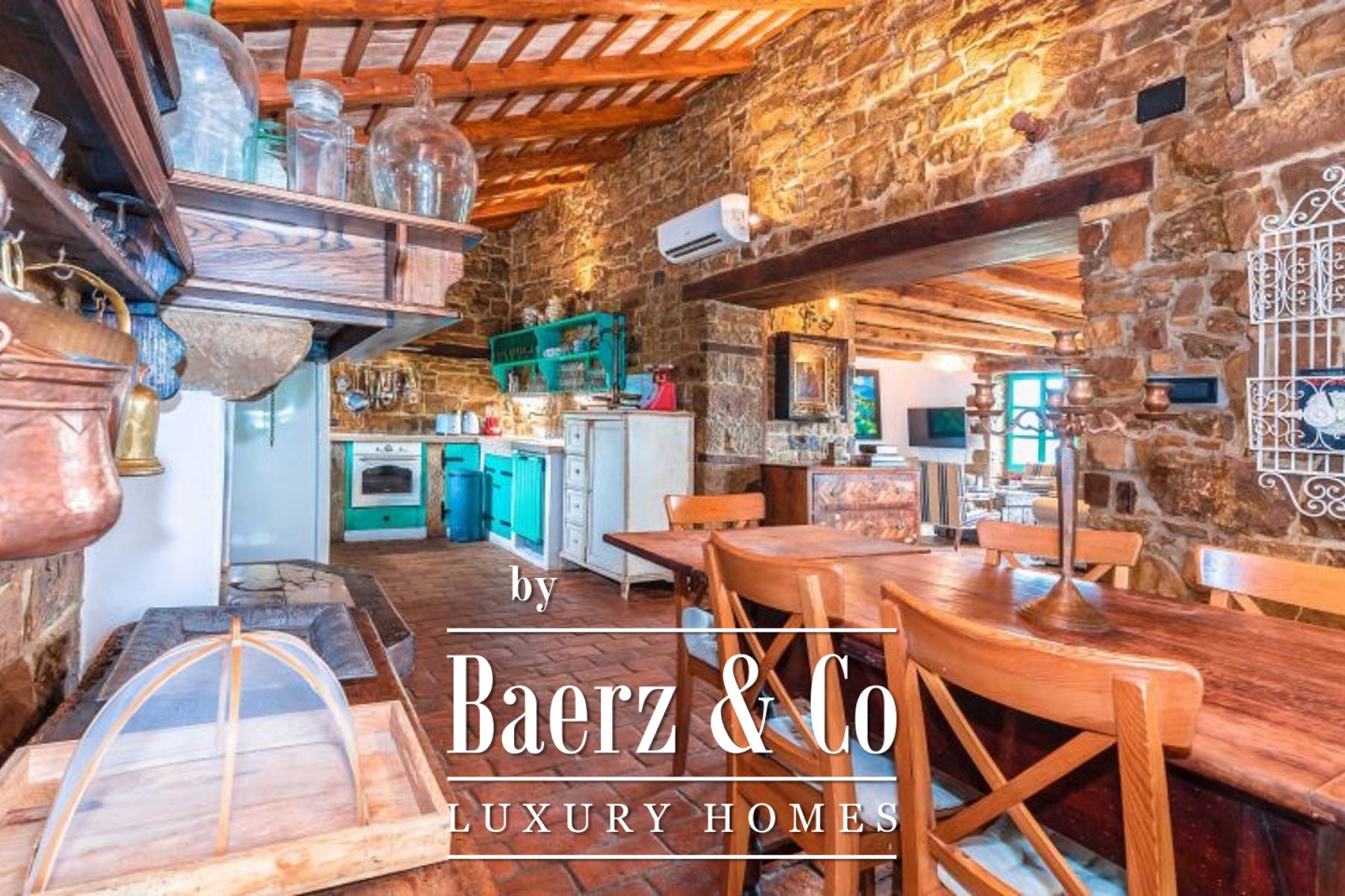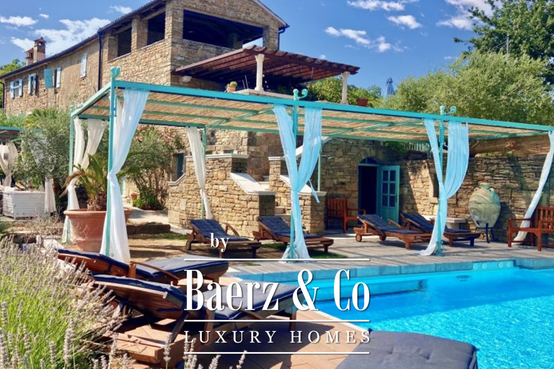 Zwei breite Terrassen lenken den Innenbereich auf wechselnde Panoramen, während durchdacht gestaltete Außenbereiche – wie ein Kinderspielplatz – Flexibilität für das Familienleben bieten. Die vollständige Eigentümerschaft des umliegenden Areals eröffnet unvergleichliche Potenziale für künftige Entwicklungen, sei es als privates Anwesen oder als Basis zur Errichtung eines Boutique-Hotels oder Gastgewerbekonzepts im authentischen Istrien-Stil.