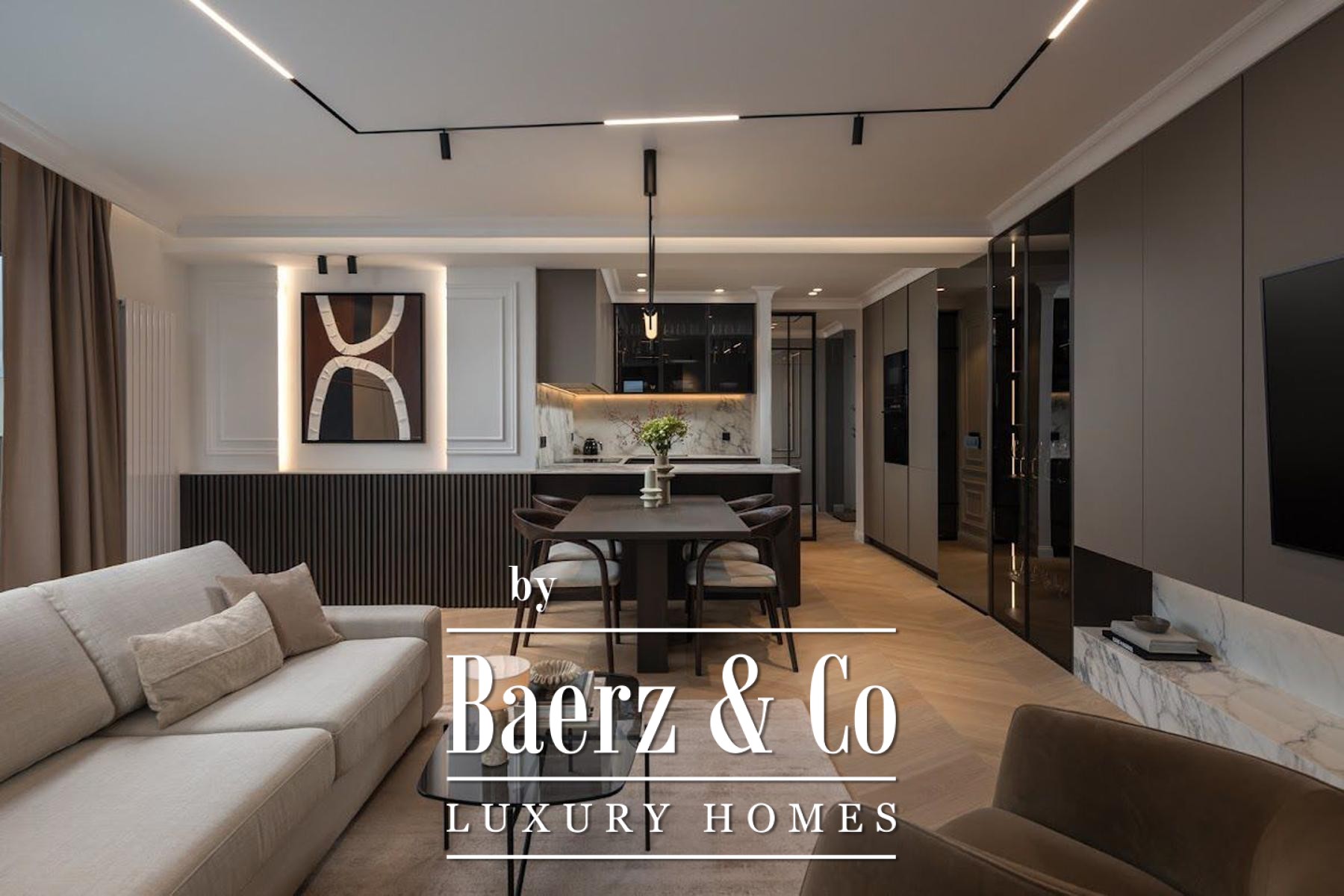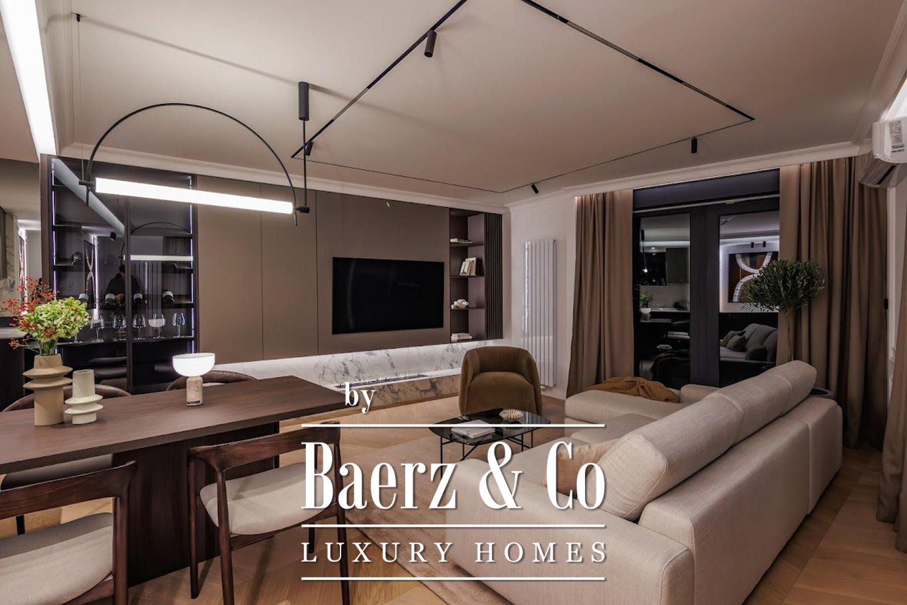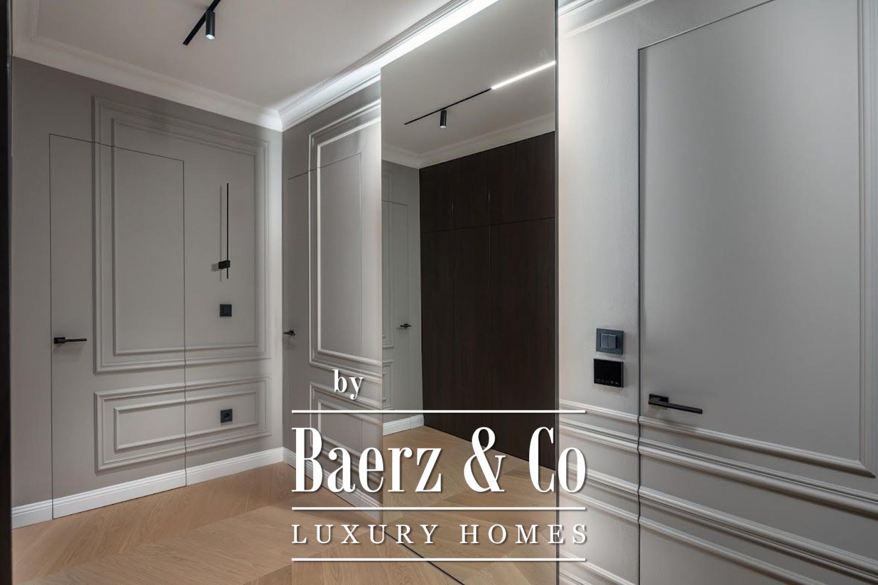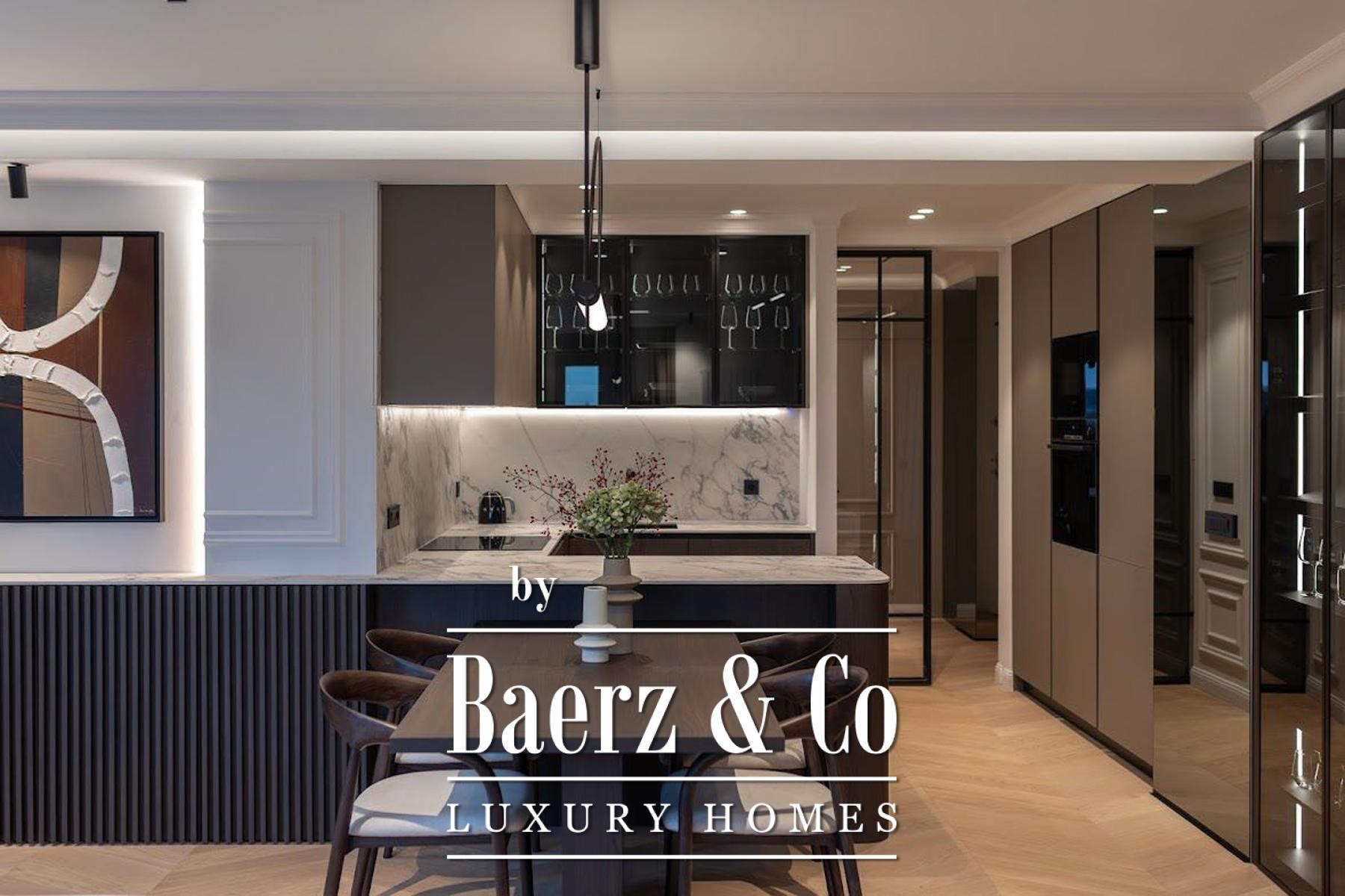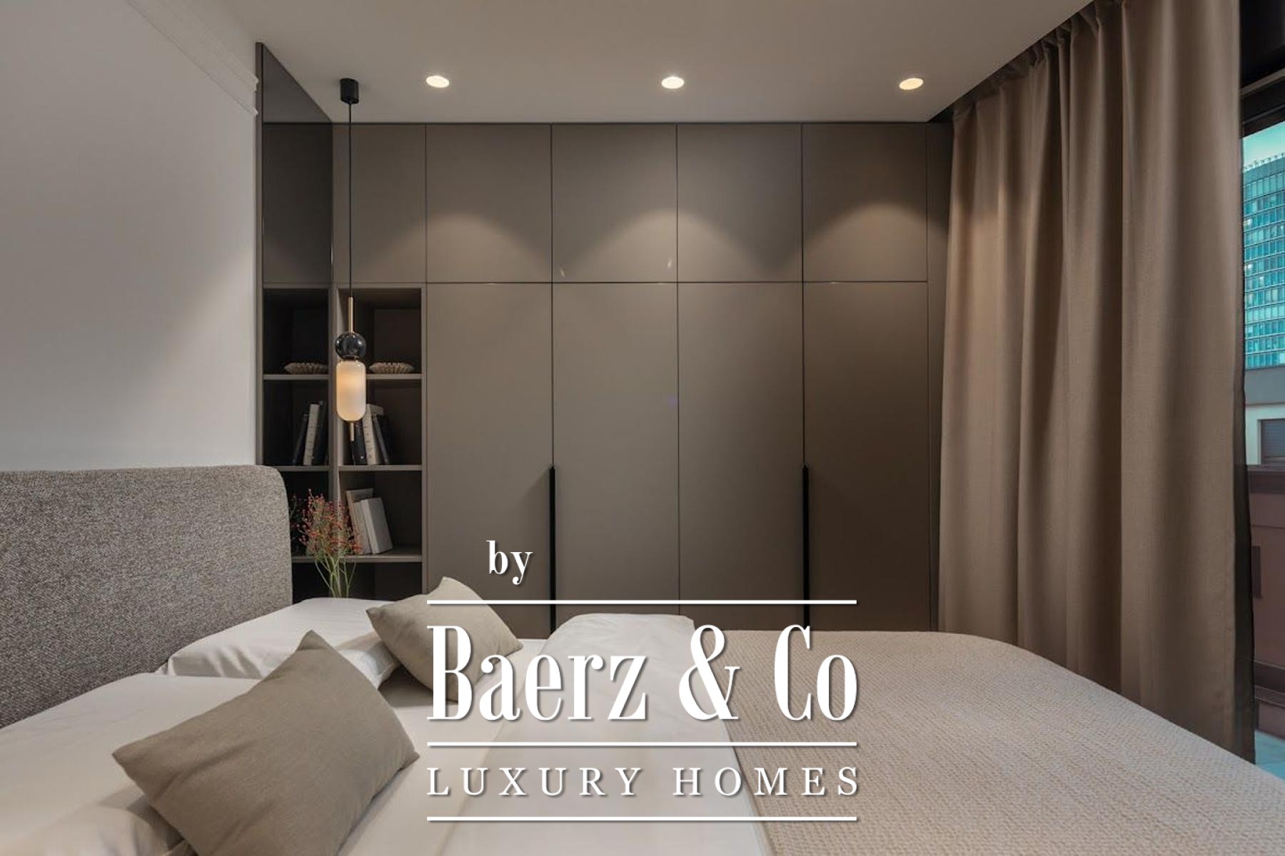 Vom direkten Aufzugseinstieg aus, der die Tiefgarage mit dem privaten Eingang verbindet, vermittelt das Penthouse seltene Intimität und Diskretion. Die Residenz umfasst fünf Schlafzimmer und fünf Bäder, jeweils mit maßgefertigten Sanitäreinrichtungen und Fußbodenheizung. Die Wohnbereiche sind lichtdurchflutet und zeichnen sich durch edles Chevron-Boen-Parkett, Aluminiumfensterrahmen, dreifach verglaste Fenster und integrierte LED-Beleuchtung aus, was eine raffinierte und einladende Atmosphäre schafft.