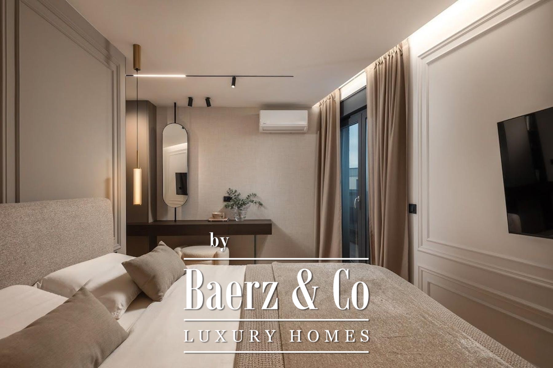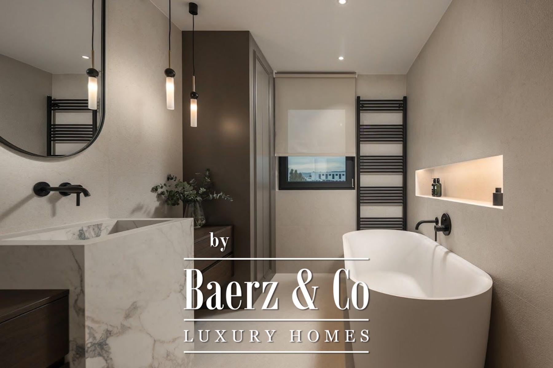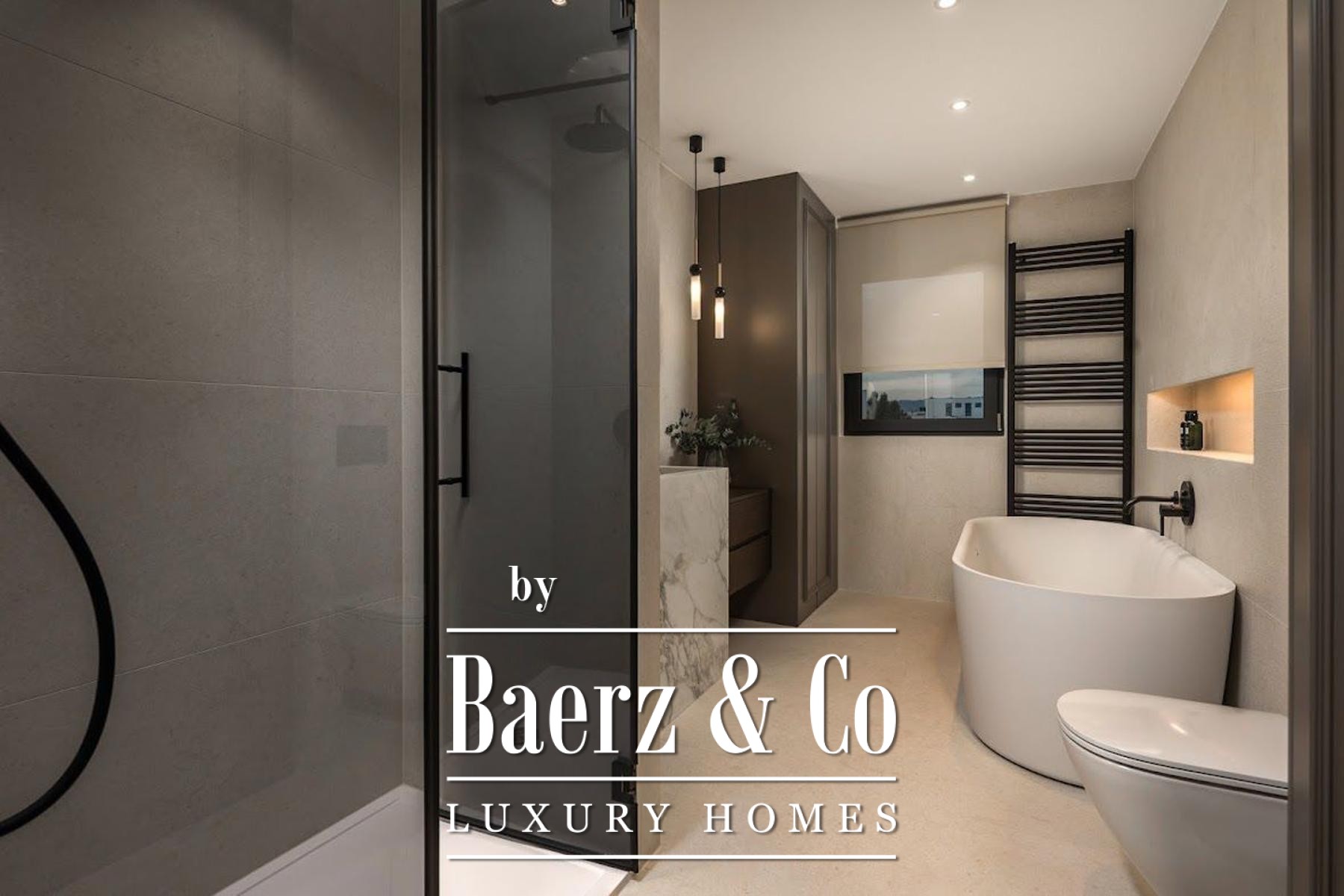 Ein moderner Bioethanol-Kamin verankert den Wohnbereich, während die Master-Suite mit großzügigen Ankleideräumen, Touch-Beleuchtung und sorgfältig ausgewählten Möbeln beeindruckt. Jeder Raum öffnet sich zu den umliegenden Terrassen und vereint natürliche Luftzirkulation mit Außenbereich. Weitere Besonderheiten umfassen einen Abstellraum mit 13,10 m², eine Designerküche mit hochwertigen Geräten, einen 65" Samsung Frame TV, einen Weinschrank und kuratierte Kunstinstallationen.