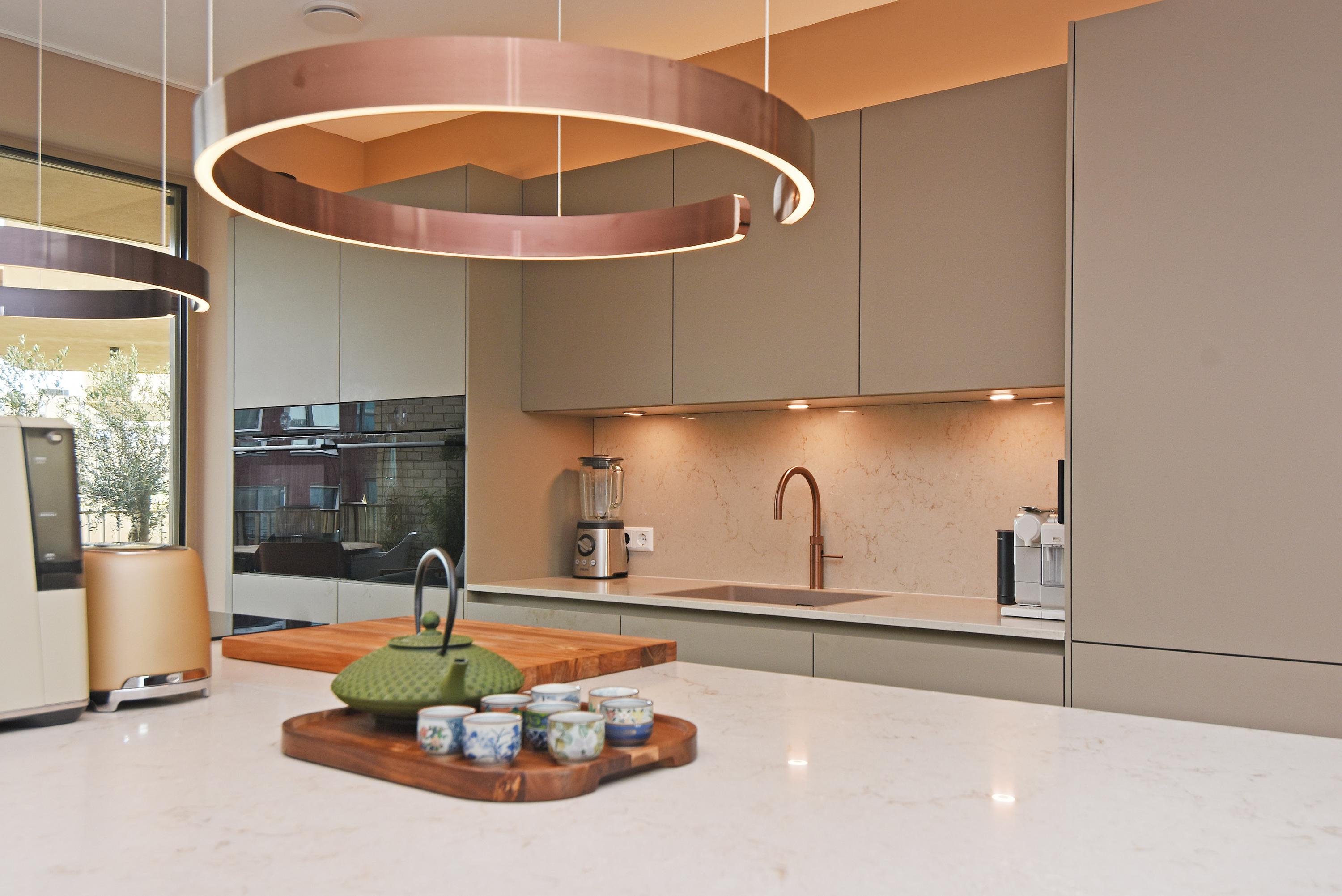 The spacious hallway leads you into an impressive open living area where living room and kitchen flow seamlessly together. The floor-to-ceiling windows offer panoramic views of the harbour and sea – a true eye-catcher that immediately sets the tone. The enormous sliding doors on the harbour side really bring the outdoors in, making a morning coffee in the sunshine a wonderfully peaceful moment of the day.