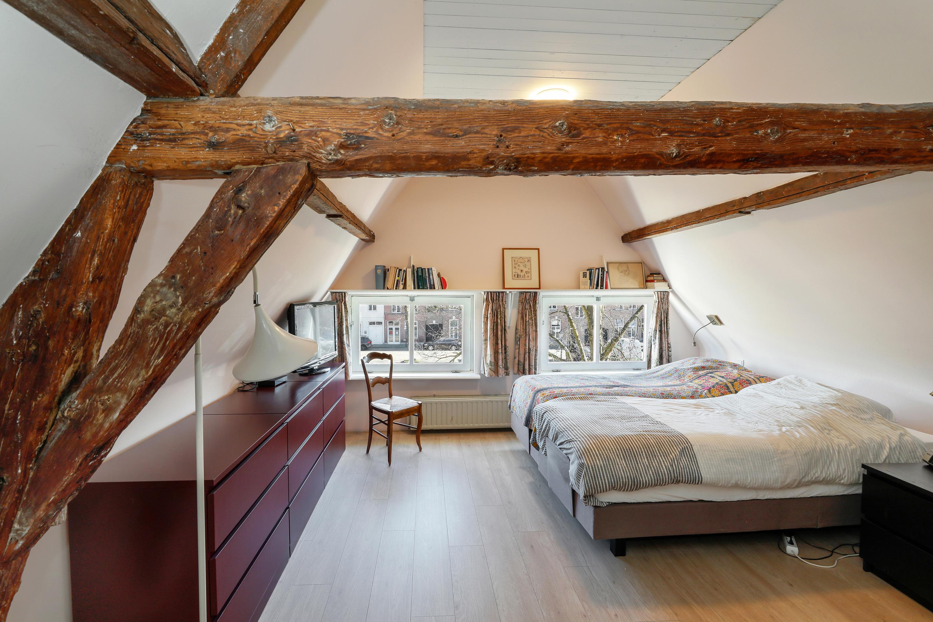 Live in one of the most beautiful locations in Den Bosch's city center, with water at both the front and back. This charming townhouse, dating from around 1670, features two living rooms, two roof terraces, a private garage, an elevator, and a beautiful view of the Brede Haven.