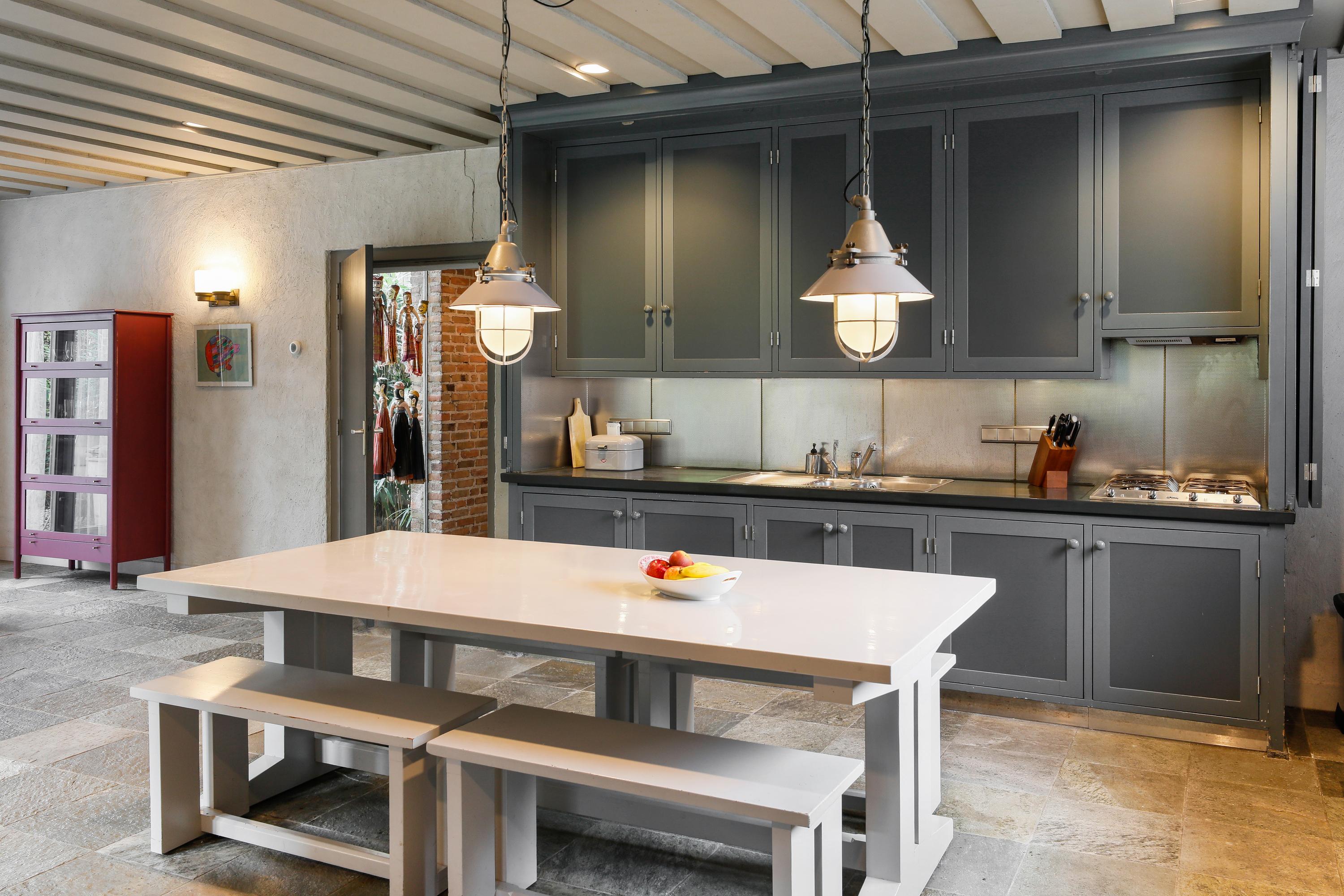 This house was built in the style of "De Bossche School" (The Bossche School). This architecture, combined with the size of the building and the plot, makes it uniquely unique in the neighborhood. The architecture guarantees residents well-proportioned spaces and beautiful views. There is a front and back house connected by a hallway and staircase. Not only the number of bedrooms but also the spacious living areas ensure a spacious and comfortable family life. The large garden surrounding the house also contributes to this. There are several terraces, a playground with mature trees, and a flower garden adjacent to the studio. This is the house the neighborhood has been waiting for. Now's your chance.