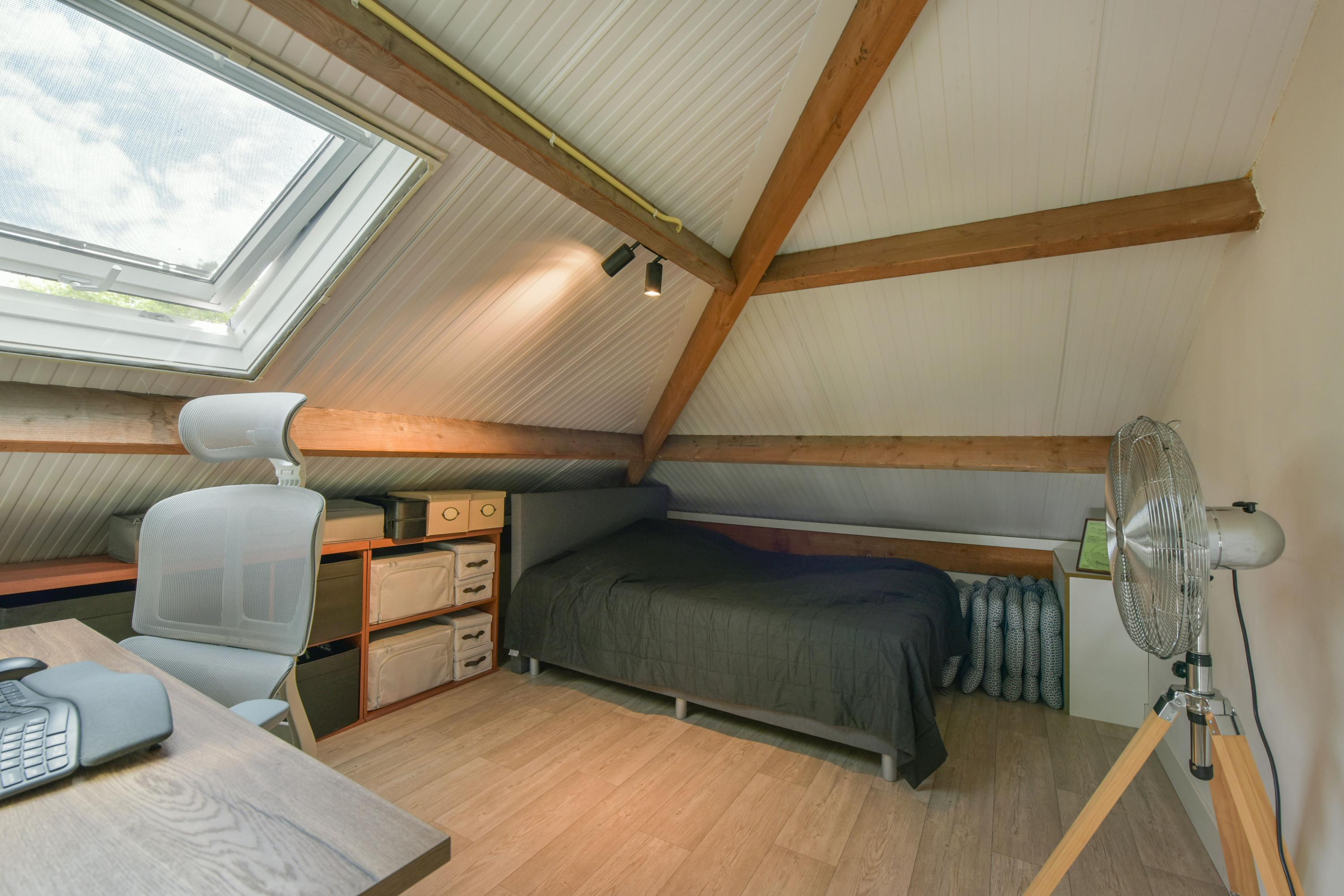 The ground floor has been recently modernised, with the bathroom renewed in 2024 and the kitchen updated in 2025. The spacious living room, featuring large windows and French doors opening onto the garden, forms the heart of the home. The modern kitchen with cooking island, high-quality appliances and bar area connects seamlessly to the living space. In addition, there is a bedroom with en-suite bathroom, a multifunctional room prepared for an additional bedroom or bathroom, and a utility room with access to the veranda and an additional storage area.