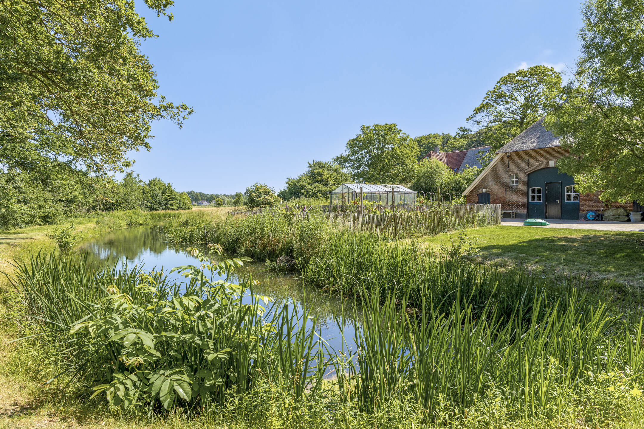 After a long life - centuries - in 2011 this beautiful farmstead was converted into a high-quality finished and optimally preserved residence. Because the agricultural use was removed, the landscape was also changed. For example, it was decided at the time to restore the historic moat and route it around the house again.