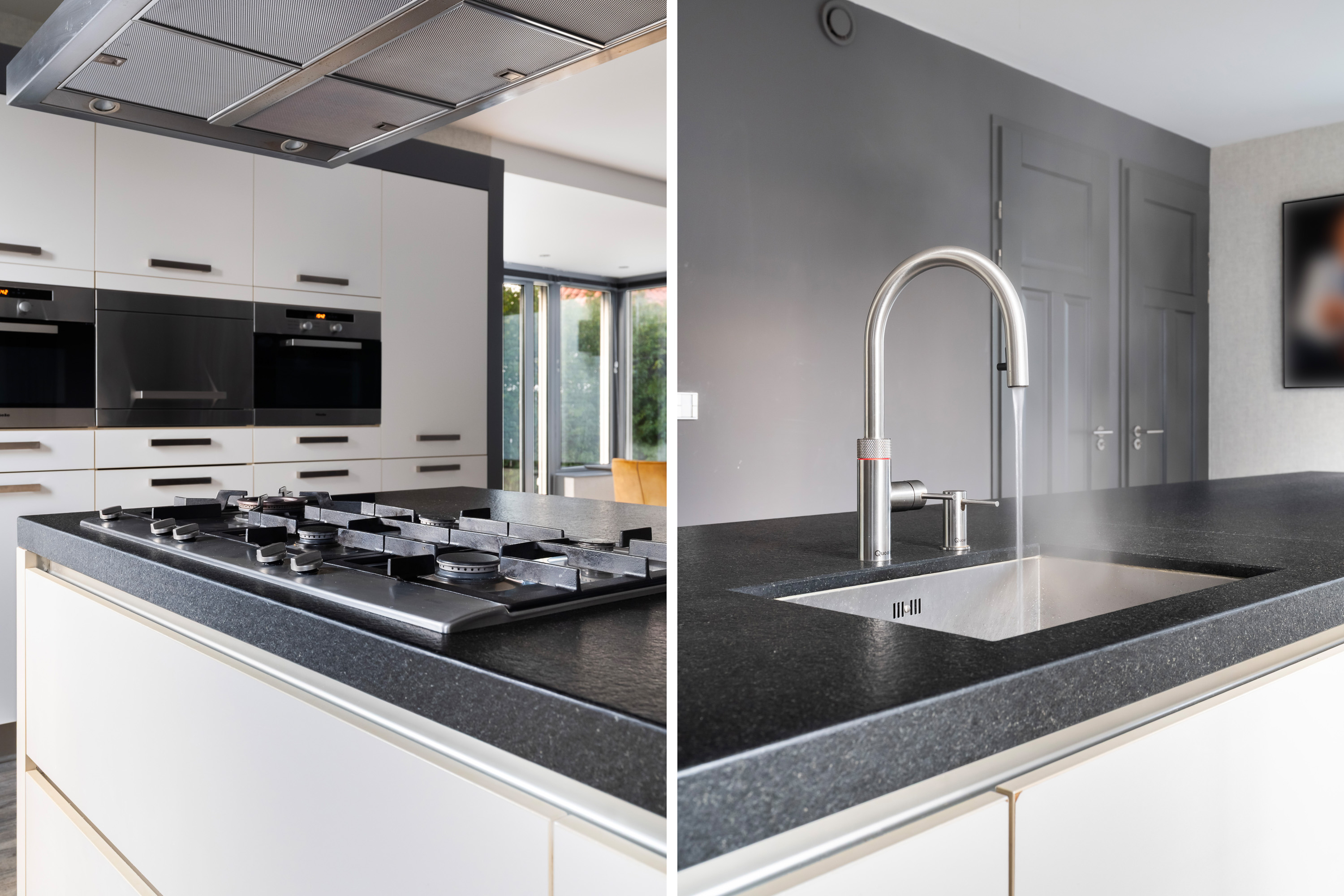 In addition, the kitchen features a Quooker and a water purification system for drinking water. The entire house is fitted with a central water softening system.
