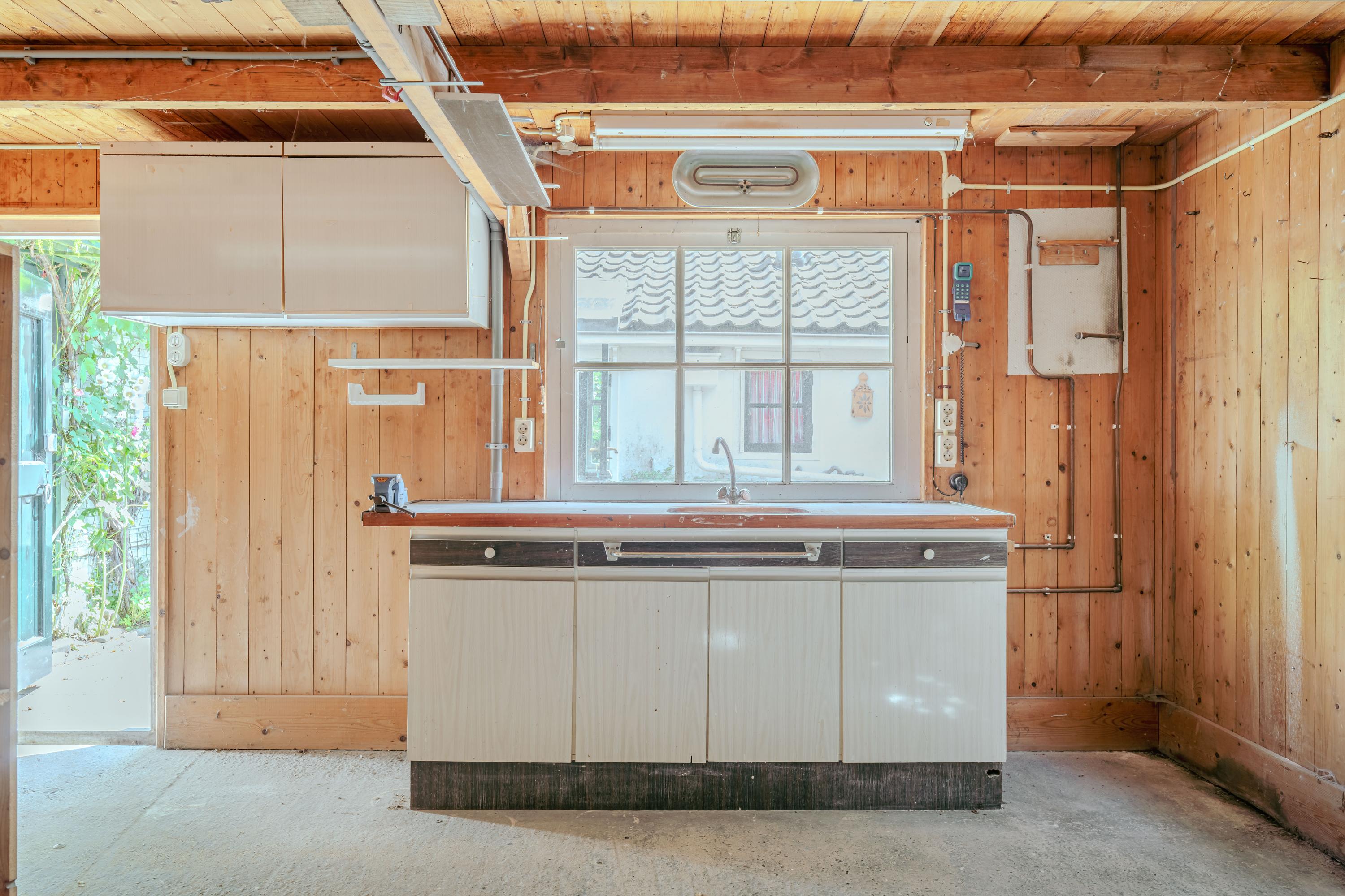 Upon entering, you arrive in the courtyard, the central point of the property. It is surrounded by greenery and several outbuildings. On the right-hand side stands a multifunctional building equipped with electricity and water, featuring a simple kitchen on the ground floor and a toilet on the first floor. This space is suitable for use as an independent living unit, studio, or guest accommodation. The second outbuilding has large windows overlooking the greenery behind and offers additional storage space or potential for alternative use.