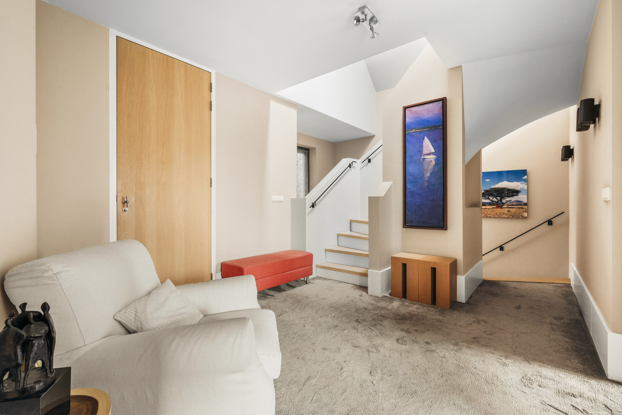 The basement level is accessible via a fixed staircase and features a comfortable ceiling height of approximately 2.55 metres, allowing it to be fully used as a complete living space. This level is multifunctional and perfectly suited for, for example, a gym, playroom, hobby room or home cinema.