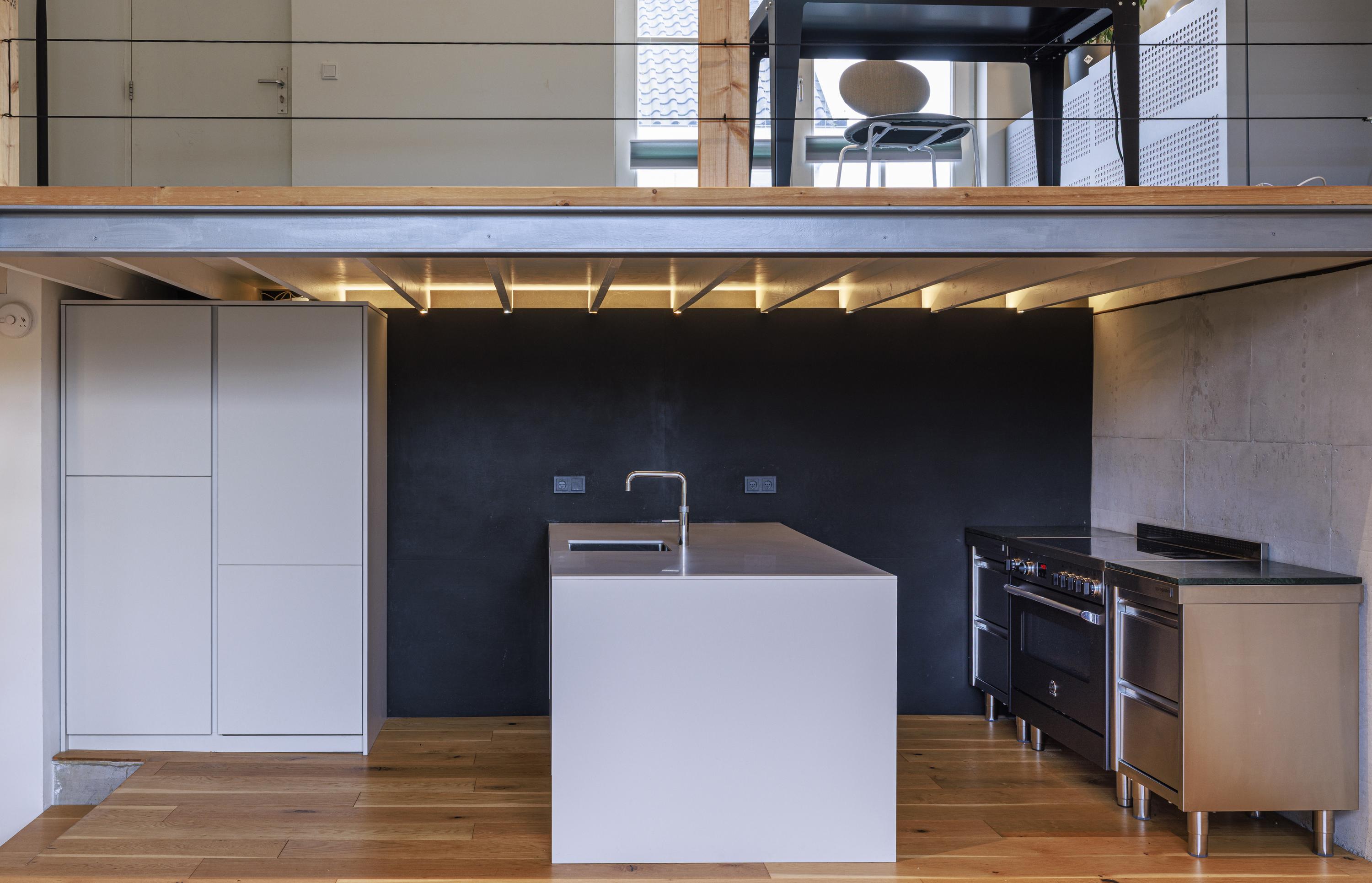 Zaan-style house: entrance, generous office space (mezzanine), stairs to the living area.