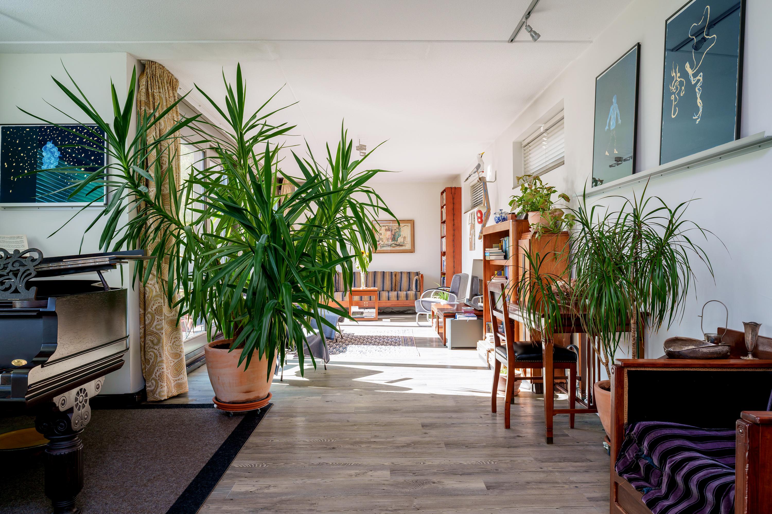 The living floor is spacious and wonderfully bright thanks to the large windows on all sides. The living room (40 m²) has a playful and inviting layout and provides access to the generous terrace with abundant sunshine and wide, open views over the water and surrounding area – a delightful outdoor space at any time of day.