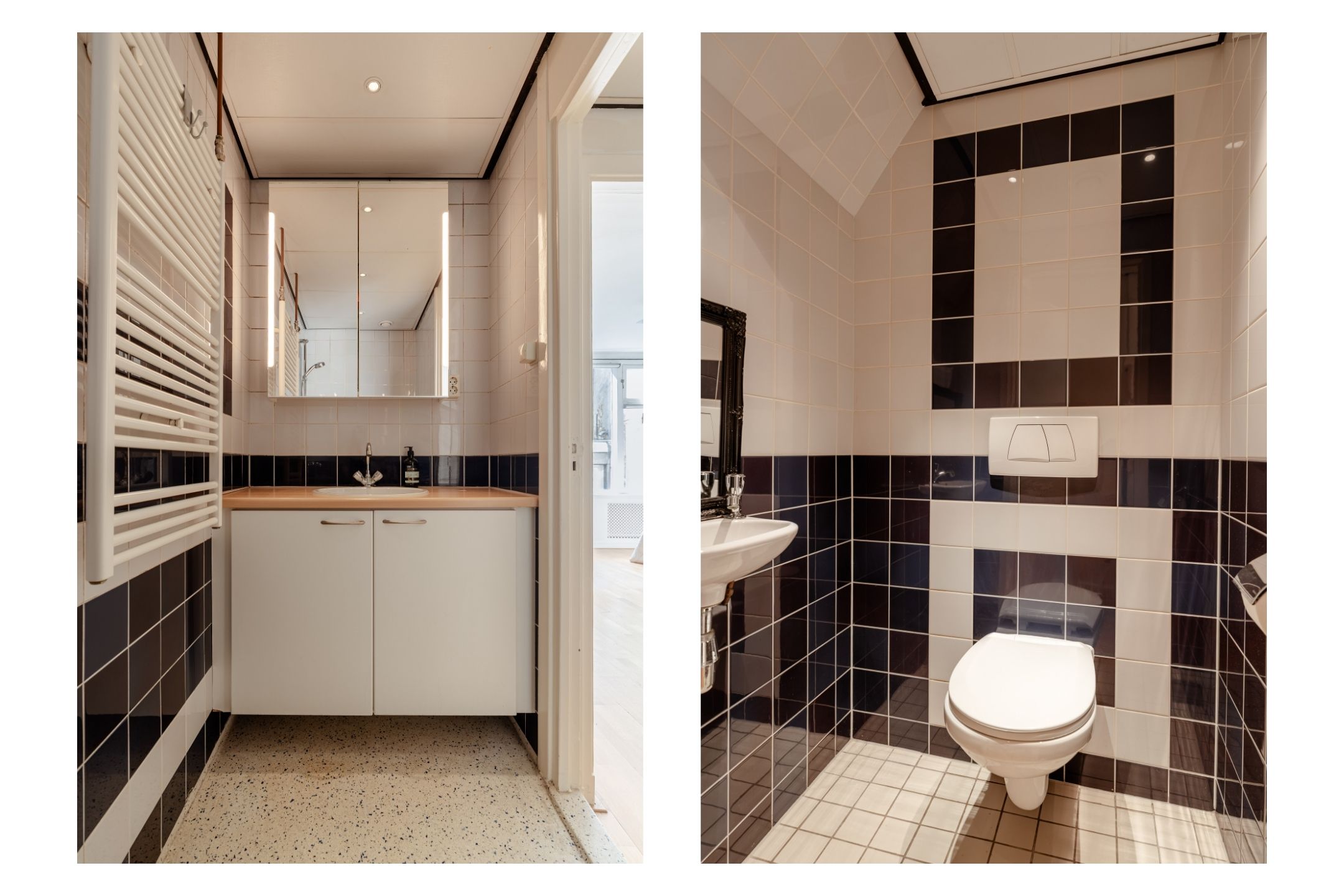 Upon entering the apartment, you arrive in a long hallway that connects to all rooms. Here you will also find practical storage space and a separate guest toilet with washbasin.