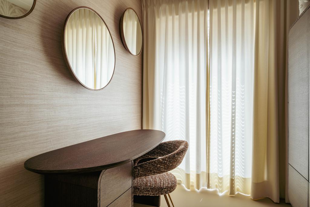 Adjacent to the dining room is a versatile room, perfect as a guest bedroom or home office. The entire floor boasts premium finishes with elegant wallpaper, enhancing its warmth and character. Large windows on both sides ensure exceptional natural light and emphasize the floor’s sense of space and luxury.