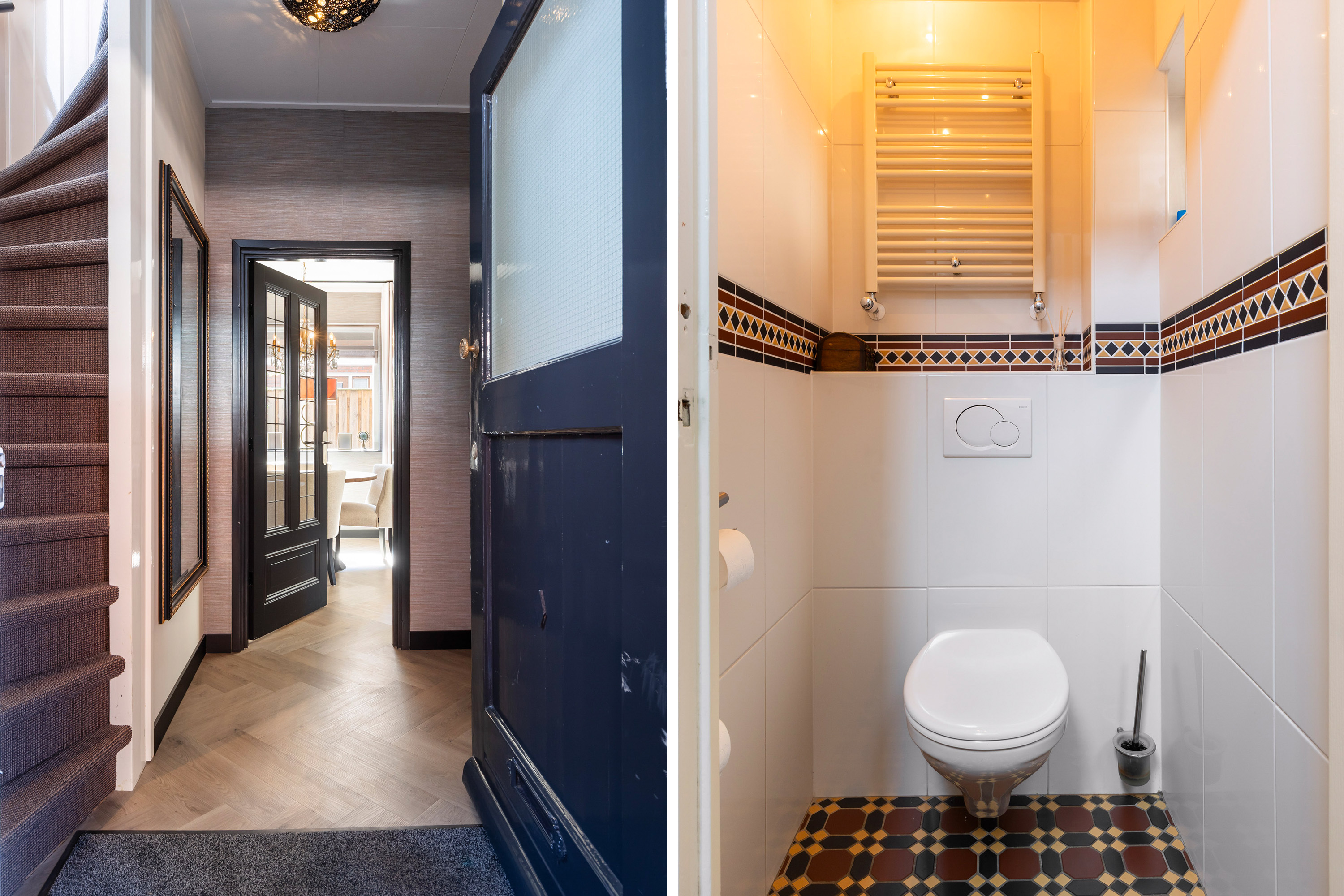Bij binnenkomst valt direct de hoogwaardige afwerking op. Vanuit de entree zijn de garderobe en een modern toilet met wandcloset bereikbaar.