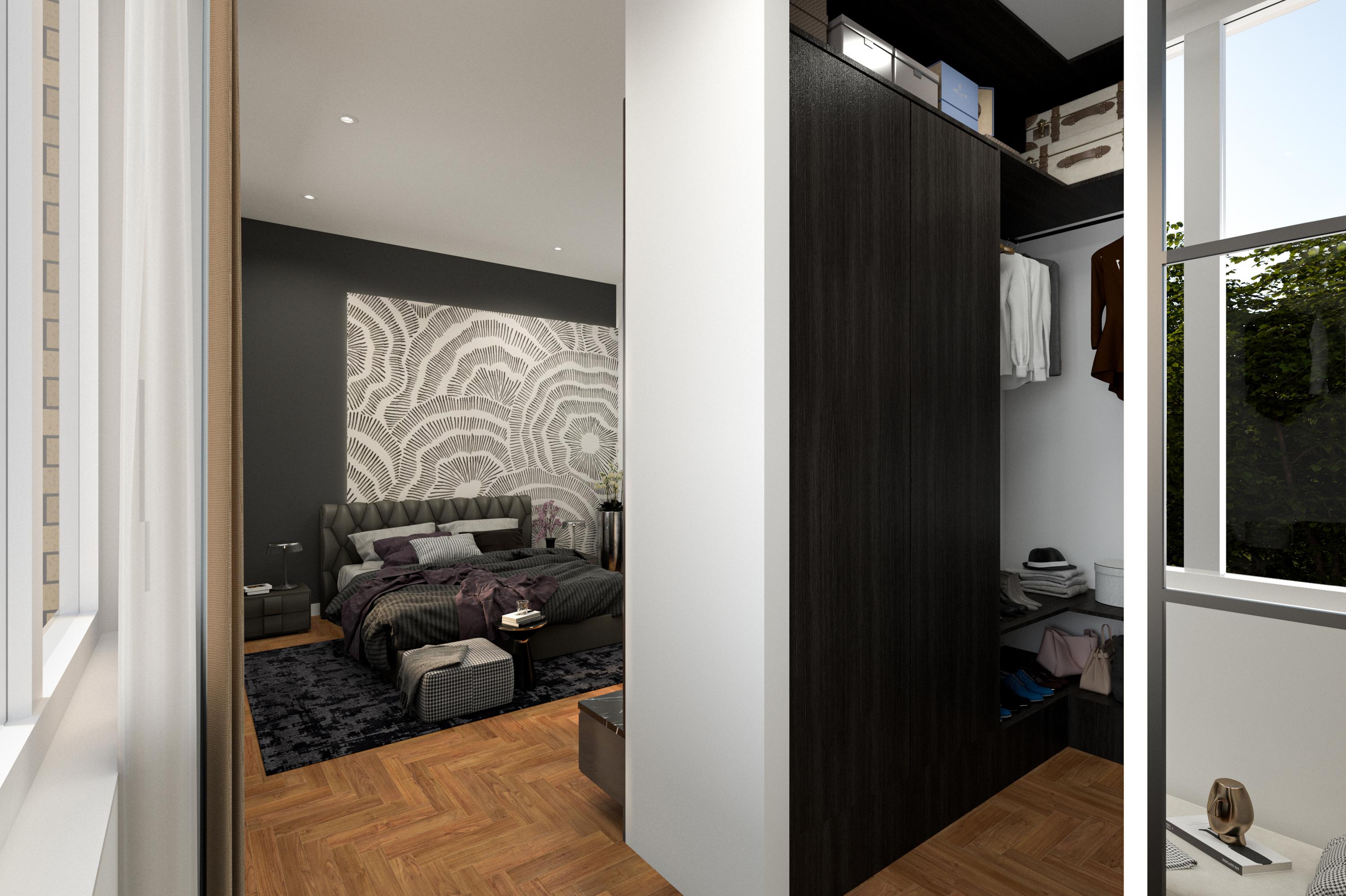 Space has already been reserved next to the master bedroom for a walk-in closet. The layout for this area is already visible, making it easy to realise a stylish wardrobe space that seamlessly connects to the master bedroom.