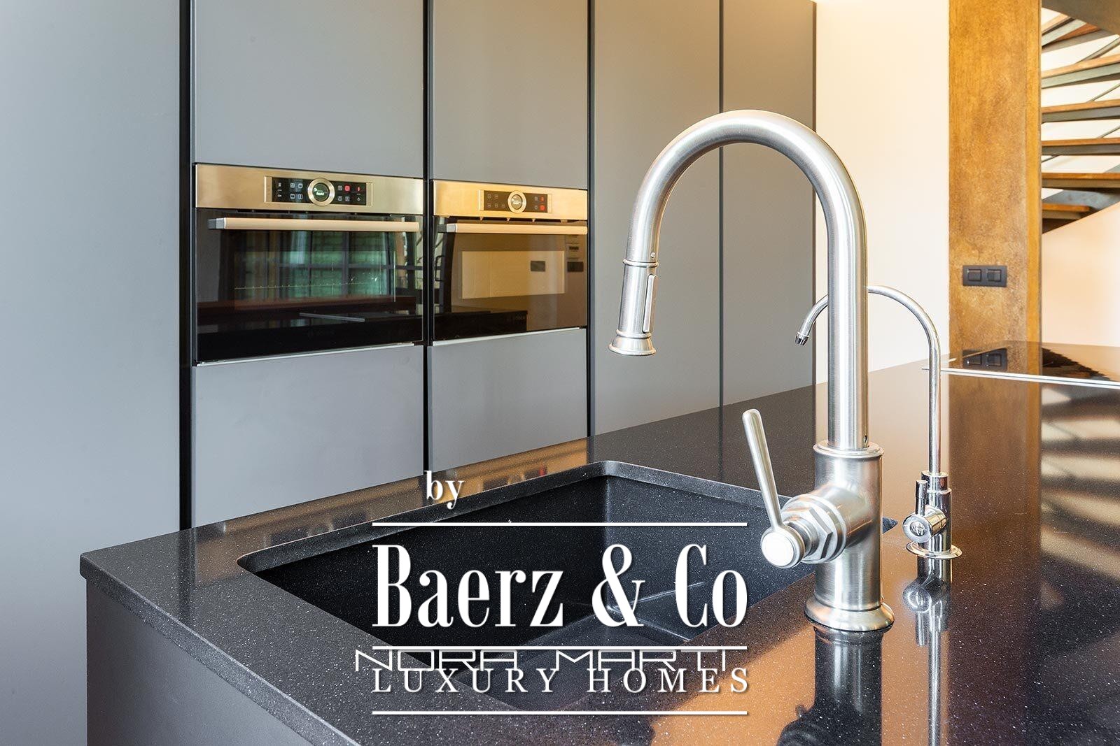 The duplex features five spacious and serene rooms for relaxation, three of them on the lower floor and two more on the upper floor, one of which is a suite with a dressing room, like an intimate retreat within the home. Three full bathrooms and an additional toilet complete this dwelling designed for well-being.