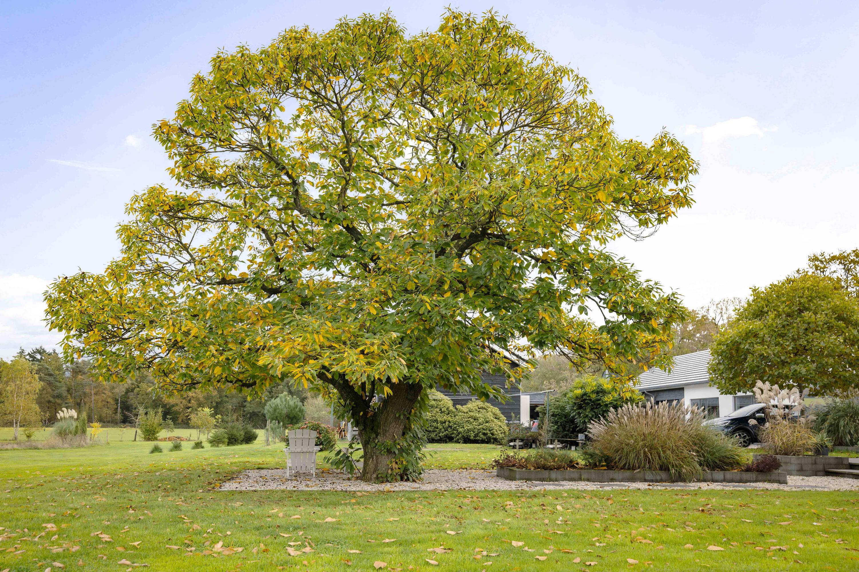 The unique orchard contains a wide variety of fruits and nuts. Young fruit and nut orchard of approx. 1.2 hectares based on row cultivation, including kiwi, persimmon and approx. 55 nut varieties: walnut, pecan, hazelnut, chestnut, almond, pistachio, pine nuts, partly grafted with 6 varieties of truffle (summer, autumn, black, white, Burgundy & Brumale). In addition to the “usual suspects”, such as pears, apples, cherries, walnuts, hazelnuts and plums, we also find exotic fruits such as kiwis and even a banana tree. And everything grows and flourishes beautifully!