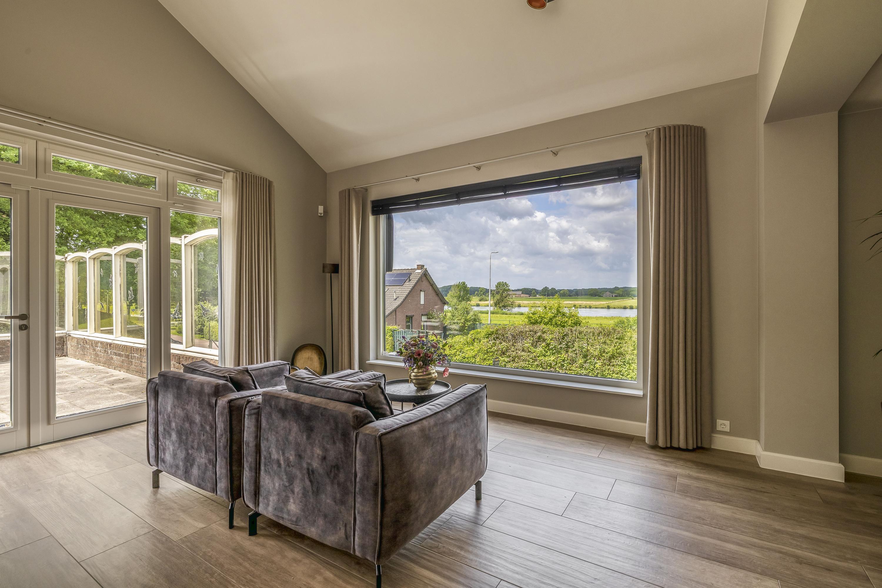 This beautiful detached home offers a unique and breathtaking view of the River Maas, visible both from the open, high-ceilinged living room and from the terrace at the side of the house. A place where peace and space come together!