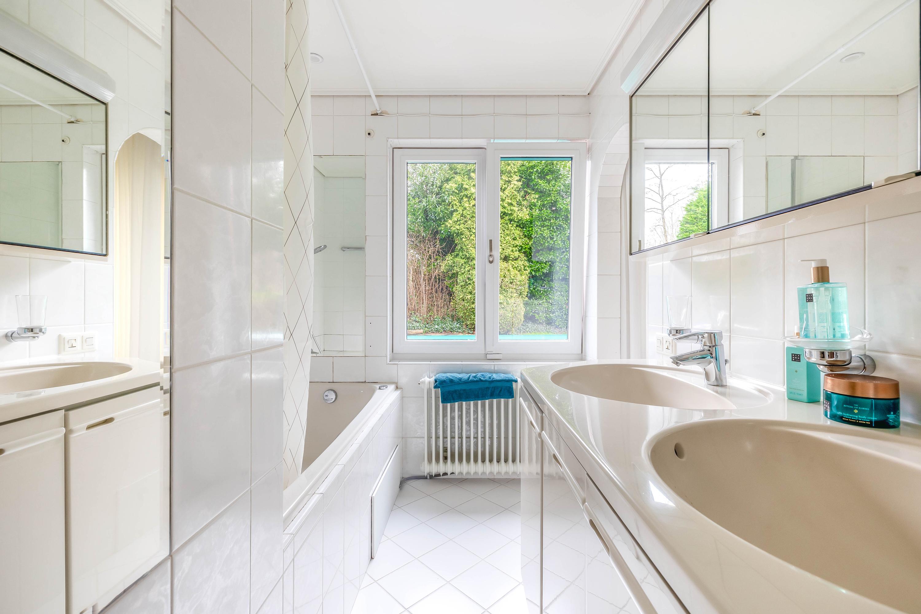 From the stunning, high L-shaped living room (approx. 72 m²), there is a fantastic view of the River Maas. The high ceiling, numerous windows, and double sets of garden doors ensure beautiful natural light. The solid kitchen (approx. 7 m²) is equipped with an induction hob, extractor hood, dishwasher, refrigerator, and a combination steam oven. From here as well, there is a lovely view of the Maas. The kitchen is finished with a composite worktop.