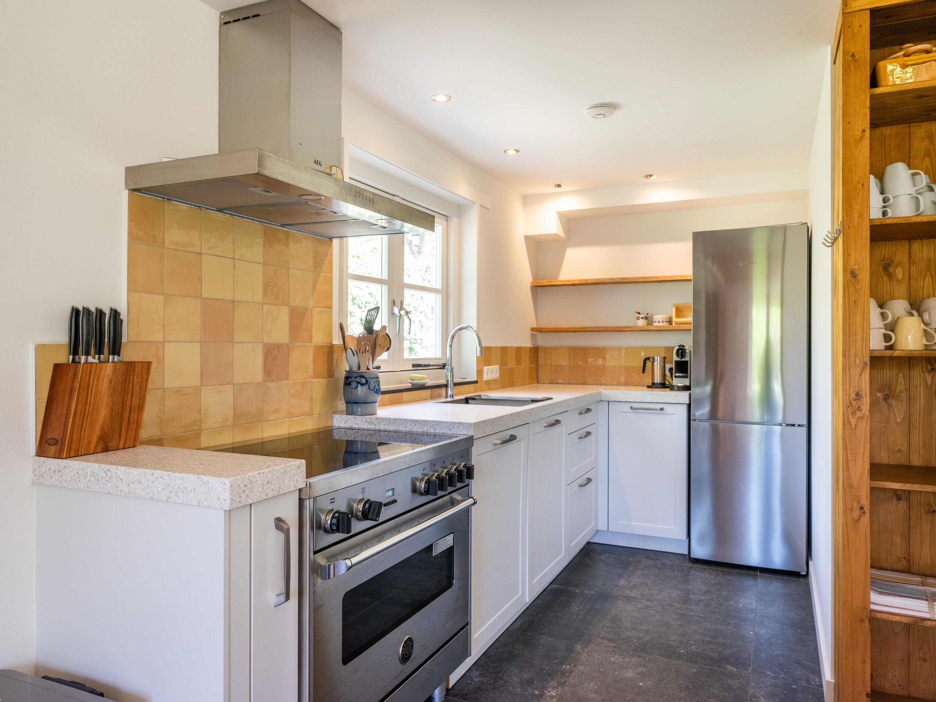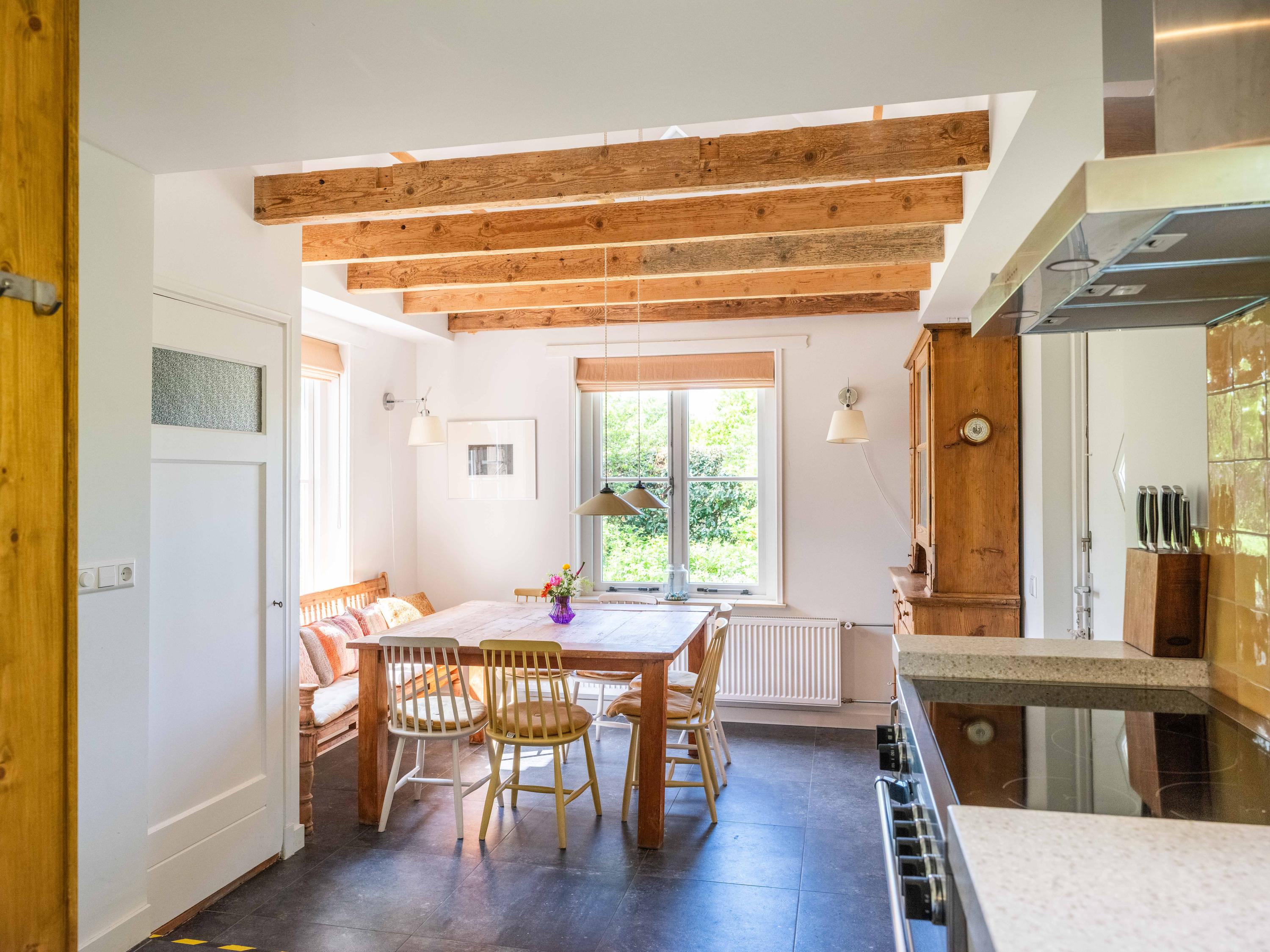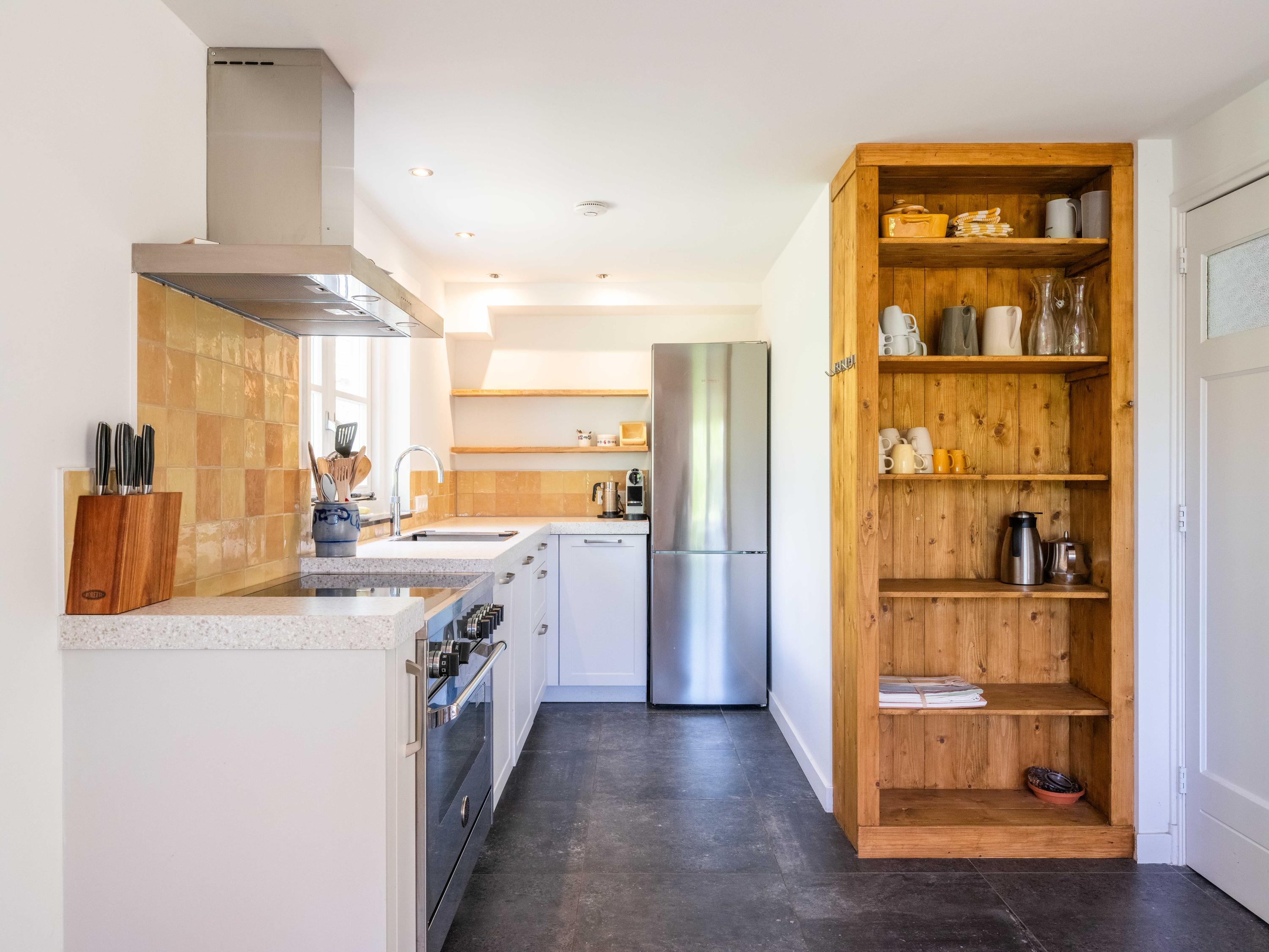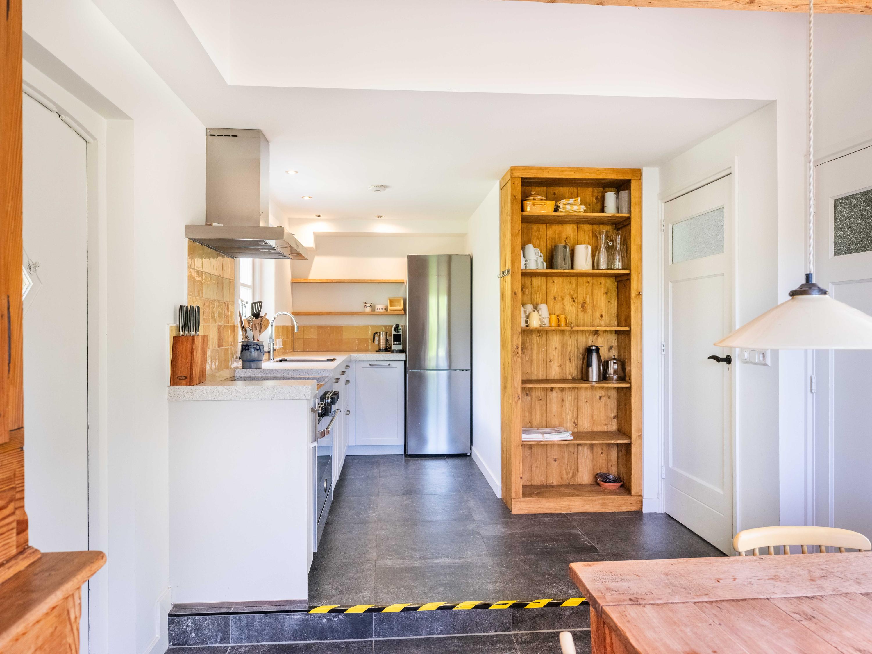 The kitchen is a great place for the whole family, equipped with all conveniences: a Quooker, dishwasher, extractor hood, large oven with induction hob, and a separate fridge-freezer. The kitchen also provides access to the meter cupboard.