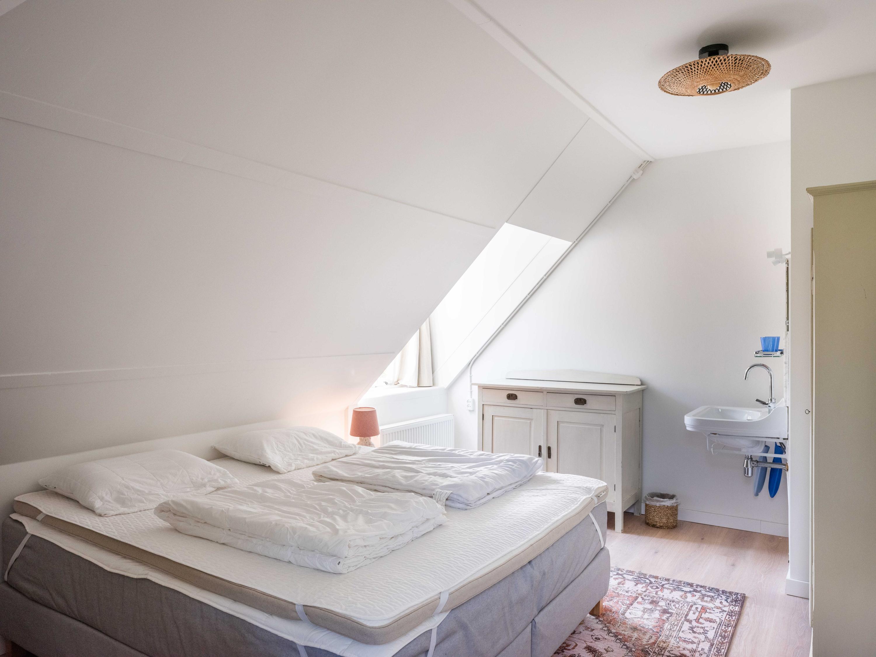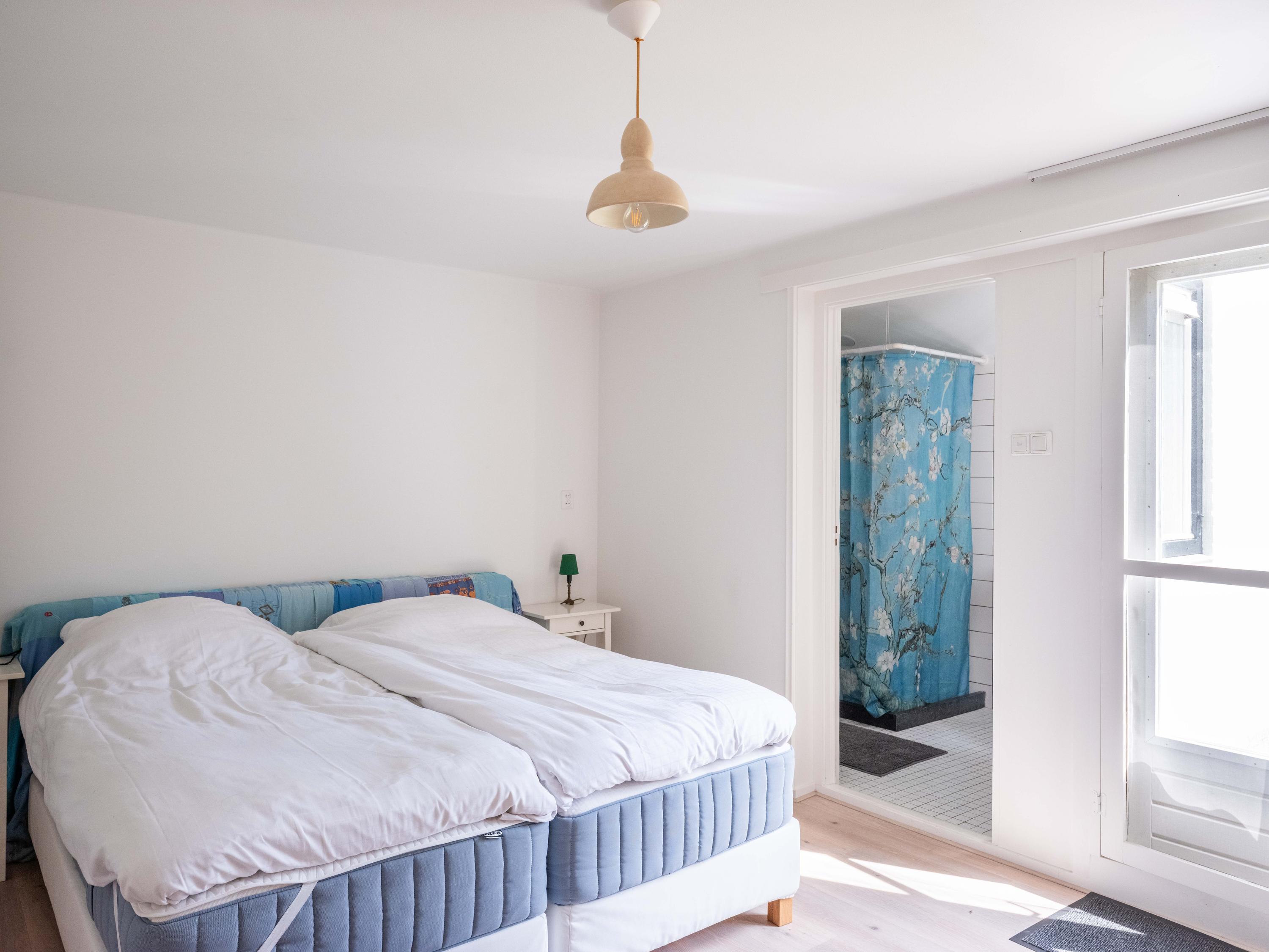 The ground floor also has a bedroom with an en-suite bathroom. Here you will find a shower, toilet, and sink. In short, a lifetime-proof layout.