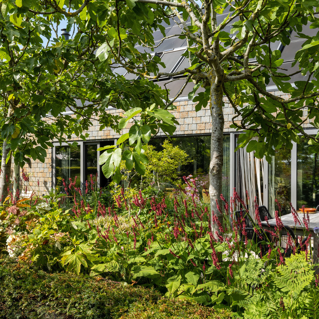 The garden is an oasis of peace and inspiration, with more than beautiful planting, several seating areas, a fantastic greenhouse, chickens, sunny and shady spots and stunning views. A greenhouse is directly linked to the beautifully landscaped kitchen garden. Chickens and a fruit garden complete the picture.