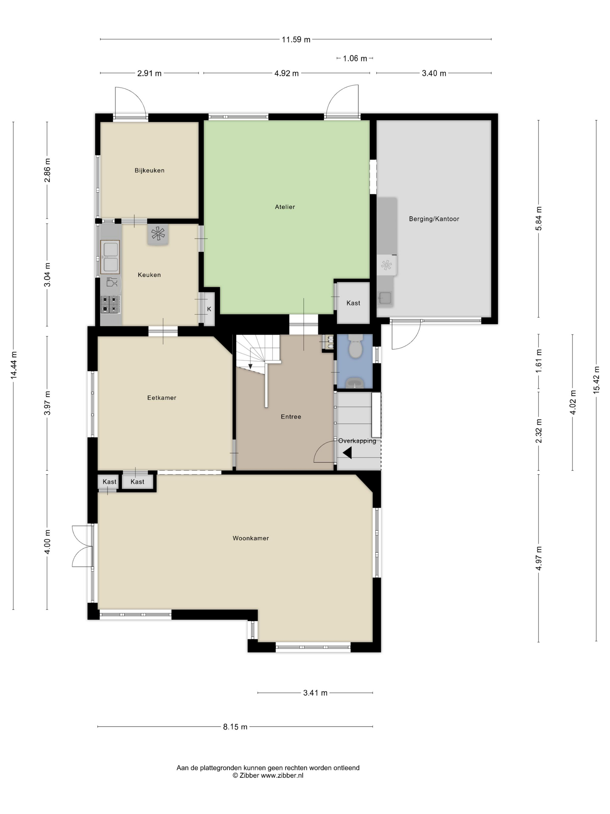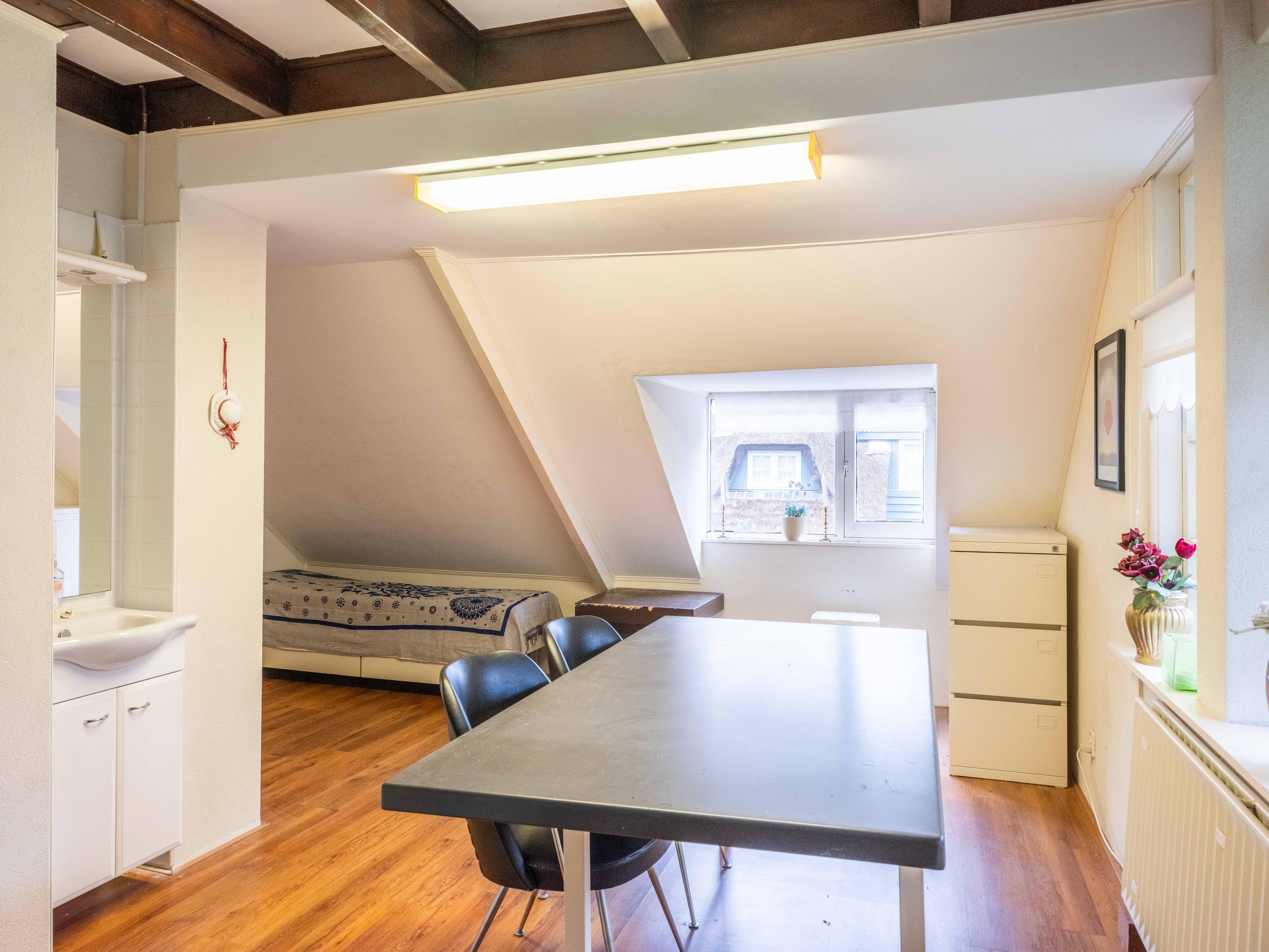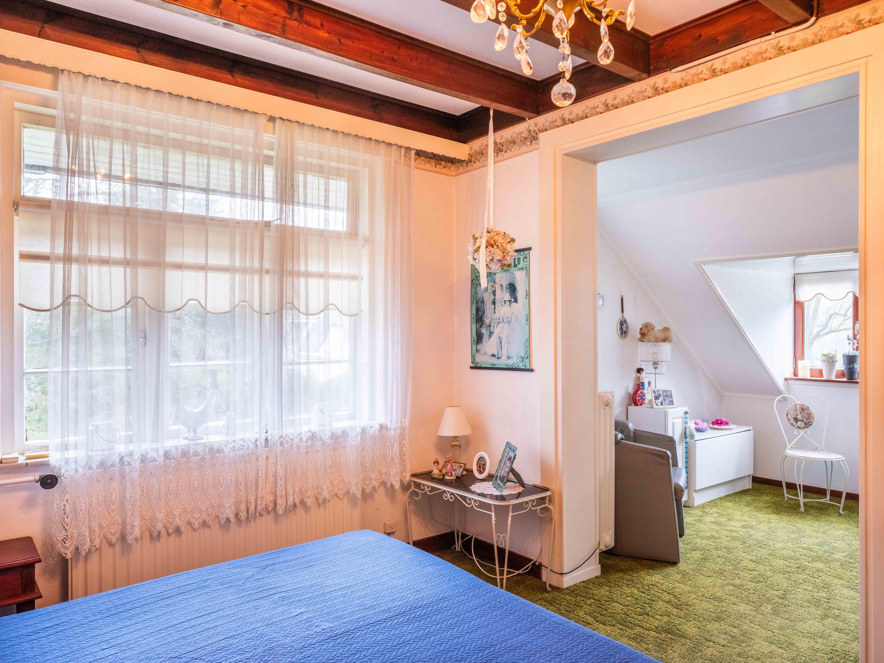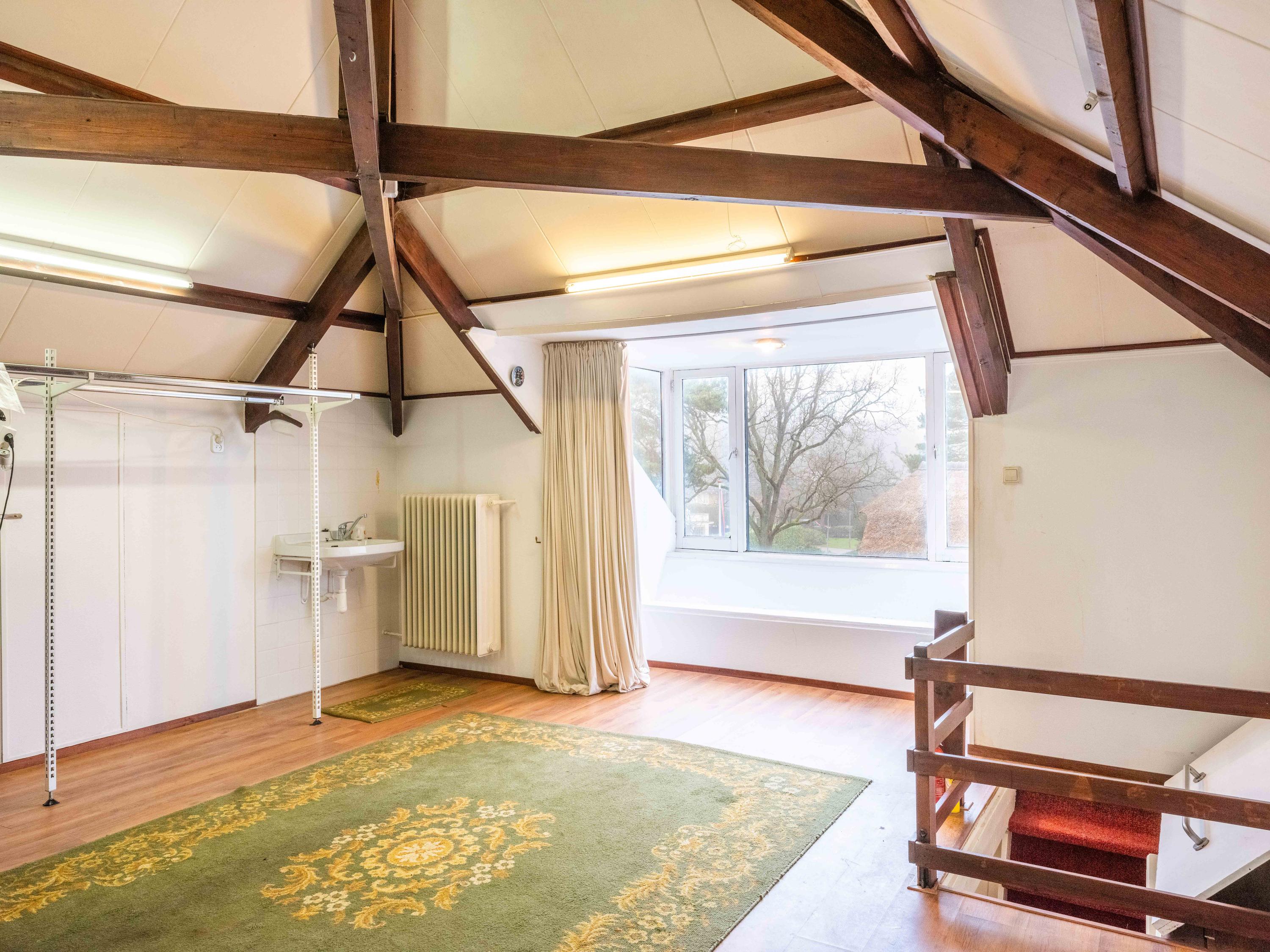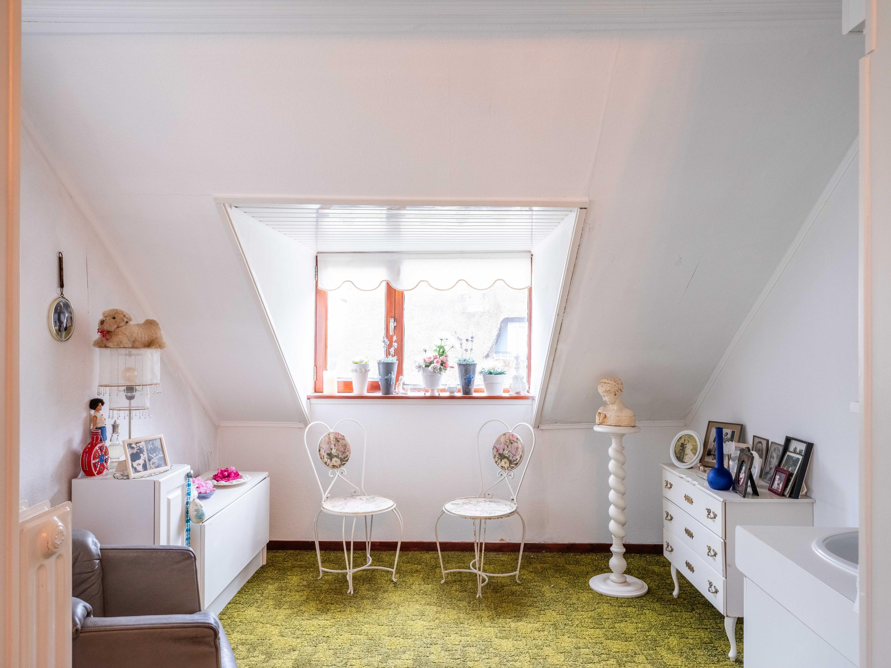 A fixed staircase leads to the 1st floor. Here a landing to the 3 bedrooms, shower and toilet. A steep staircase to the attic floor takes us to a spacious room with dormer window and storage space behind the knee walls.