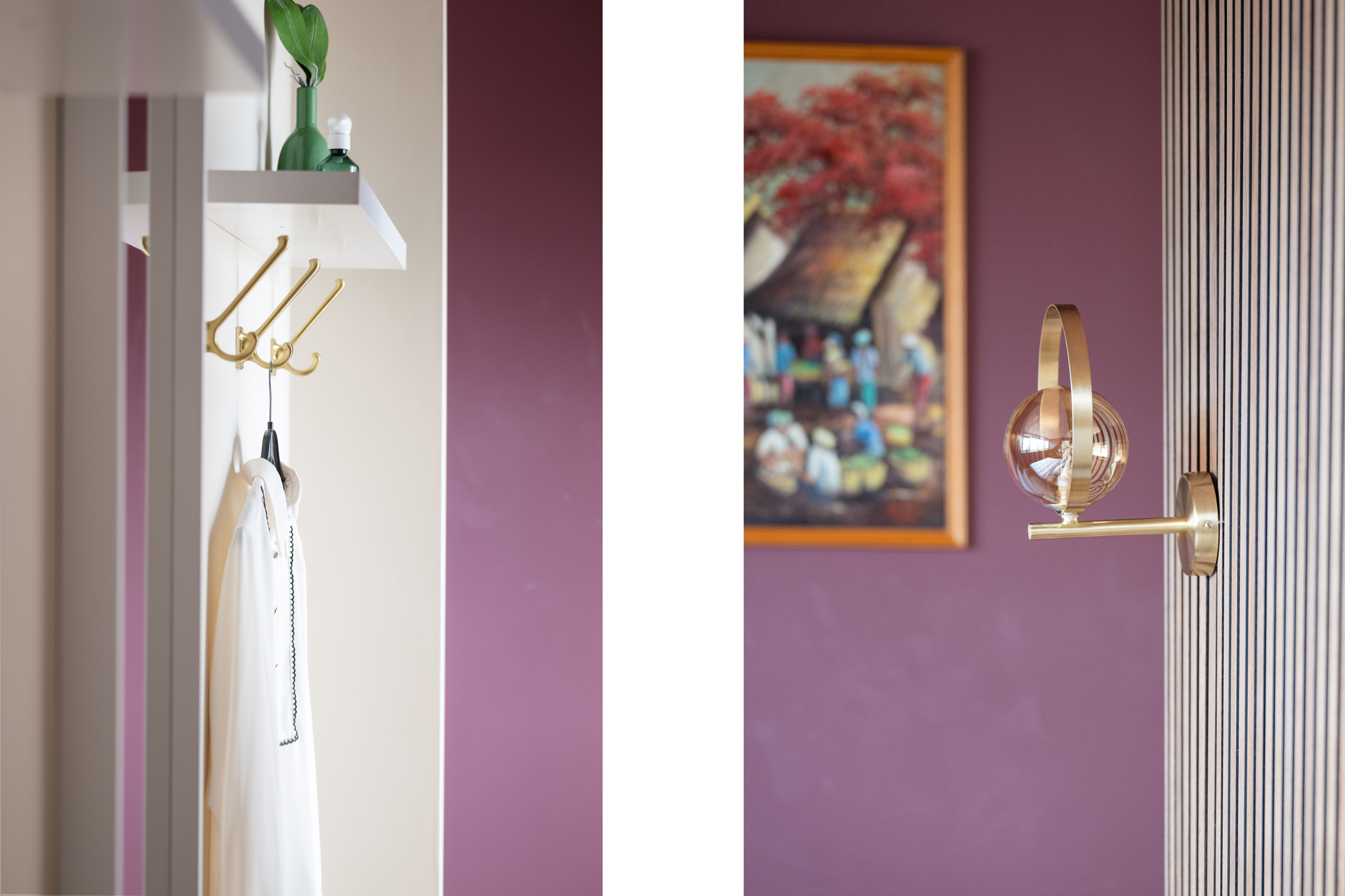 What makes this living space extra special are the elegant copper-colored steel sliding doors, subtly and stylishly separating the kitchen from the living room. They create a playful layout without sacrificing light or a sense of space.