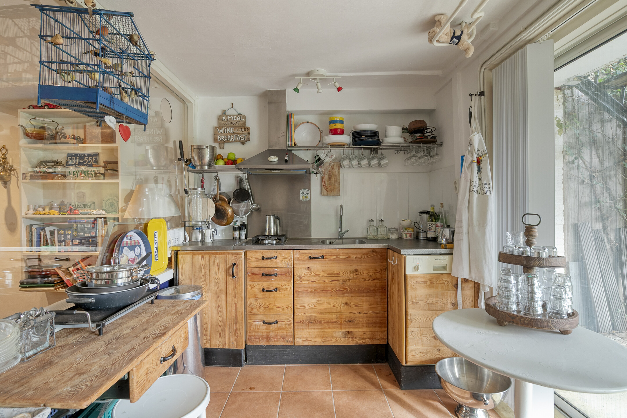 There is also a second kitchen with gas stove, refrigerator, dishwasher and sink with mixer tap. Sliding doors provide direct access to the expansive garden. A versatile floor, ideal for work, relaxation or guest accommodation.