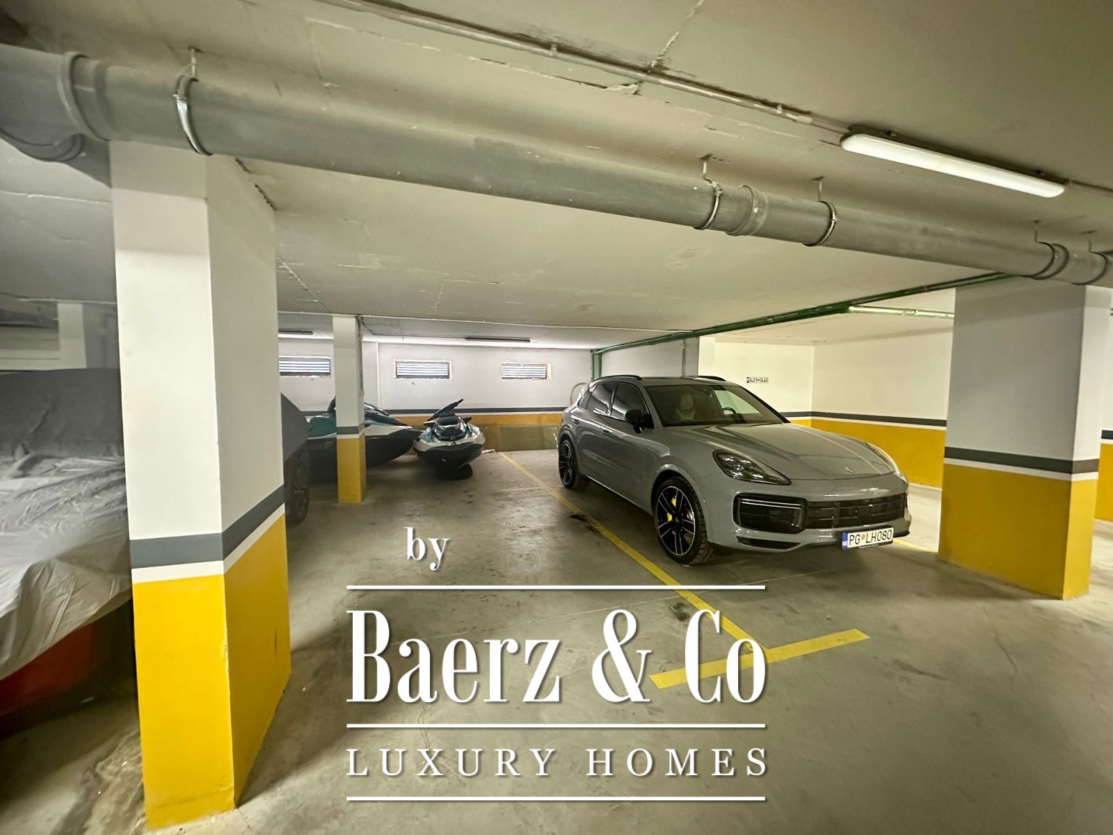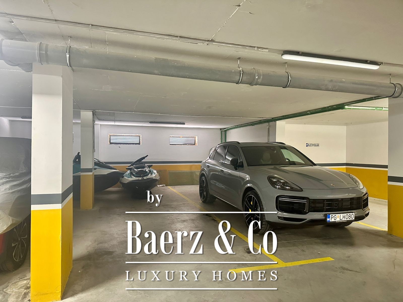 The building has 6 floors, awhile the apartment is on the 6th floor. The apartment has its 3 designated garage spots, which are included within the price. The building is connected to the main road by an asphalt road.