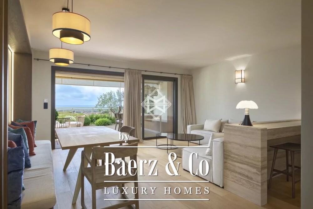 Apartment Cannes offers a setting where Mediterranean light and panoramic sea vistas set an elegant tone. This renovated residence, located in the sought-after California district, occupies 81 m² and features a south-facing aspect that captures sweeping views over the Bay of Cannes, the Lérins Islands, and the Estérel hills. The apartment’s layout flows from an inviting entrance to a luminous living space that integrates a fully equipped open kitchen. Floor-to-ceiling glass opens onto a 57 m² furnished terrace designed for quiet contemplation or convivial gatherings above the city’s coastline.