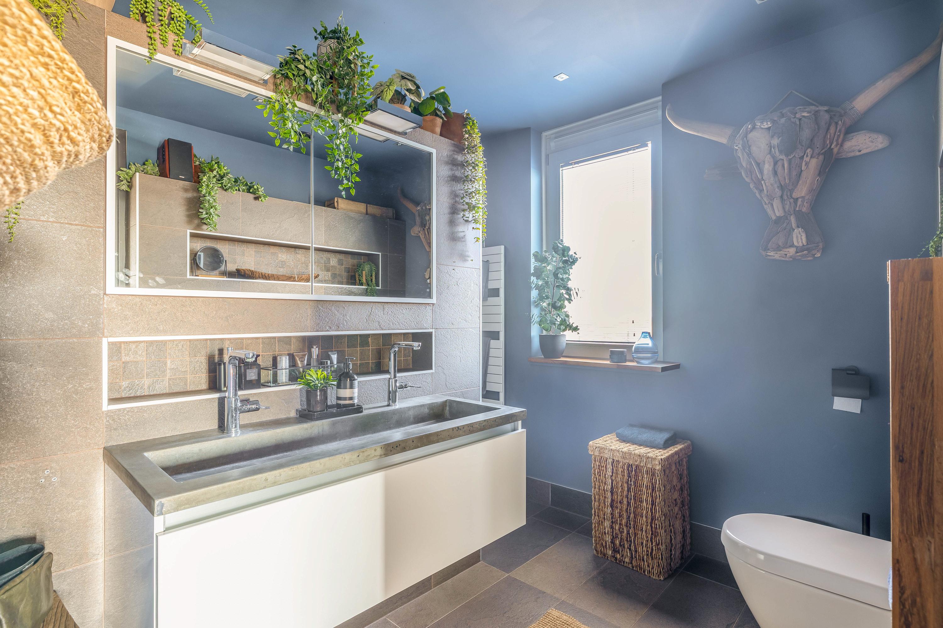 The master bedroom includes a walk-in wardrobe and an en-suite luxury bathroom with a large walk-in shower, stone sink unit, second toilet, and elegant tiles.