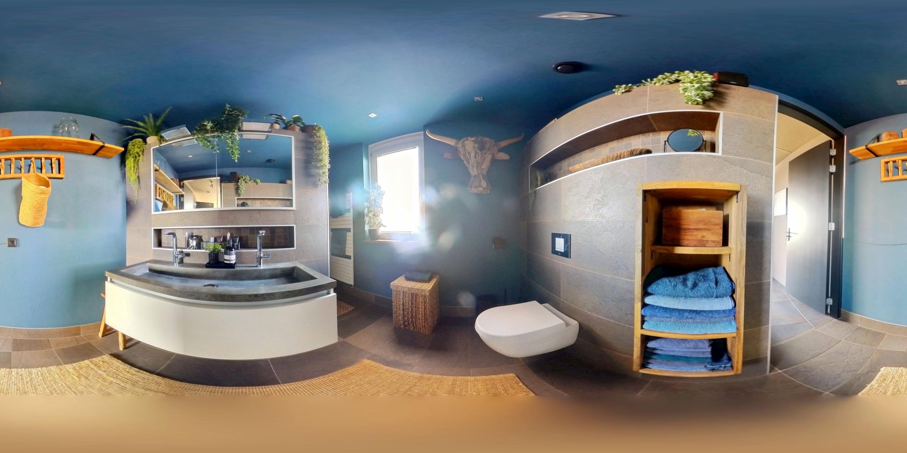 A connecting hallway leads to the second bedroom, also with an en-suite bathroom (walk-in shower, third toilet, sink unit, and designer radiator). Here you’ll also find the second main entrance to the penthouse.