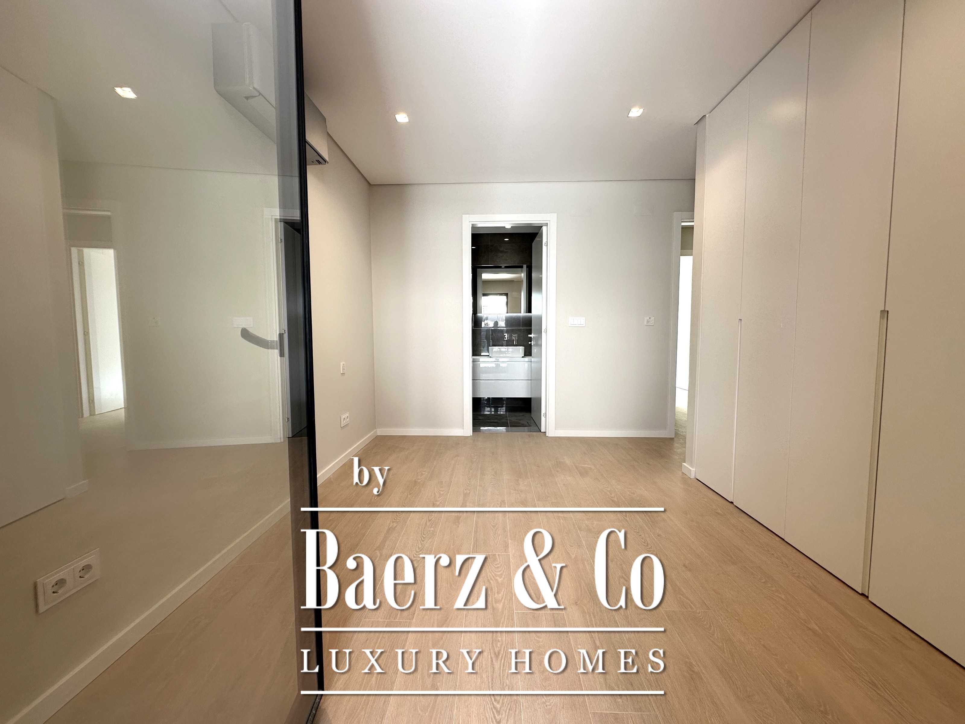 Villa Cascais captures the essence of contemporary architecture, situated within an intimate gated community of just four residences in Murchas. This villa, with its 570 m² of total living area and 212 m² of private gross space, draws light into every room, creating an atmosphere that feels both private and open. The main living room flows seamlessly into the kitchen, offering 62 m² of unobstructed space for gathering and daily life. On the same floor, a dedicated suite of 12 m² ensures privacy and comfort, complemented by an additional guest toilet.
