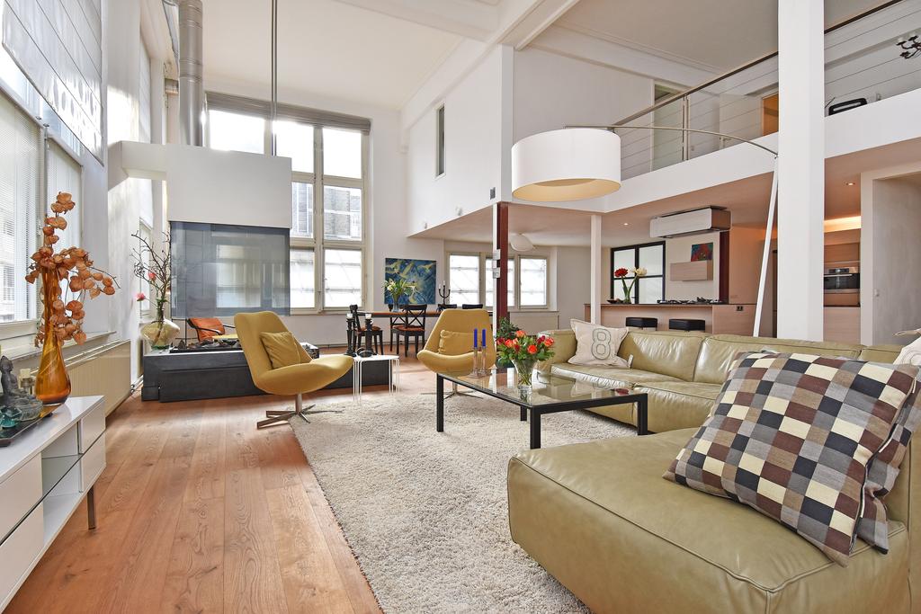 Het appartement is gelegen op de eerste verdieping en heeft twee woonlagen in een monumentaal complex dat is voorzien van een lift. Het appartement combineert de sfeer van een loft met de ruimte van een herenhuis.