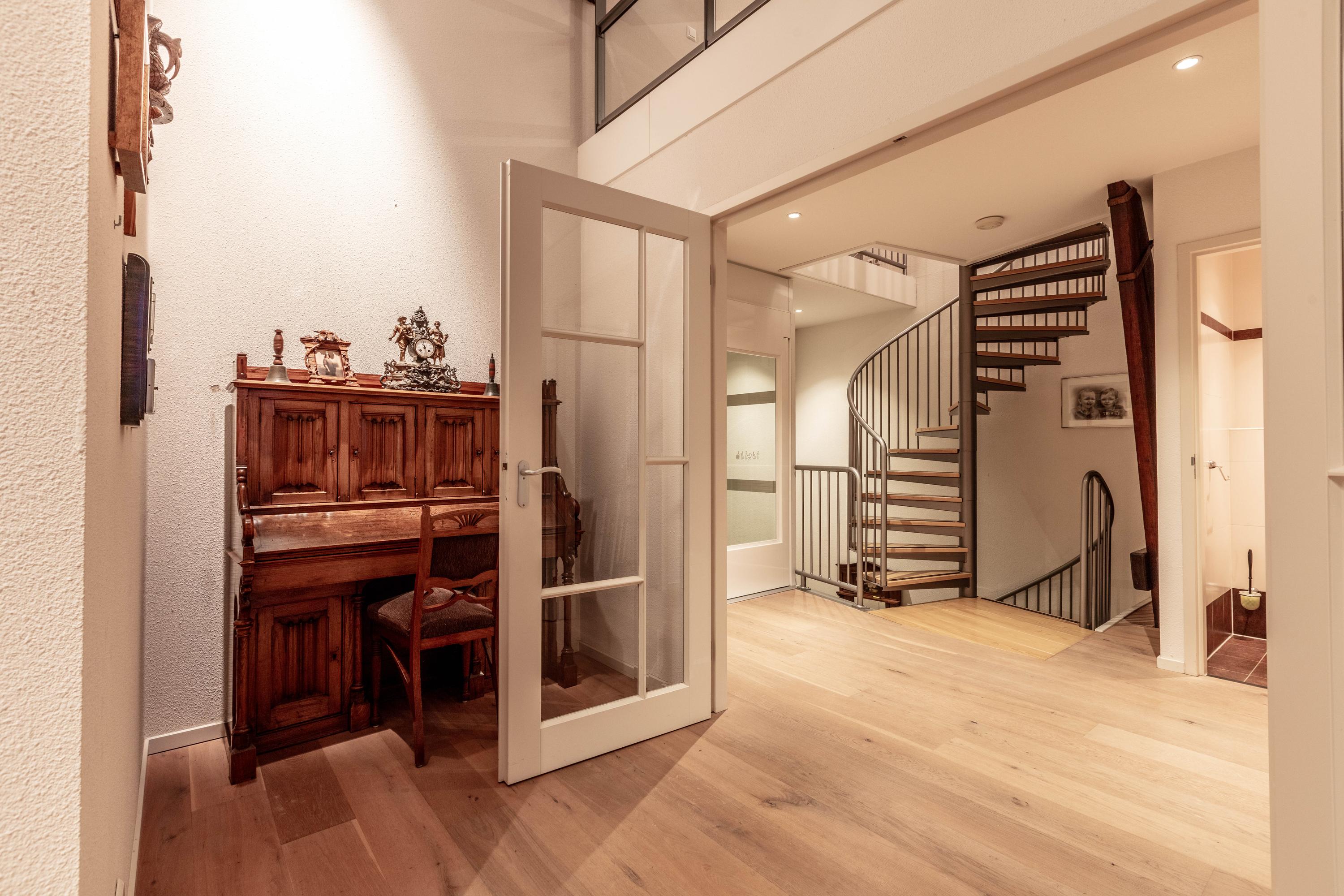 Via een spiltrap is de entresol met vide bereikbaar. Deze staat in open verbinding met de woonkamer en biedt extra ruimte én een fraai zicht op het leefgedeelte. Ideaal als fitnessruimte, hobbyruimte, speelruimte of tv-kamer.