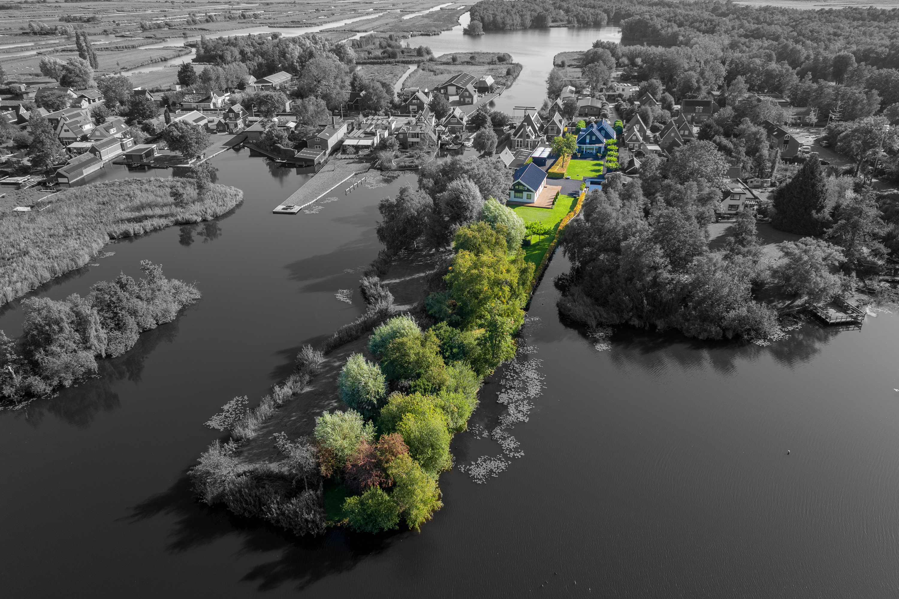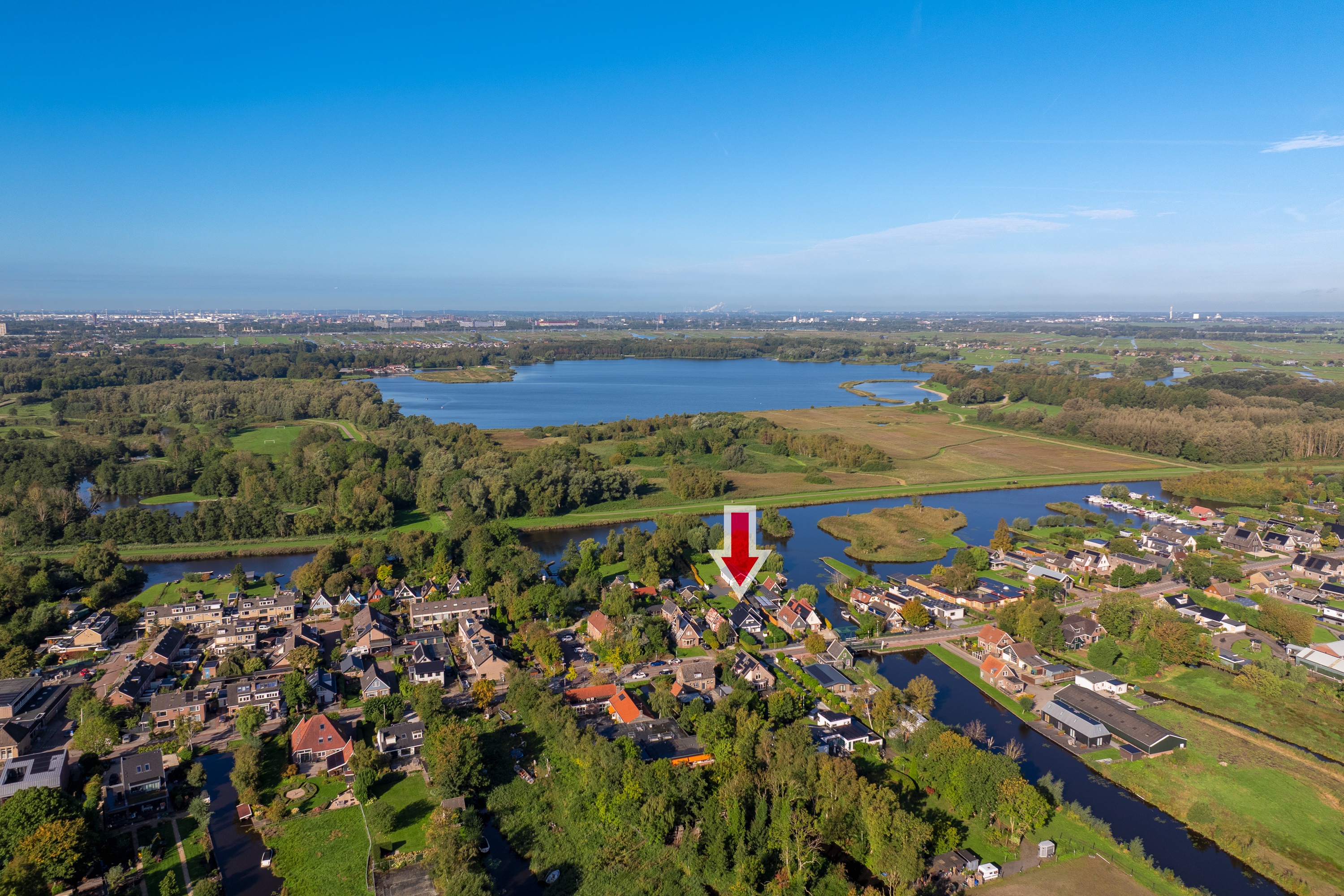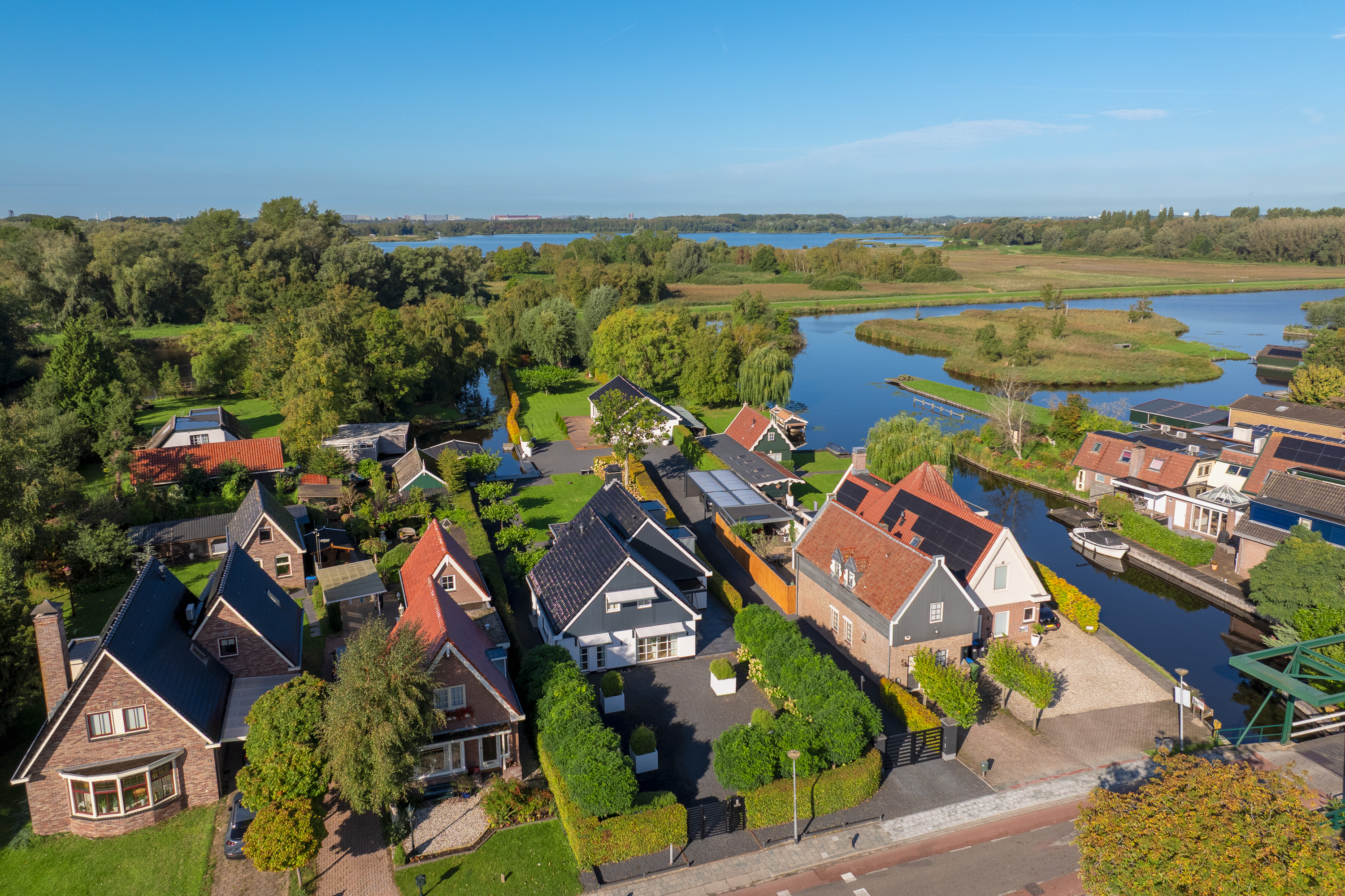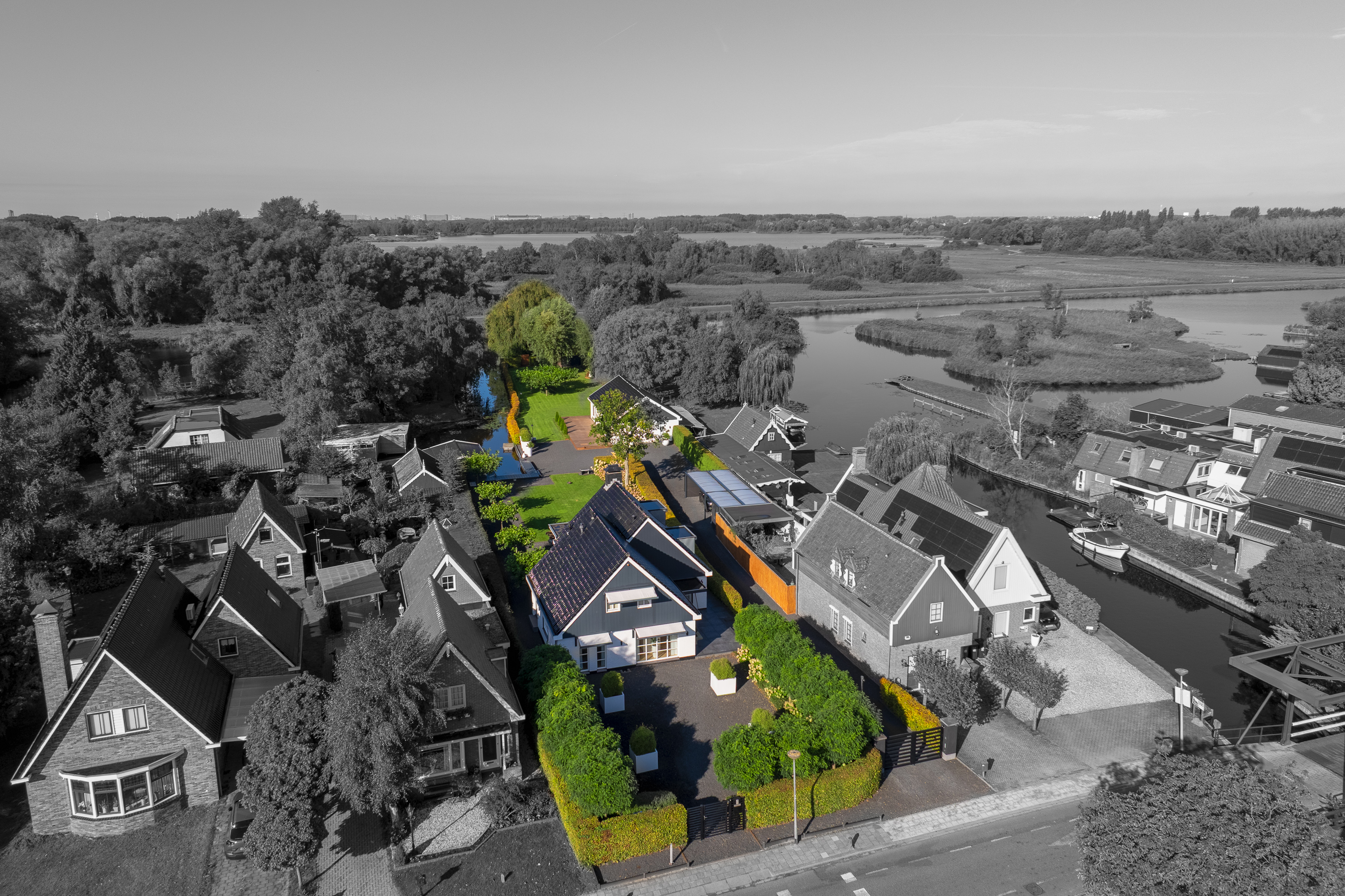 Welcome to Den Ilp — an idyllic ribbon village within the Municipality of Landsmeer, located just a few traffic-free minutes from the vibrant heart of Amsterdam. Nestled on the edge of the Het Twiske nature and recreational area lies a residence of unparalleled distinction: an exclusive detached villa with guesthouse, double garage, and direct waterway access to the canals of Amsterdam.
