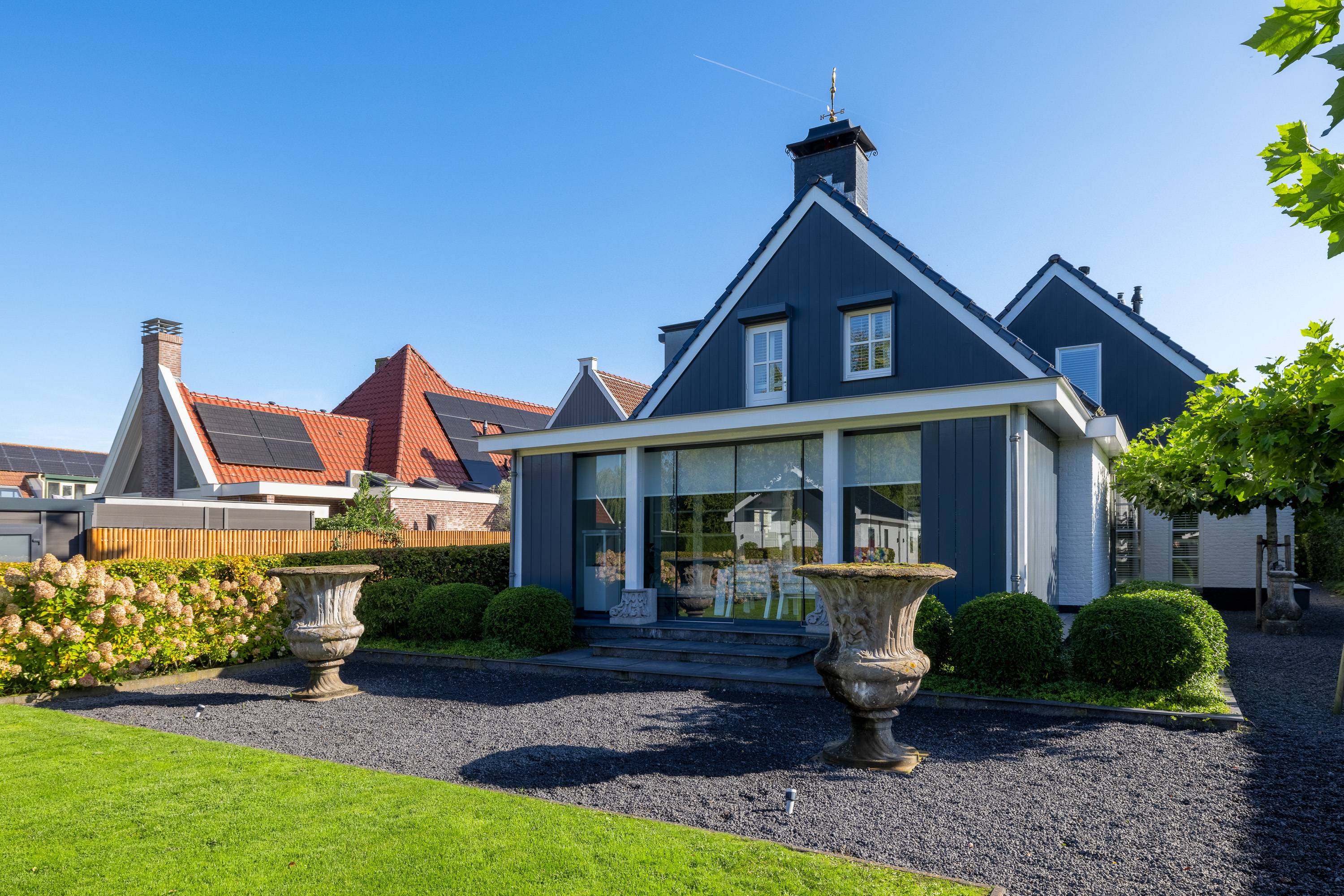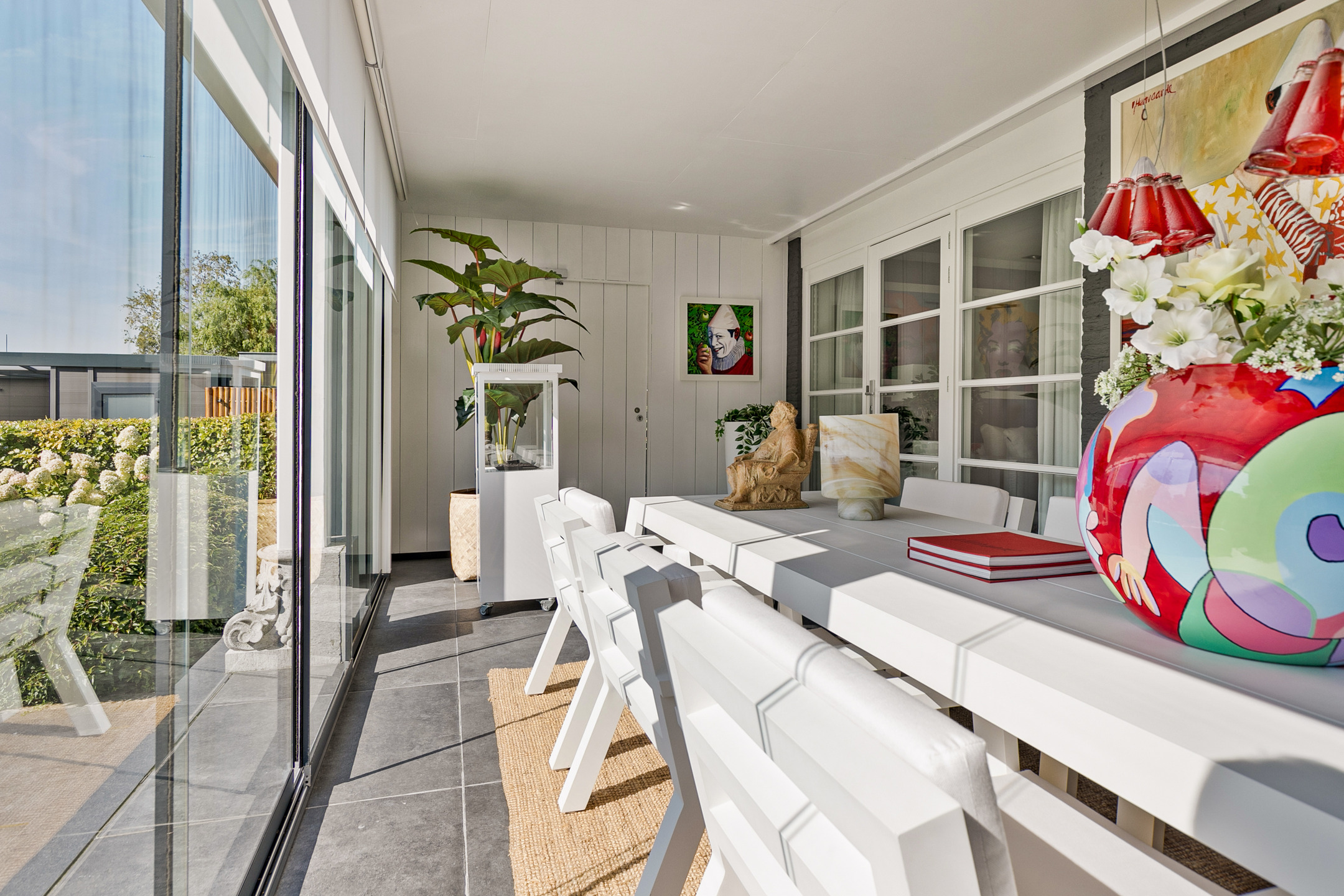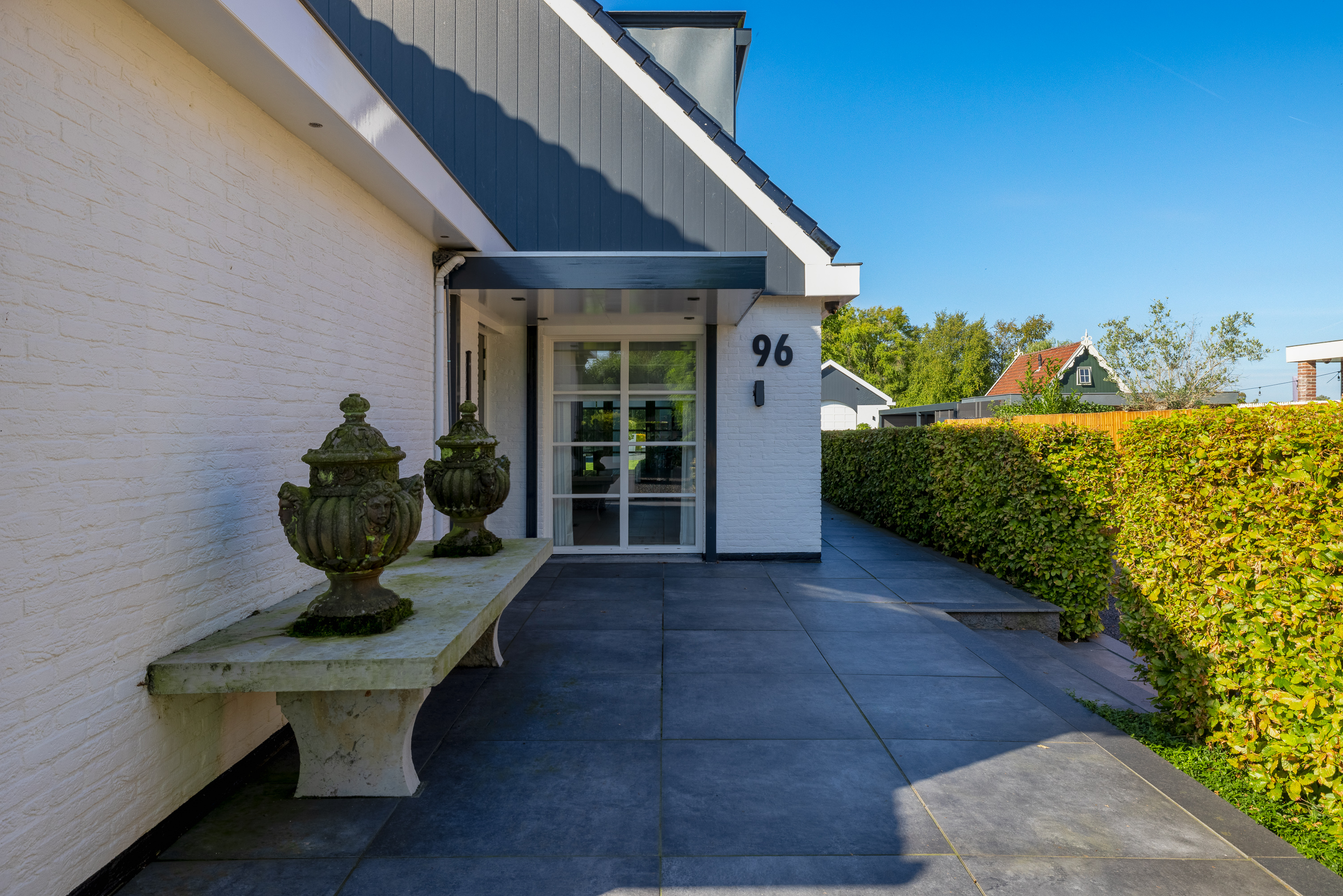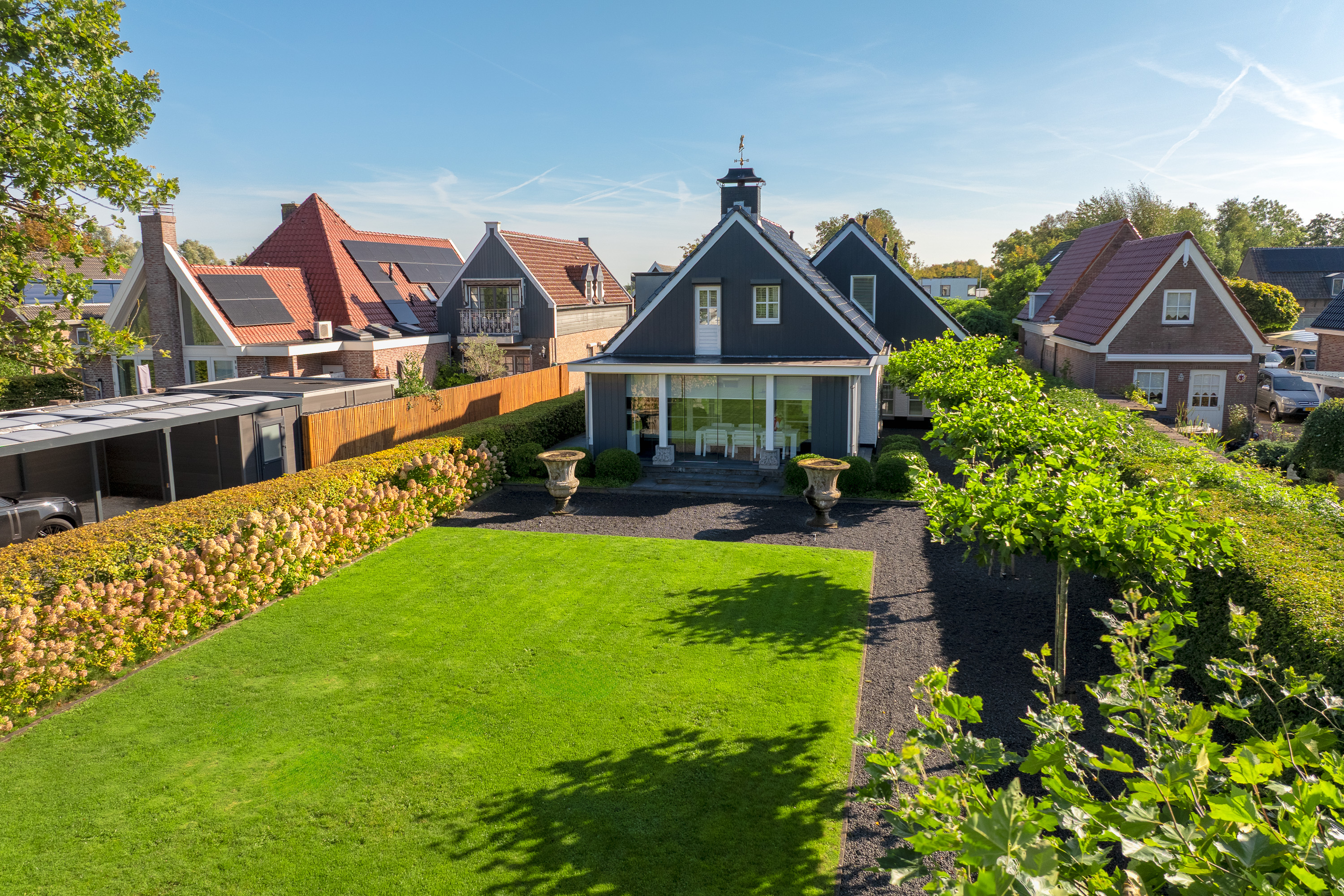 Just minutes after leaving Amsterdam’s A10 Ring Road, the electric gate opens to reveal an impressive driveway with generous parking on-site and under the carport. Parking is, of course, also available in the heated double garage.