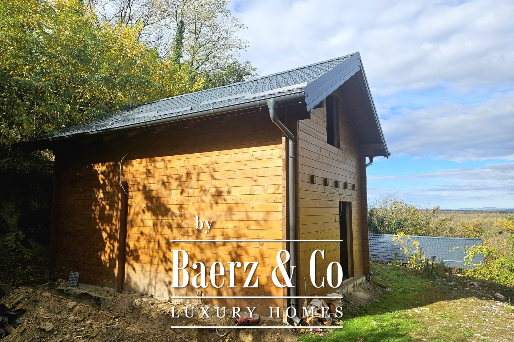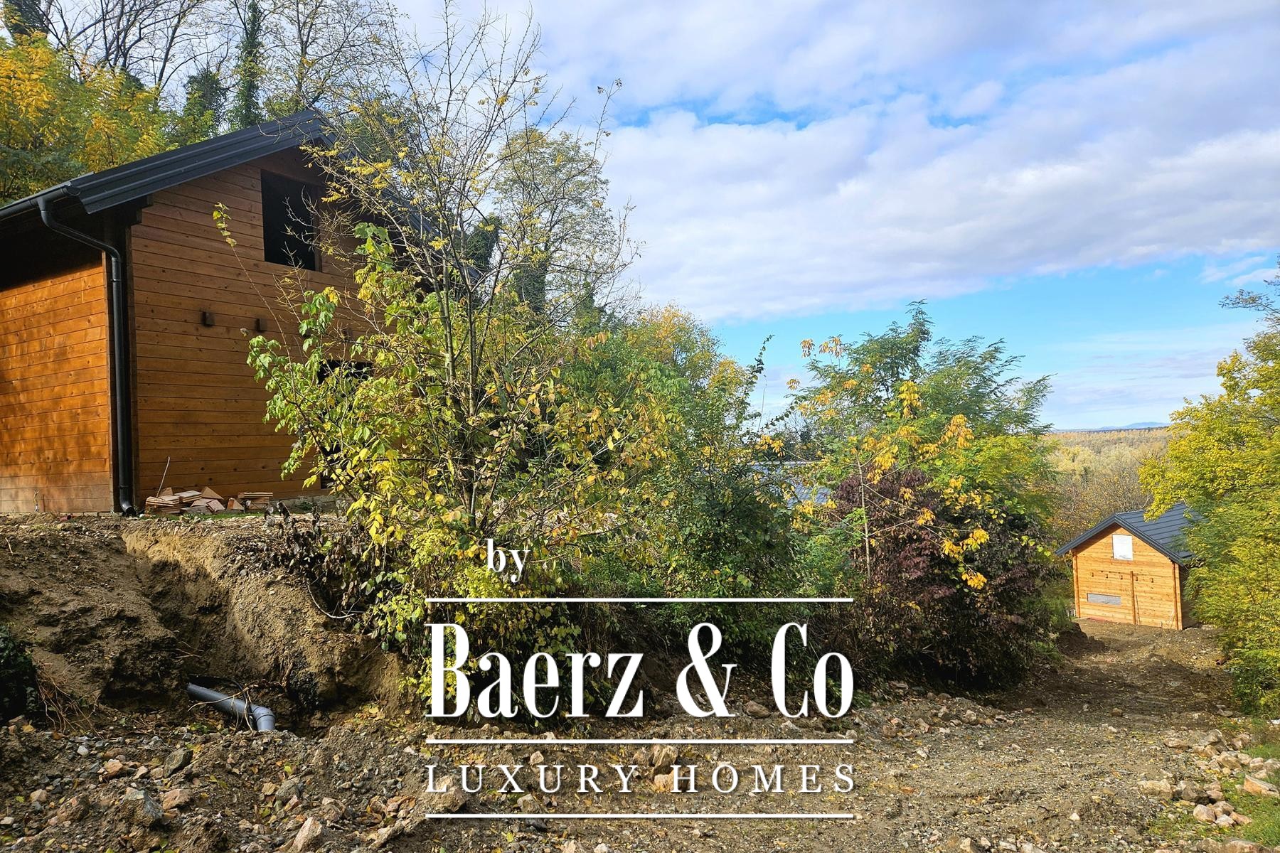 Adjacent to the main house, five newly completed wooden residences each offer 80 m² of living space. The layout includes a bright ground-floor living area and bathroom, while two bedrooms occupy the upper level. Private terraces at the back look onto the generous grounds, with heating designed for efficiency and autonomy.
