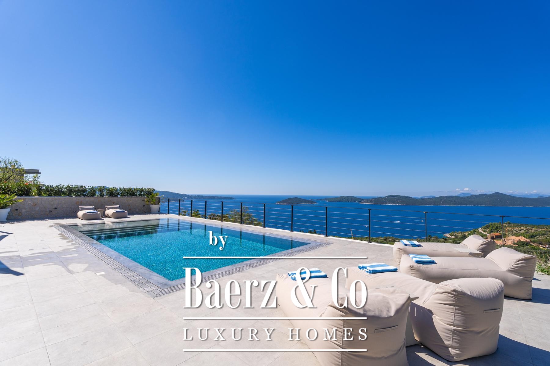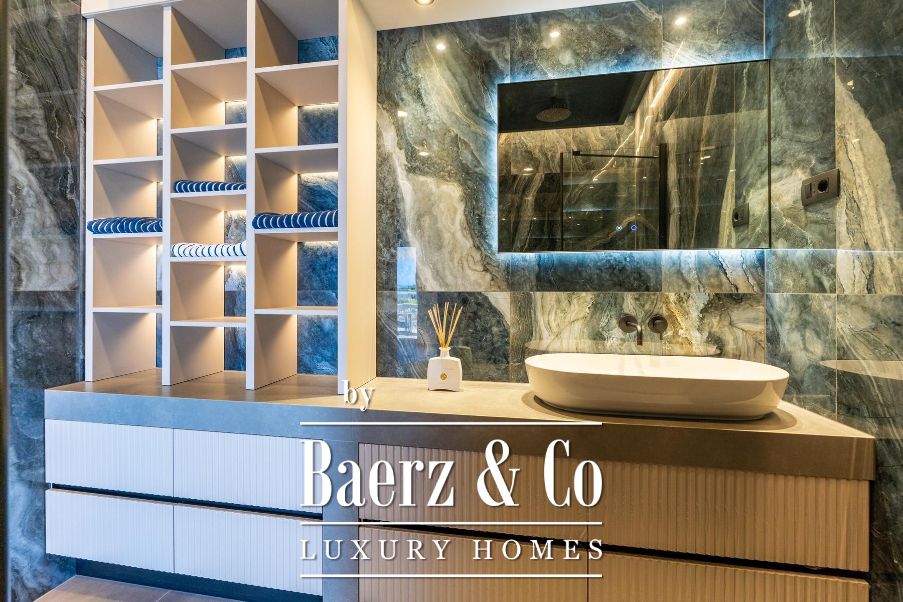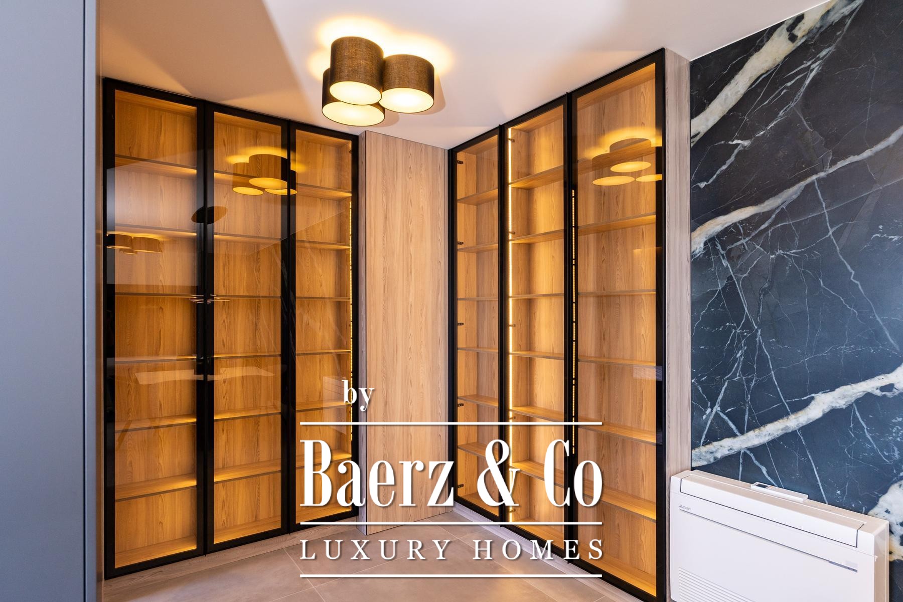On its 740 m² plot, the property invites outdoor living through a generous terrace, manicured Mediterranean garden, and an elegant pool—all oriented toward unobstructed sea views. Moments of wellness are nurtured by a private gym, fitness space, and a modern sauna, integrating relaxation seamlessly into daily life. Storage is thoughtfully incorporated, offering both usability and clarity within the home.