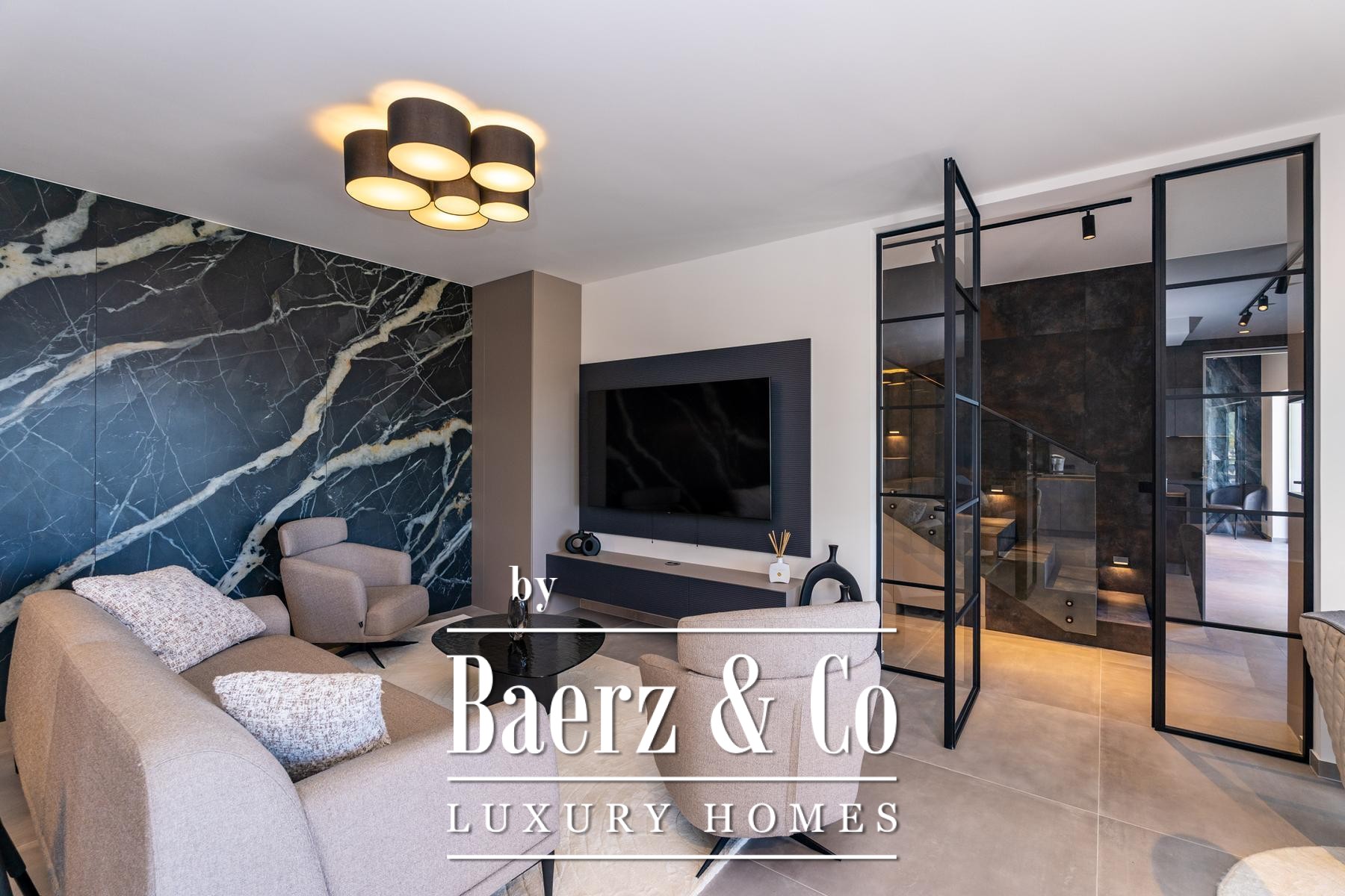 Spanning 300 m² over multiple floors, the residence offers a spatial rhythm designed for both intimacy and convivial gatherings. Four bedrooms and four bathrooms are appointed with a refined restraint, ensuring personal space and comfort for both residents and guests. Smart home features and energy-efficient solutions reflect the demands of contemporary living, enhancing both ease and sustainability.