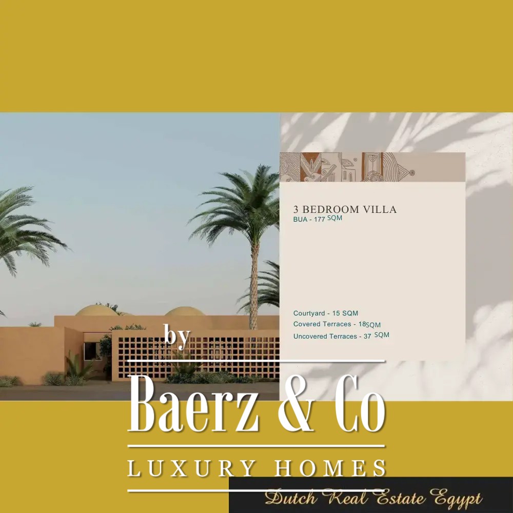 Villa in El Gouna presents a rare balance of tranquil luxury and contemporary design. With a living area of 177 m², this residence offers expansive interiors defined by understated elegance. The villa features three bedrooms and four bathrooms, each space crafted for both privacy and light.