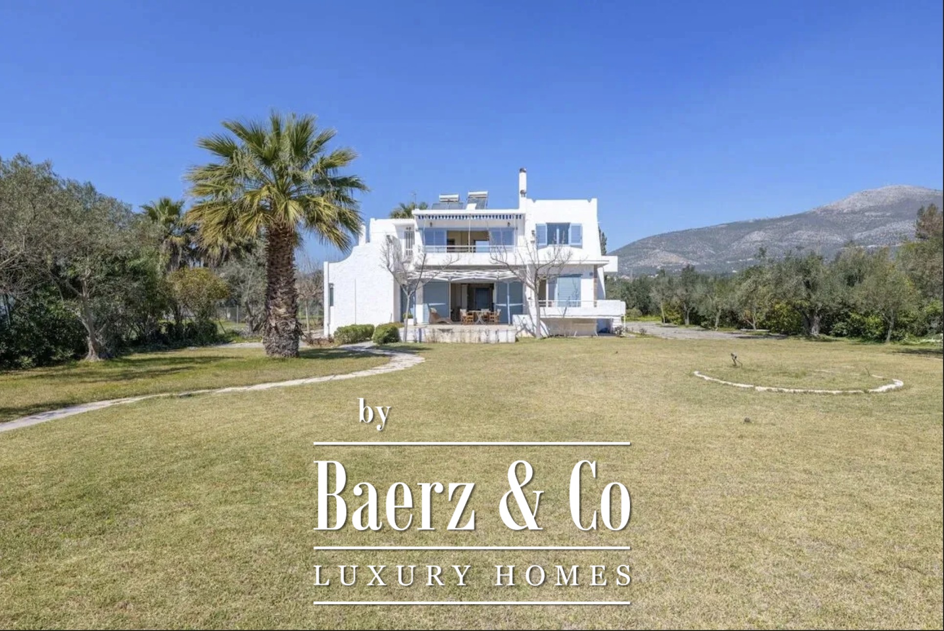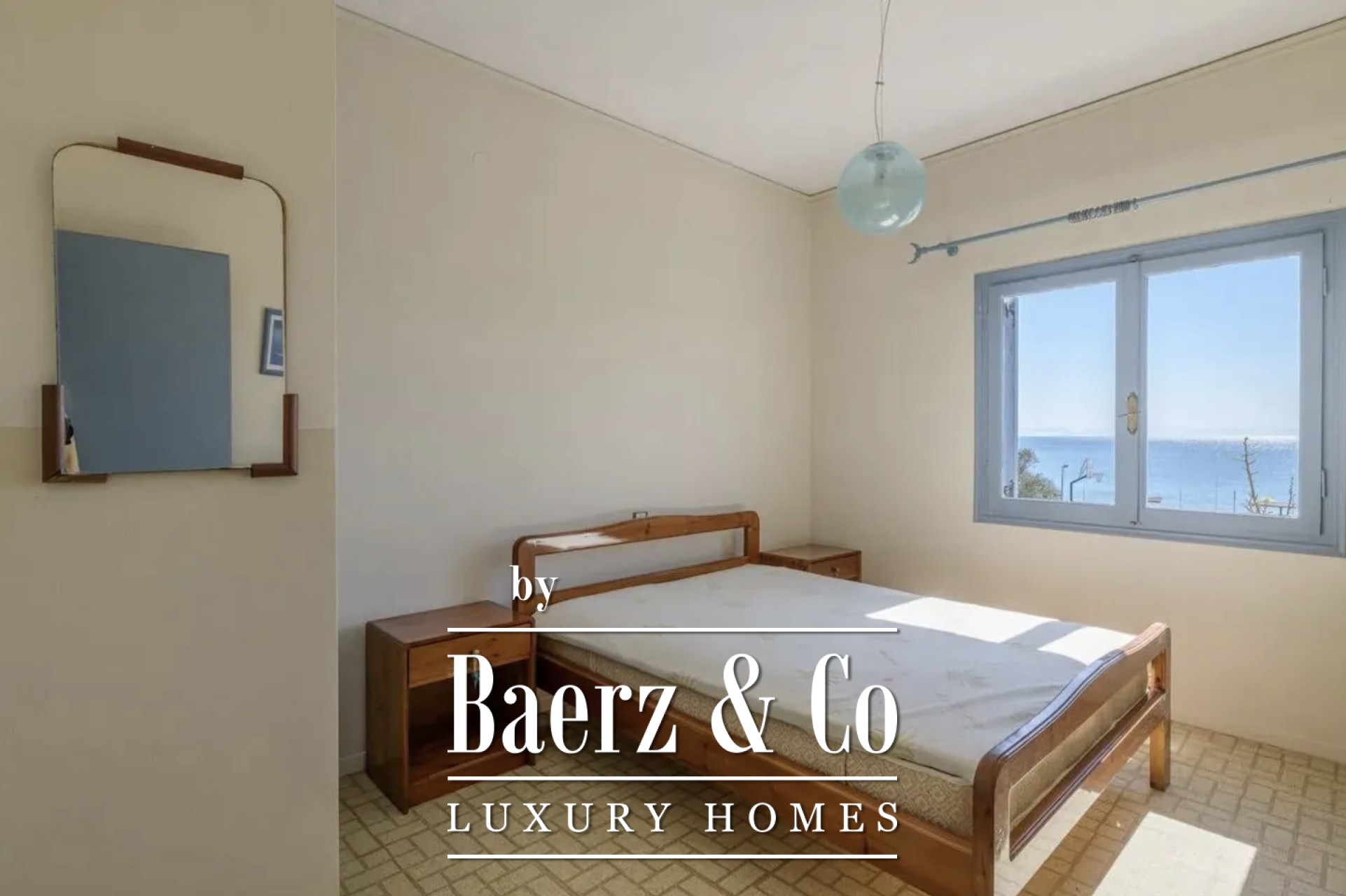 This seafront villa Eretria stands just forty meters from the pristine sandy beach, offering uninterrupted sea views and absolute privacy within one of Eretria’s most desirable coastal enclaves. Set on a generous 6,000 m² plot and encompassing a total of 250 m², the villa is structured across two levels, each with their own independent entrances, allowing for flexible living and guest accommodation.