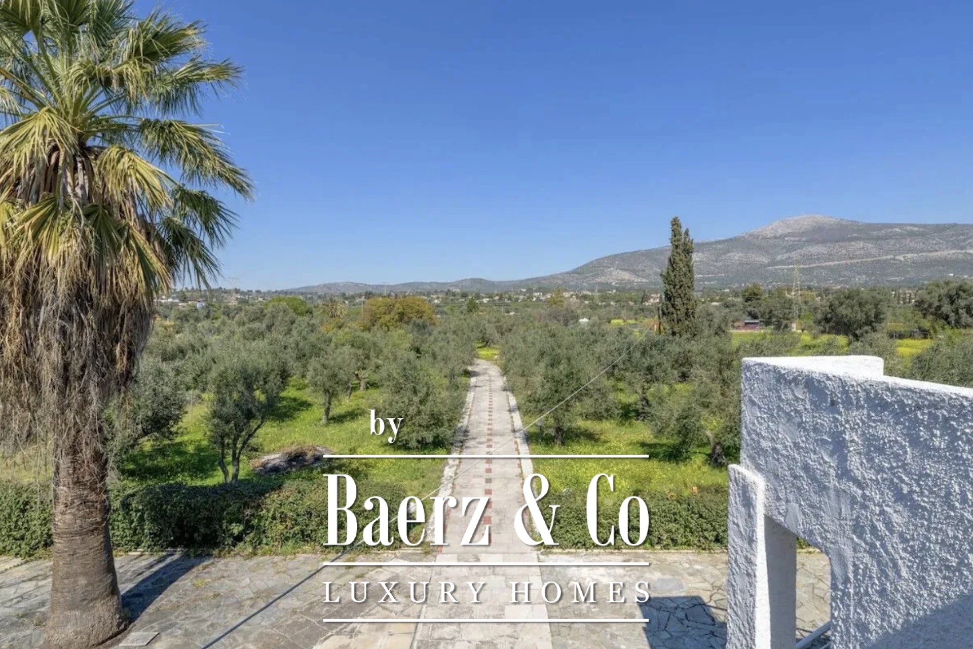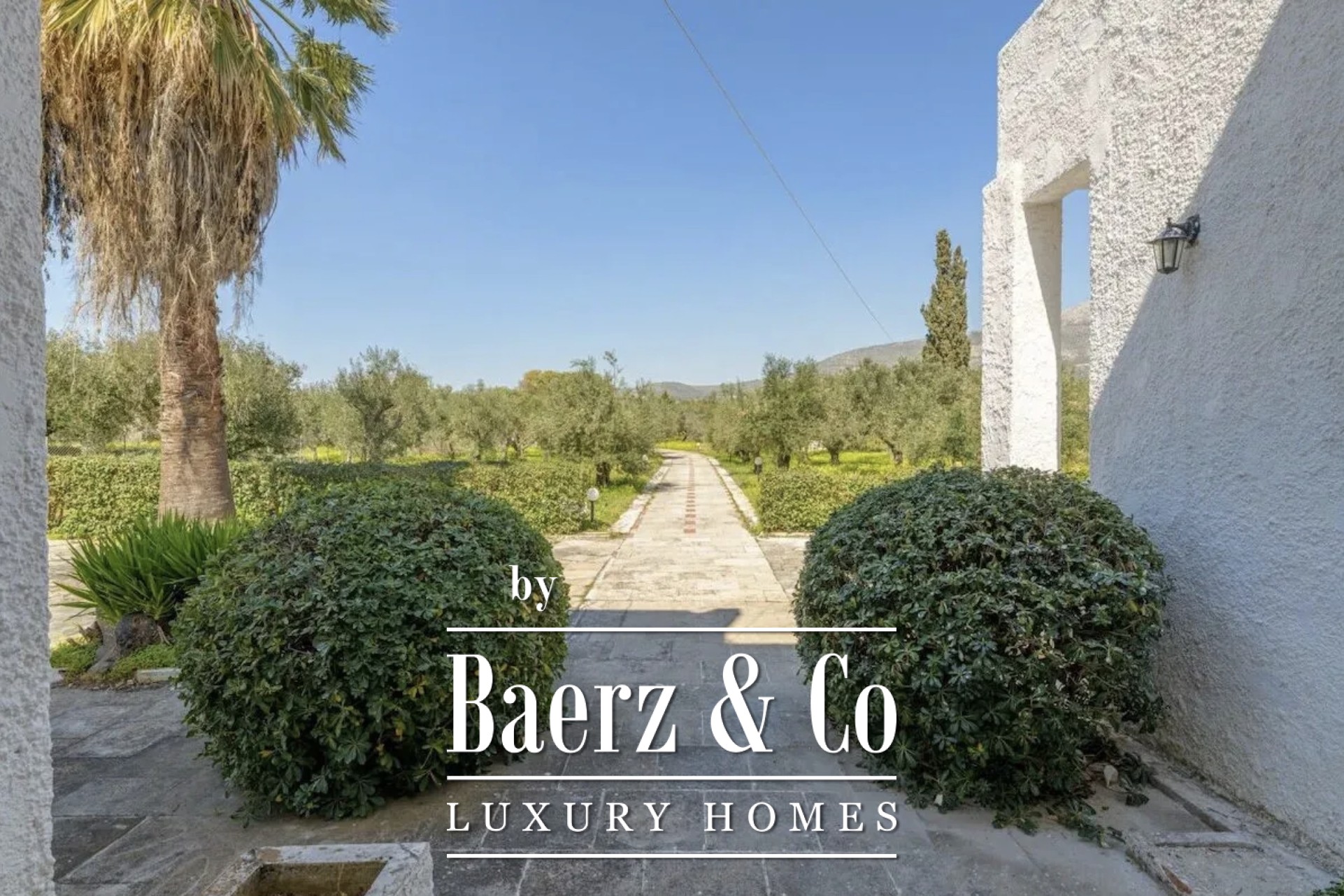 Surrounding the villa, the grounds are anchored by 122 mature olive trees, a basketball court, private water well, and generous parking for four cars, including one covered space. Private beachfront access makes this residence remarkably rare. The residential environment is peaceful yet accessible, with Eretria town’s amenities, marina, and archaeological sites five minutes away, Chalkida within a 25-minute drive, and Athens International Airport reachable in roughly ninety minutes.